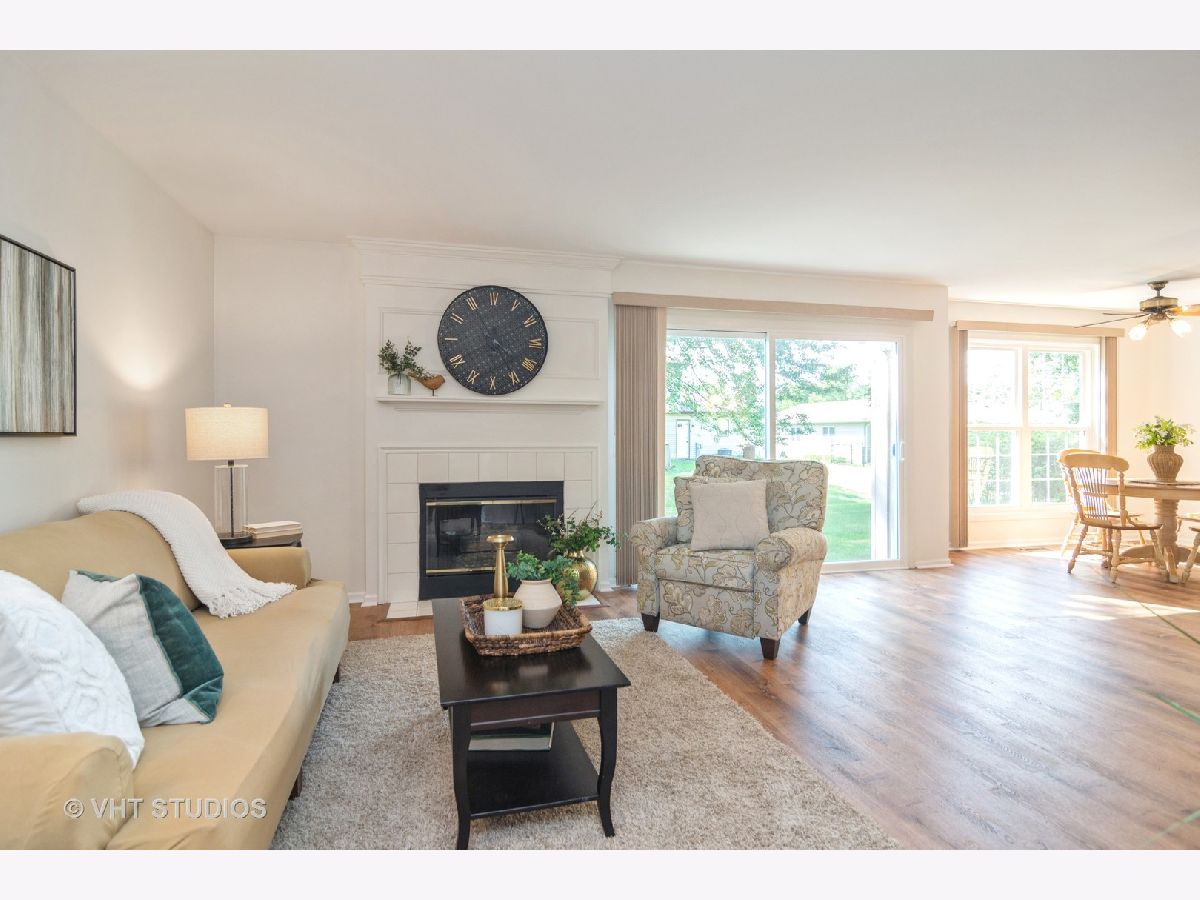 Fresh and fabulous! This 3-bedroom home offers a wonderful floor plan and so many updates. From the moment you step into the foyer, you'll notice the beautiful new vinyl plank flooring throughout the main level. Not only does it add character, it's also comfortable, quiet, and easy to care for. The entire home has been painted in a lovely soft neutral, creating a light and airy feel and the perfect backdrop to any decorating style. The main level features an open-concept living, dining, and kitchen with plenty of space for larger furnishings, and the entire space is flooded with natural light. Enjoy cozy nights by the fire reading or chatting with friends and imagine sipping your morning coffee overlooking the outdoors through the oversized windows. The sliding doors provide easy access to the back patio to extend your living space outdoors where you'll enjoy mature landscape and grassy views. Upstairs you'll find 3 generously sized bedrooms and a conveniently located laundry area. The primary suite offers both a walk-in closet and an ensuite bath featuring an extended counter and large shower. All the carpeting on the stairs and upper level is brand new and the entire home is move-in ready! The 2-car garage allows for parking and storage. Additional updates include windows 2016 & 2018, patio door 2016, microwave & water heater 2019, dishwasher, disposal, & stove 2017, furnace & a/c 2005. The location is outstanding with award-winning District 15 Schools, Fremd High School! Minutes to shopping, parks, 2 train stations, forest preserve, library, I-90 Access, + more.