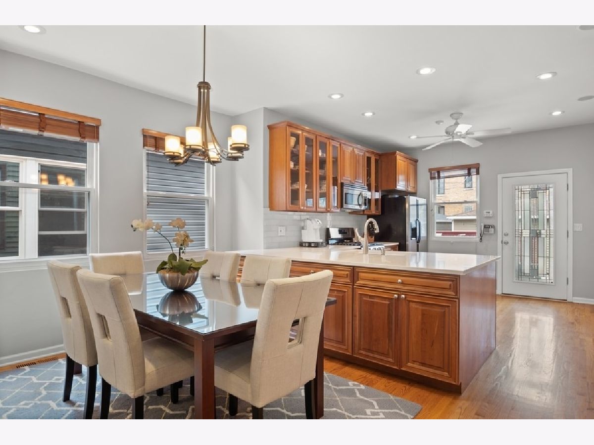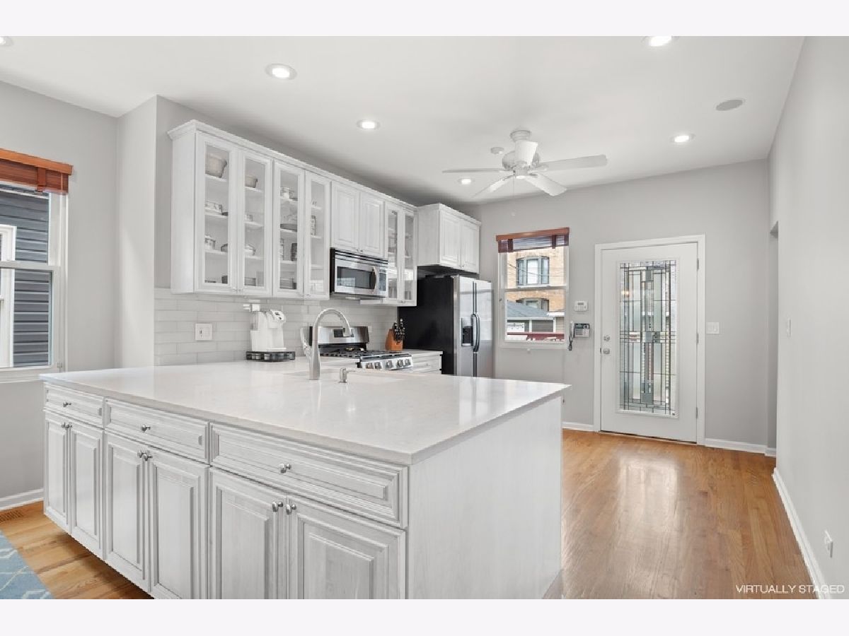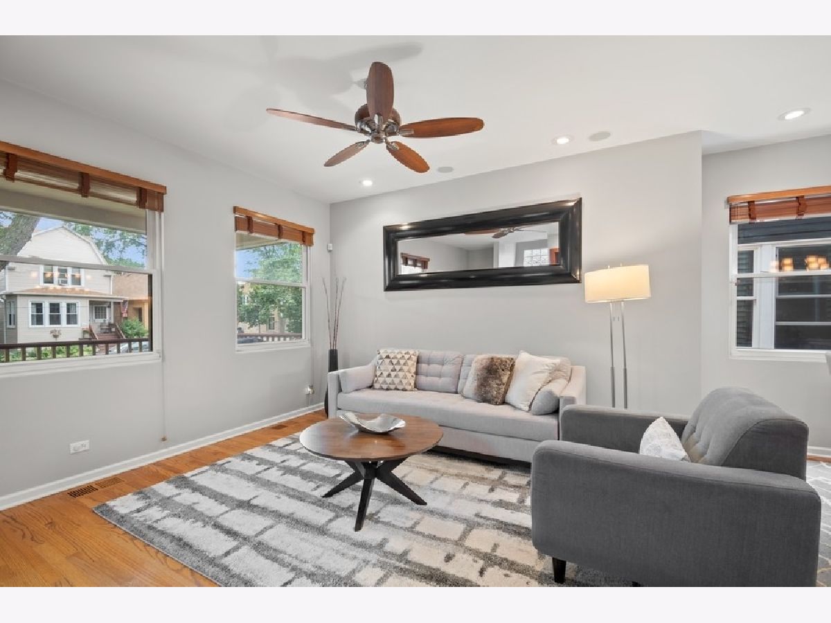 Six Corners/Old Irving extra wide single family on an oversized 37.5 x 125 lot! One of the more delightful homes on the block due to its lovely front porch and sizable yard space. Home is bright throughout because of the wider setbacks from the neighboring houses. Excellent floor plan and flow starting with the main floor with its open Great Room that includes a spacious Living Room, Dining Room that accommodates a table of 8, and huge Kitchen with an abundance of cabinets and Quartz countertops; also includes Stainless Steel appliances (oven range and dishwasher new in 2020) and a walk-in pantry! Main floor is split to offer privacy to the back Bedroom and full Bath with its shower/tub combo. The sizable mud room is located in the ideal spot: off of the kitchen where most enter and exit their home. Top floor includes 3 roomy bedrooms and a HUGE bath: check-out the floor plan and 3D tour to see how spacious each room is and the abundance of closet space. Make sure to look at the cool extra spaces like the Primary bedroom with an organized, walk-in closet, the office nook in the front bedroom and note the wider hallway and staircase. Top floor bath offers 2 pedestal sinks, medicine cabinets, extra large linen closet, tub/shower combo with handheld shower head, subway tile surround/wainscoting. Fully finished lower level has it all: large family room with plenty of space to function as a rec room, play room, gym, office and/or workshop. Full bath with tub/shower combo. Oversized laundry room with slop sink. TONS of closet and storage space. Exterior door exits to backyard. Unbeatable outdoor space with not only the delightful front porch, but also a spacious back deck off of the kitchen that leads to a huge backyard fully enclosed with a privacy fence. The yard is low maintenance and includes in-ground sprinkler system. Plenty of parking with the 2.5 car garage PLUS an exterior parking pad that could be used for parking or patio space. Lots of extras in this house: beautiful hardwood floors, dual zoned heating and cooling, recessed lighting, built-in speakers on main floor, tons of closet space throughout, newer backsplash in Kitchen, etc... Highly walkable location: close to redeveloping Six Corners with its fabulous mix of shops and restaurants as well as large scale developments happening now, 2 blocks to Grayland Metra stop, walkable to Blue Line at Montrose or Irving, quick access to 90/94 or Milwaukee Avenue to zip around the City or to the suburbs.