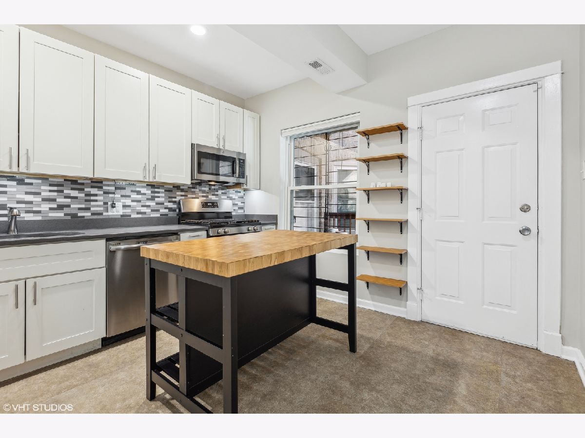Bright and spacious 2 bedroom condo in a prime Ravenswood location. This beautifully updated condo in a vintage building on Winchester Avenue combines timeless charm with modern upgrades. The split floor plan offers a spacious living and dining area, creating a welcoming environment for both relaxing and entertaining. Both bedrooms are generously sized, featuring large closets and plenty of natural light, separated by a large bathroom. At rear of the condo is a large kitchen with grey quartz countertops, an island with a breakfast bar, and all stainless steel appliances. Hardwood floors, central A/C and in-unit laundry make this the complete package. Step outside to enjoy the back deck and the beautifully landscaped common yard, perfect for entertaining or simply unwinding. Located in the heart of Ravenswood, just steps from both the Damen Brown Line and Ravenswood Metra stations, this condo offers unbeatable access to public transit and everything that both Ravenswood and Lincoln Square have to offer. With exterior parking, building EV charger station plus additional capability, and additional storage included, this is truly a must-see home!