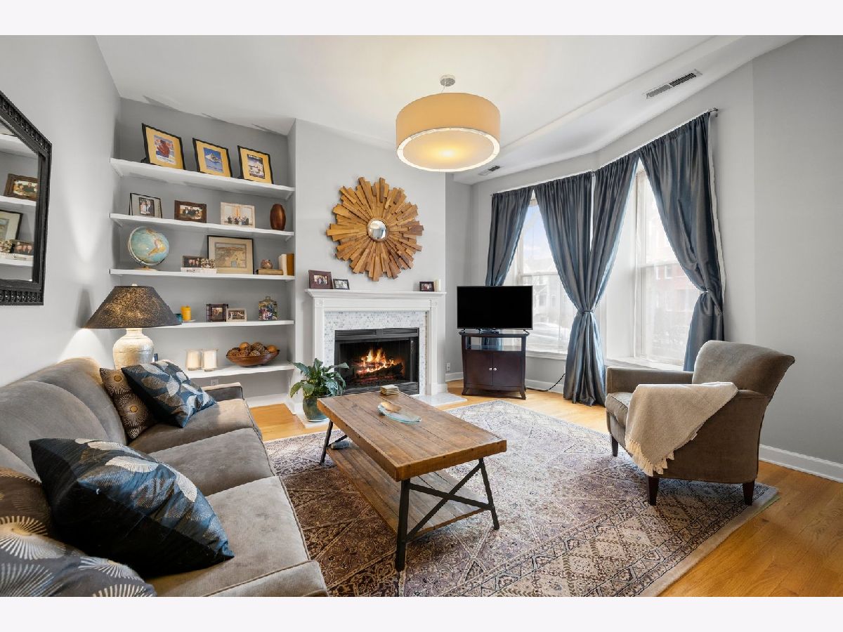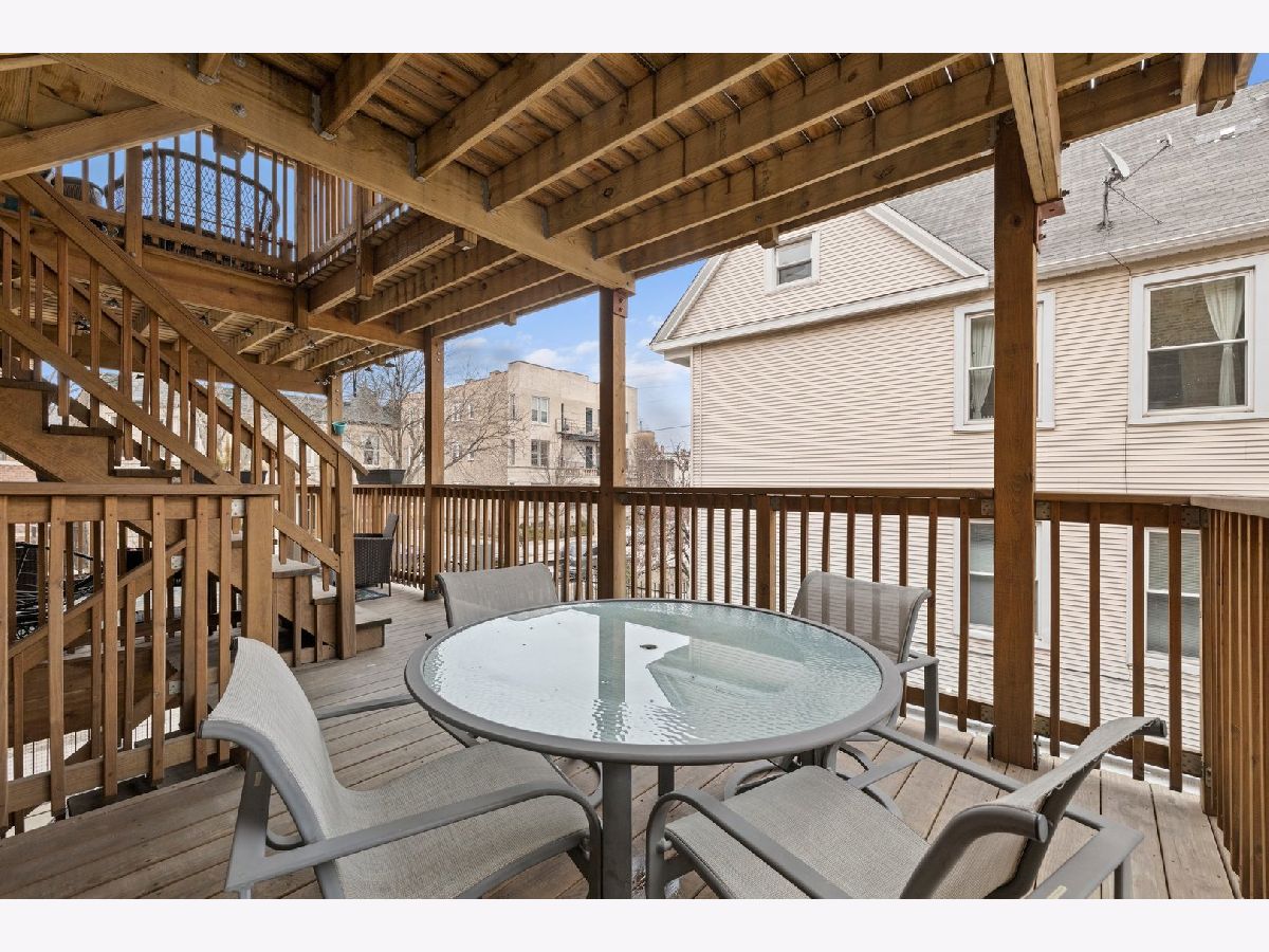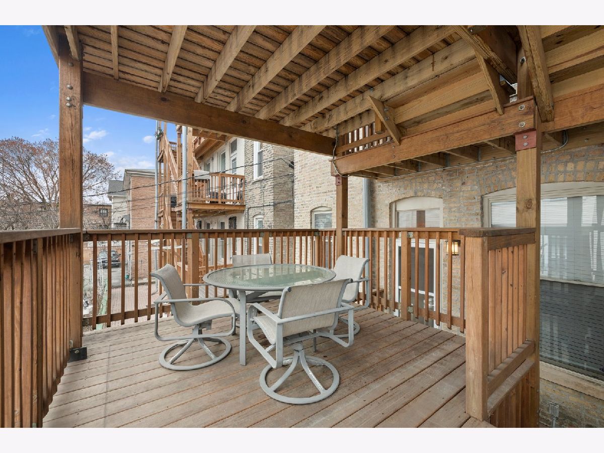 Don't miss this 2 Bed/ 2 Bath with a PRIVATE deck in one of the most sought after pockets of Ravenswood! This hidden gem of a neighborhood is filled with treelined streets, just steps away from Chase Park, Mariano's and some of the best restaurants in the city! The unit is nicely updated with a hint of vintage charm, and features a large spacious layout, high ceilings, hardwood floors, nicely updated bathrooms, newer in-unit washer/dryer, central AC, newer furnace, abundant closet space thru-out, plus huge storage unit! The living room boasts bay windows, built in shelves and wood burning fireplace. The oversized eatin kitchen has plenty of space for a table, newer SS appliances, and quartz counters. Large rear deck ideal for grilling, entertaining and relaxing. 2 good sized bedrooms including the primary ensuite. Gated parking spot is included! Outstanding location on a beautiful block. Charming well managed building with a newly renovated common area. Conveniently located close to both the Damen Brown Line and Ravenswood Metra stops as well as the shops and restaurants on Damen and a short distance to the Lincoln Square retail district and parks!