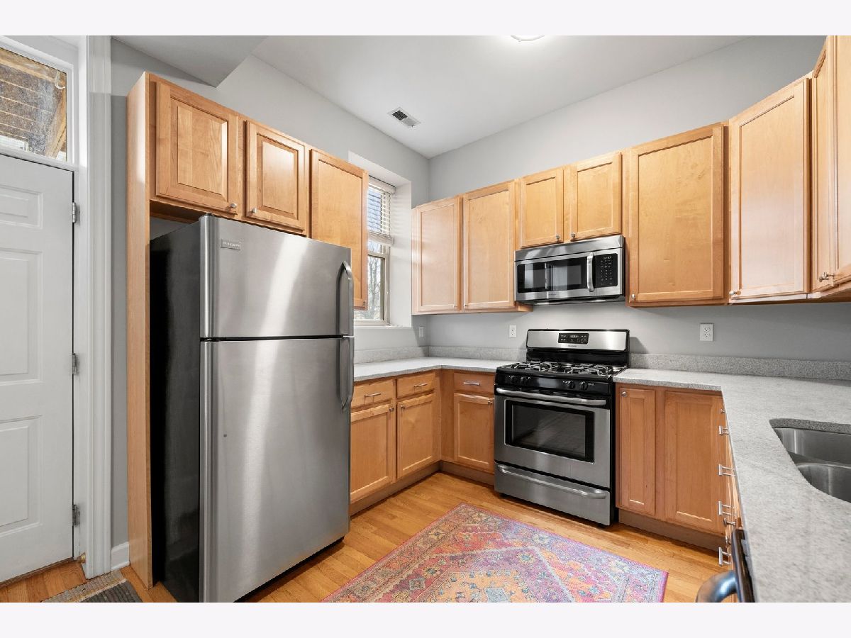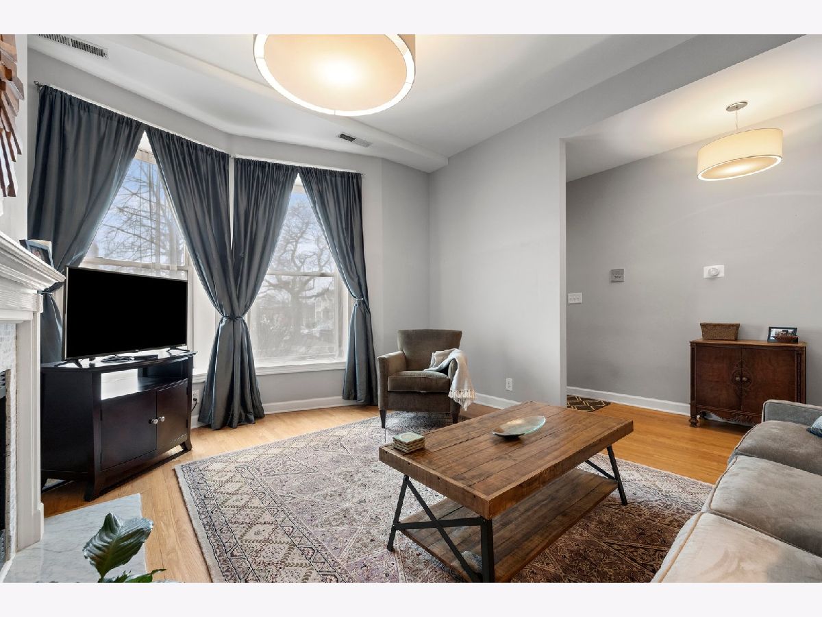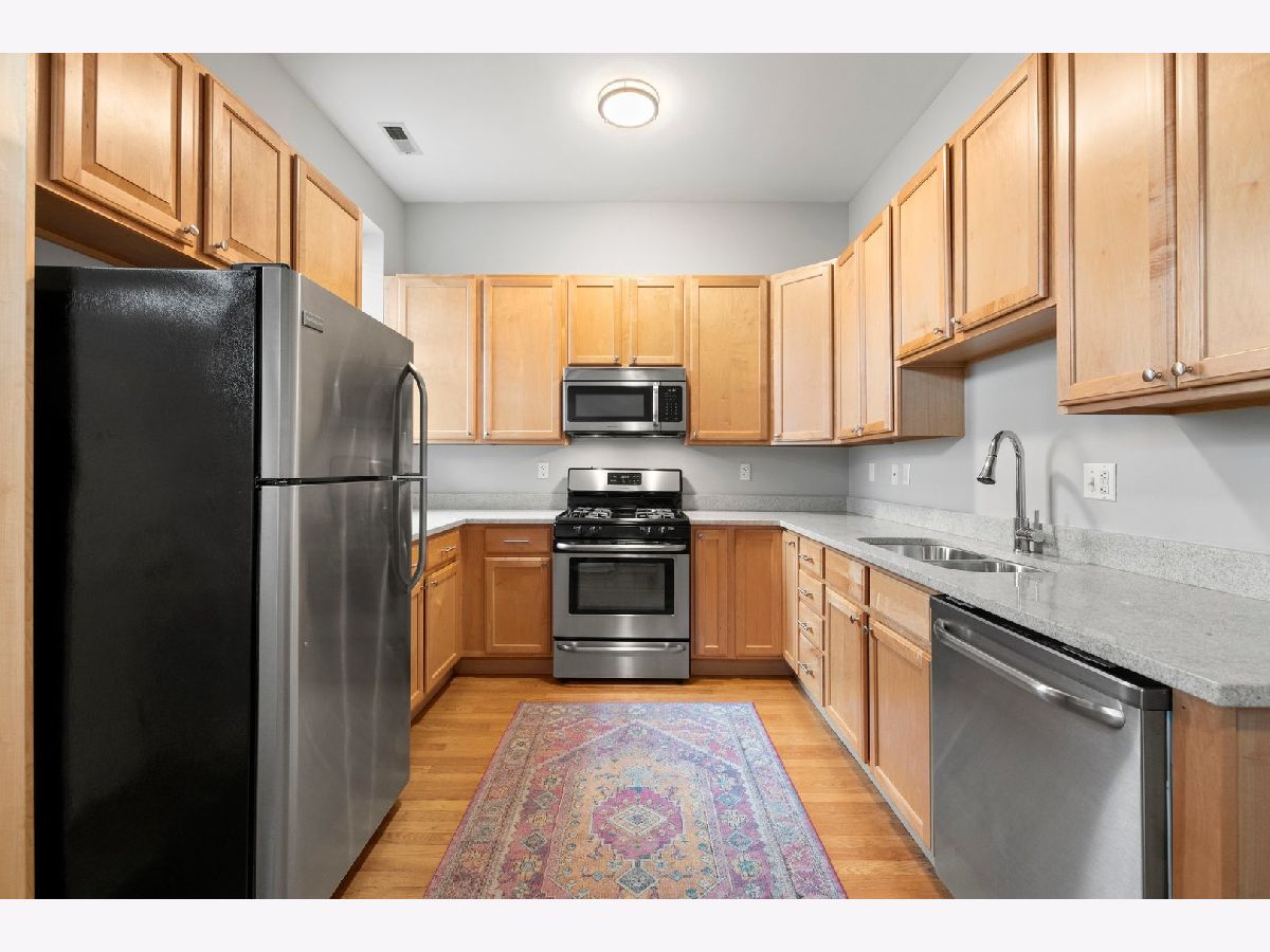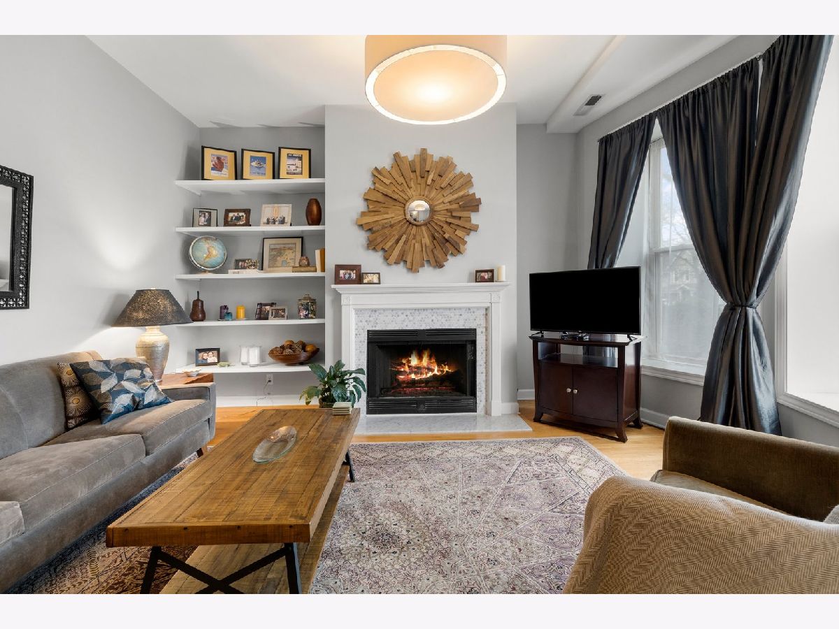 Don't miss this 2 Bed/ 2 Bath with a PRIVATE deck in one of the most sought after pockets of Ravenswood! This hidden gem of a neighborhood is filled with treelined streets, just steps away from Chase Park, Mariano's and some of the best restaurants in the city! The unit is nicely updated with a hint of vintage charm, and features a large spacious layout, high ceilings, hardwood floors, nicely updated bathrooms, newer in-unit washer/dryer, central AC, newer furnace, abundant closet space thru-out, plus huge storage unit! The living room boasts bay windows, built in shelves and wood burning fireplace. The oversized eatin kitchen has plenty of space for a table, newer SS appliances, and quartz counters. Large rear deck ideal for grilling, entertaining and relaxing. 2 good sized bedrooms including the primary ensuite. Gated parking spot is included! Outstanding location on a beautiful block. Charming well managed building with a newly renovated common area. Conveniently located close to both the Damen Brown Line and Ravenswood Metra stops as well as the shops and restaurants on Damen and a short distance to the Lincoln Square retail district and parks!