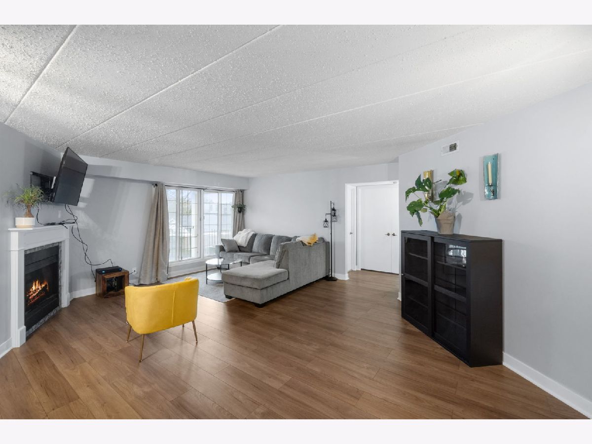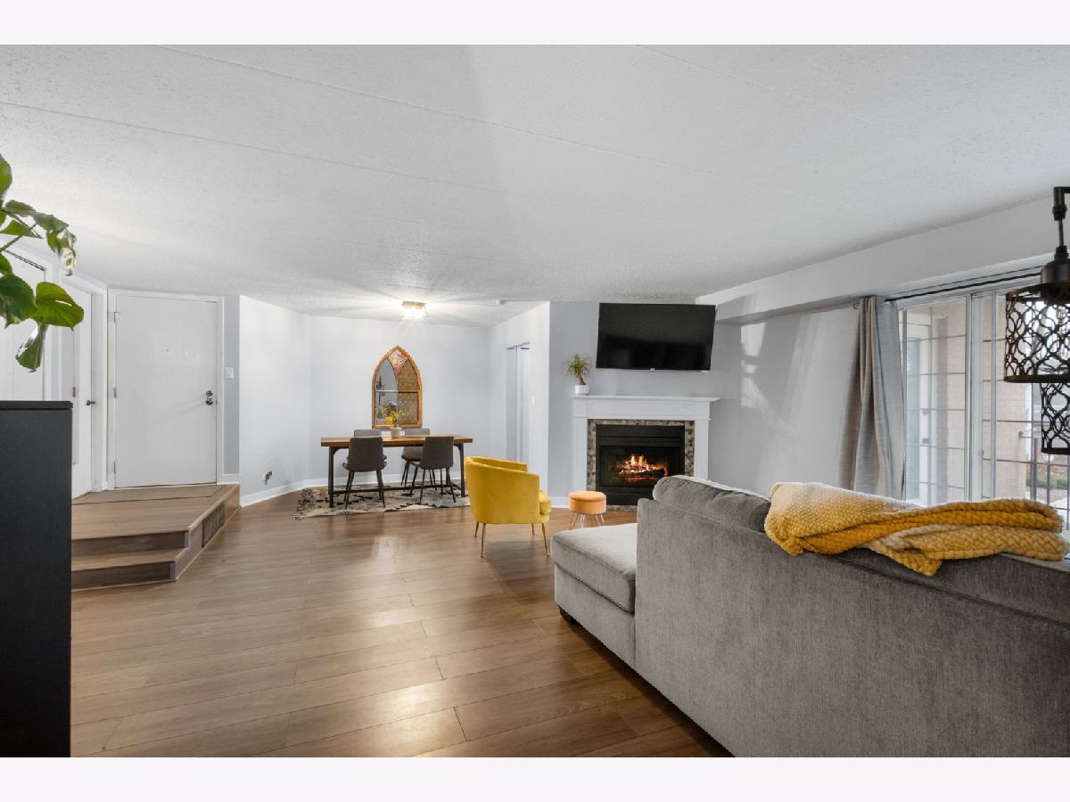 Discover modern comfort in this recently updated end-unit, nestled in the captivating President Street Condos. This condo is a gem in the highly acclaimed Glen Ellyn school district. Step inside to a spacious living and dining room combination, anchored by a striking new fireplace that promises cozy evenings. The adjacent sun-drenched kitchen, complete with a welcoming attached balcony, has been tastefully upgraded. Revel in new flooring across the kitchen, living, dining areas, and foyer, as well as new kitchen countertops. Generously proportioned, the condo includes two well-appointed bedrooms and two pristine bathrooms, providing ample space for relaxation and personal retreats. An updated laundry room equipped with a brand-new washer and dryer adds to the convenience. Parking is a breeze with a garage space and ample outdoor parking for guests. Positioned with easy access to shopping, major highways, and the charming downtown areas of Glen Ellyn and Wheaton, the location is as practical as it is desirable.