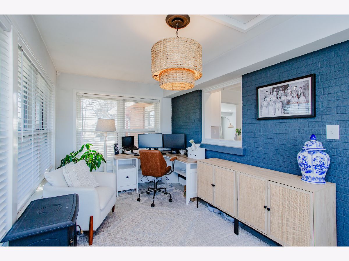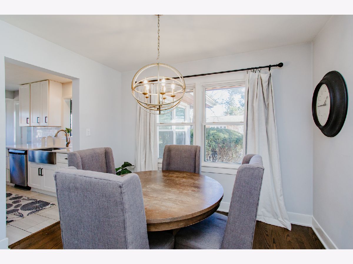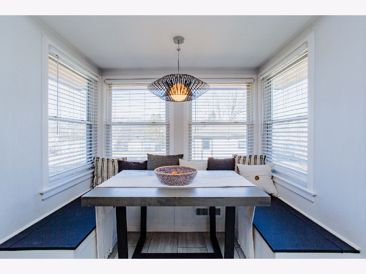 Beautifully updated, this charming ranch home showcases a polished kitchen renovation completed in 2020, featuring elegant quartz countertops, stainless steel appliances, and a classic farmhouse sink. A cozy breakfast nook with a custom banquette offers the perfect space for casual dining. The sun-drenched sunroom, adorned with wall-to-wall windows, serves as an ideal home office and conveniently doubles as a mudroom. The expansive lower-level recreation room provides abundant additional living space, perfect for entertaining or relaxation. Three well-appointed bedrooms are located on the main level, while the finished basement includes a fourth bedroom and a full bathroom, making it an ideal guest suite or private retreat. Ample storage and a laundry area are also located in the basement. Outside, the generous backyard boasts a brick paver patio, perfect for outdoor gatherings, and a detached two-car garage. Situated just two blocks from Eldridge Park, residents will enjoy easy access to scenic walking and biking trails, basketball courts, playgrounds, a fishing pond, and a popular sledding hill - offering recreation opportunities year-round.