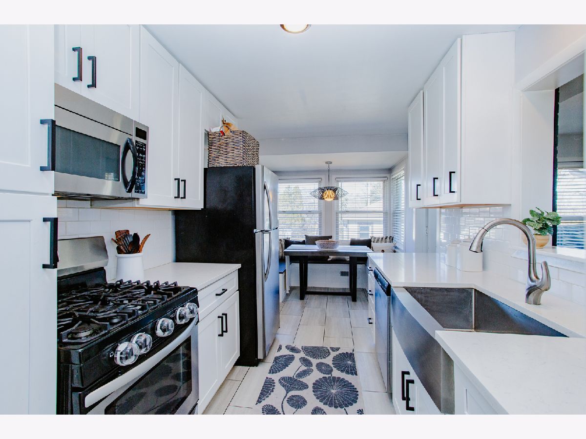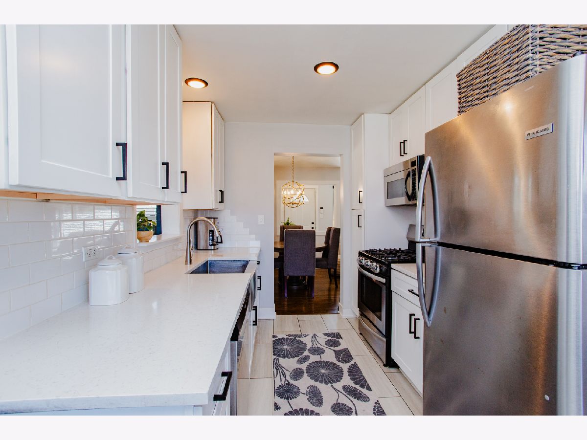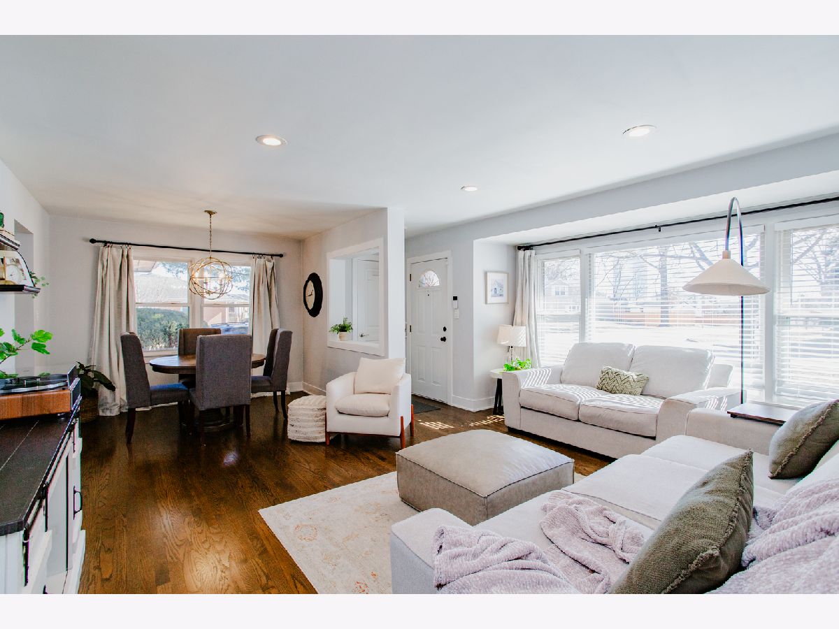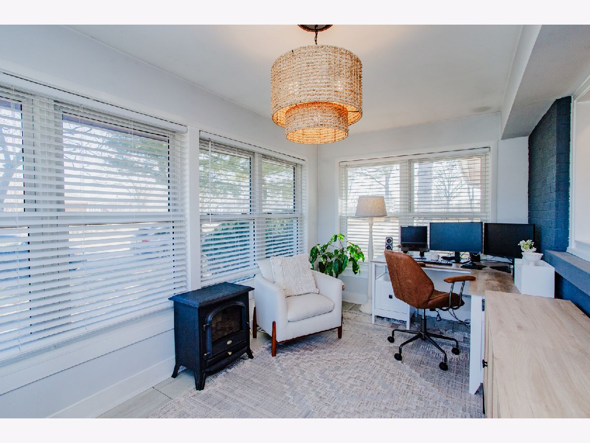 Beautifully updated, this charming ranch home showcases a polished kitchen renovation completed in 2020, featuring elegant quartz countertops, stainless steel appliances, and a classic farmhouse sink. A cozy breakfast nook with a custom banquette offers the perfect space for casual dining. The sun-drenched sunroom, adorned with wall-to-wall windows, serves as an ideal home office and conveniently doubles as a mudroom. The expansive lower-level recreation room provides abundant additional living space, perfect for entertaining or relaxation. Three well-appointed bedrooms are located on the main level, while the finished basement includes a fourth bedroom and a full bathroom, making it an ideal guest suite or private retreat. Ample storage and a laundry area are also located in the basement. Outside, the generous backyard boasts a brick paver patio, perfect for outdoor gatherings, and a detached two-car garage. Situated just two blocks from Eldridge Park, residents will enjoy easy access to scenic walking and biking trails, basketball courts, playgrounds, a fishing pond, and a popular sledding hill - offering recreation opportunities year-round.