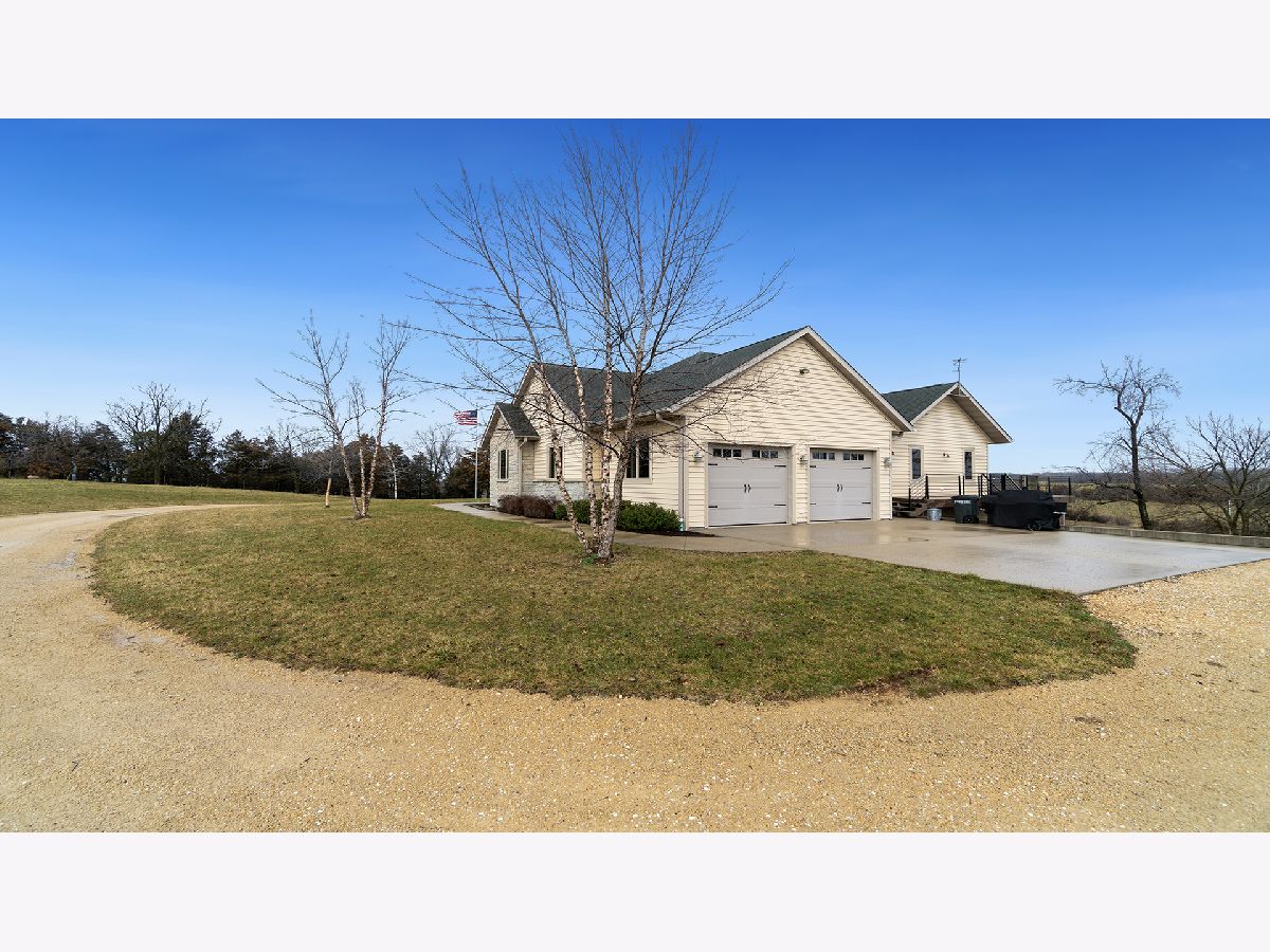 Peace and quiet on 28.5 acres in Jo Daviess County. Over 3,000 square foot house with 3 bedrooms, 3 bathrooms an attached 2 car garage. The many features this house has are: whole house generator, solar panels, Kenmore high end appliances (2 ovens), kitchen island, wine fridge, Alder cabinets, hickory floors throughout home, all 3 bathrooms have heated floors, hot tub on deck, gas fireplace, baseboard electric vacuums, and much more. Enjoy looking at the abundance of wildlife as you sit on the deck. Nice basement entrance from garage brings you into bonus room used as a home gym. Also in basement is huge rec room which is plumbed for wet bar, you just need to bring your bar plans with you. No more getting up real early to drive to the tree stand for deer hunting, wake up and take a minute walk to your deer stand. Wait until you see the detached garage/shed with excellent wood working area and added 2+ car stalls. The added 2nd level of garage has plenty of storage space. 20+ acres of property is currently enrolled in CRP. Don't miss out on this one!