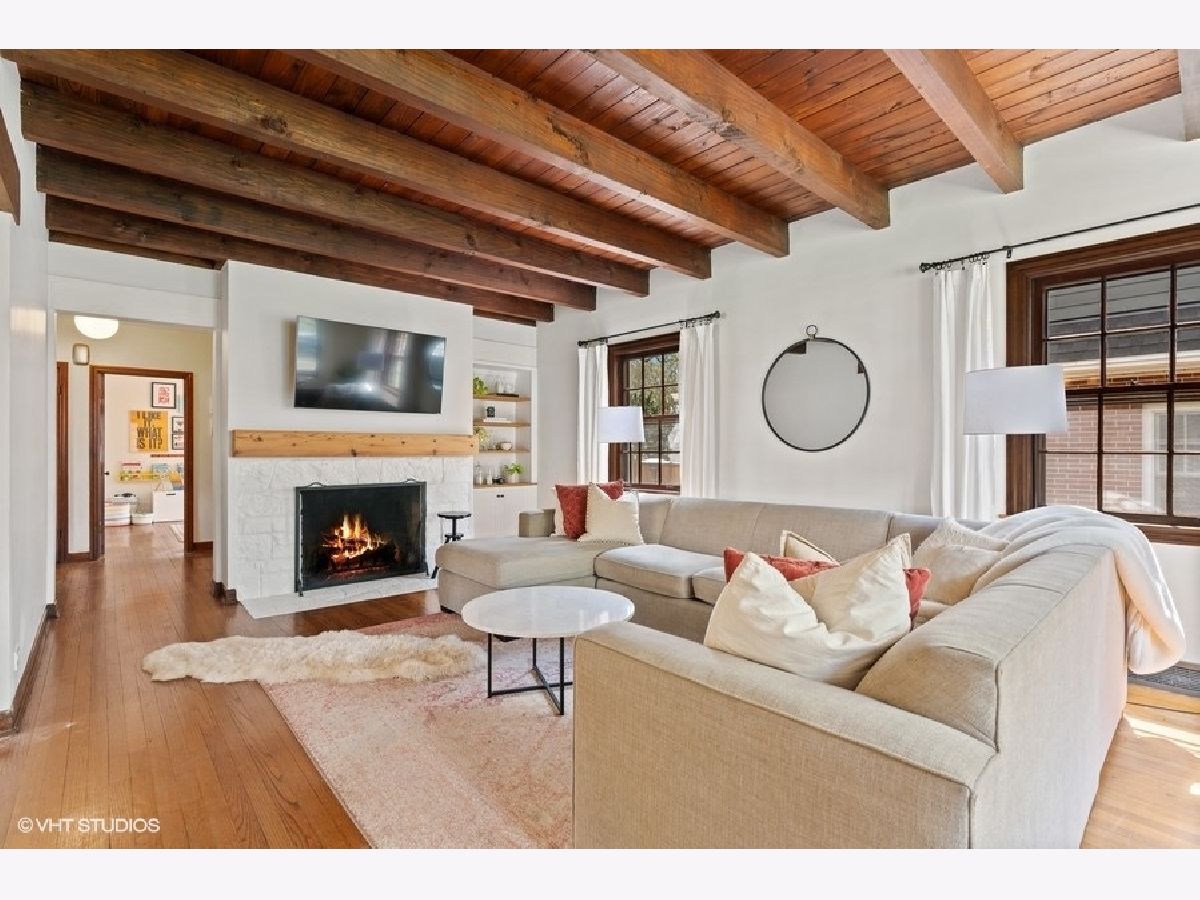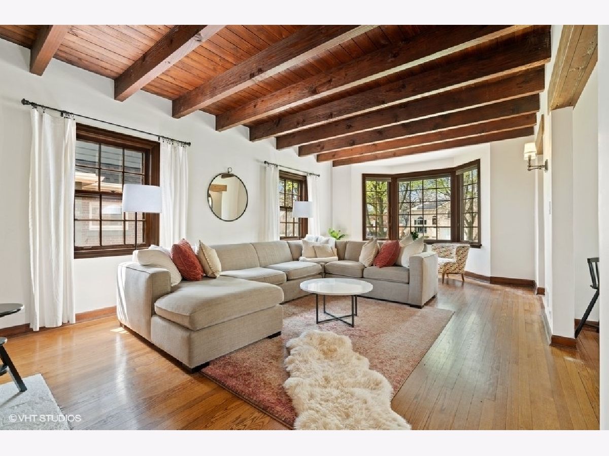 THIS IS IT!! You can have it all---STUNNING & LOCATION. Just 3 blocks to the Metra, Keystone & Washington Park --and WALKING DISTANCE to all the Madison Street restaurants and shops! This 4 bedroom brick Tudor Style home will not disappoint. Beamed dramatic ceilings, beautiful hardwood floors, 2 field stone fireplaces, sunfilled living and dining rooms, large eat in updated kitchen with quartz counter tops, designer subway backsplash, full pantry.Window lined mudroom but could also be used as office or sunroom. First floor bedroom(currently being used as playroom) with full bath. 3 generous sized bedrooms on 2nd floor with AMPLE closest space. Even has Hidden closet /storage in attic. Lower level offers stunning beamed ceiling family room with a vintage bar and stone woodburning fireplace, AND 2 STORAGE ROOMS PLUS A LAUNDRY ROOM. Professionally landscaped fenced in yard. Brick 2 car garage plus parking pad for 2 cars. See drop down for list of improvements done by this owner.