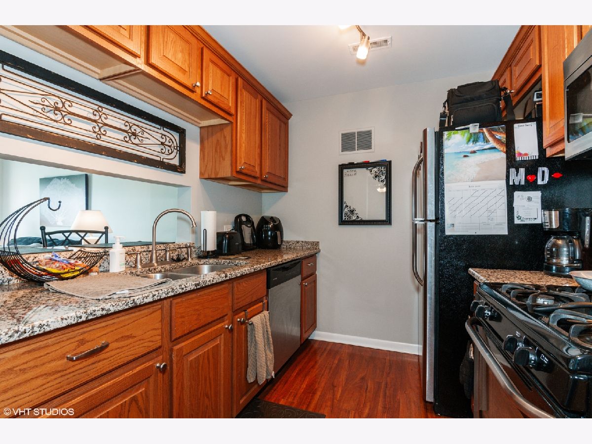 Wow! This 2 bedroom 2 bath, second floor condo is just steps to the train, restaurants, shops and walking distance to Lilac Park, yet in a quiet neighborhood with great schools. The living room features a vaulted ceiling leading out to the private balcony. Hardwood floors in the living and dining rooms, granite countertops in the kitchen and bathrooms, and newer carpet in both bedrooms leave nothing to be done! Complete with washer and dryer (2019), water heater (2020), central A/C, and deeded parking, and pets are allowed. Great for investment property.