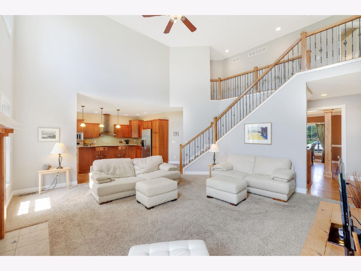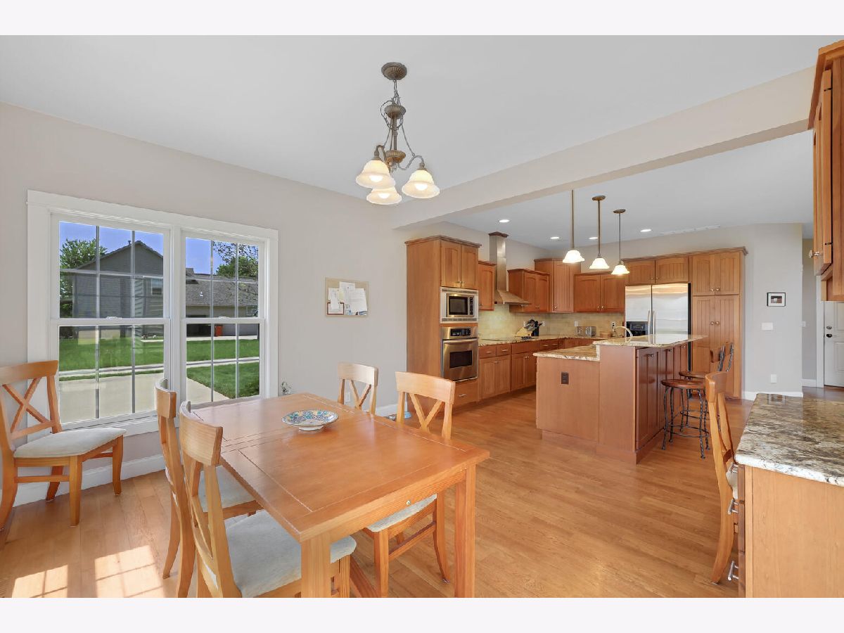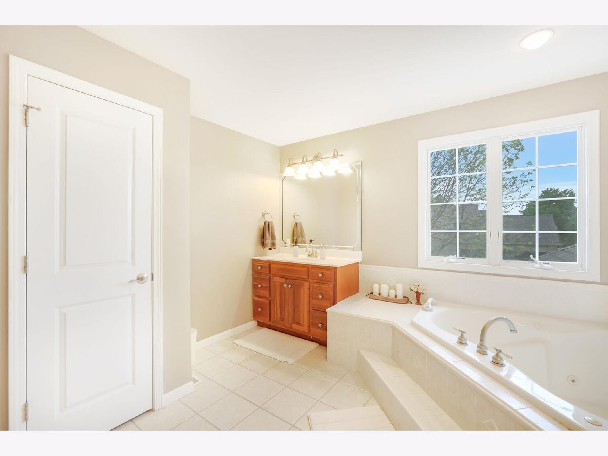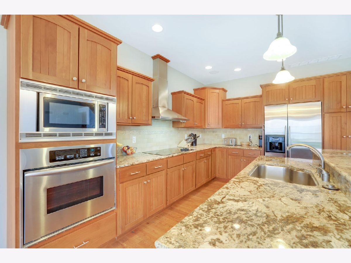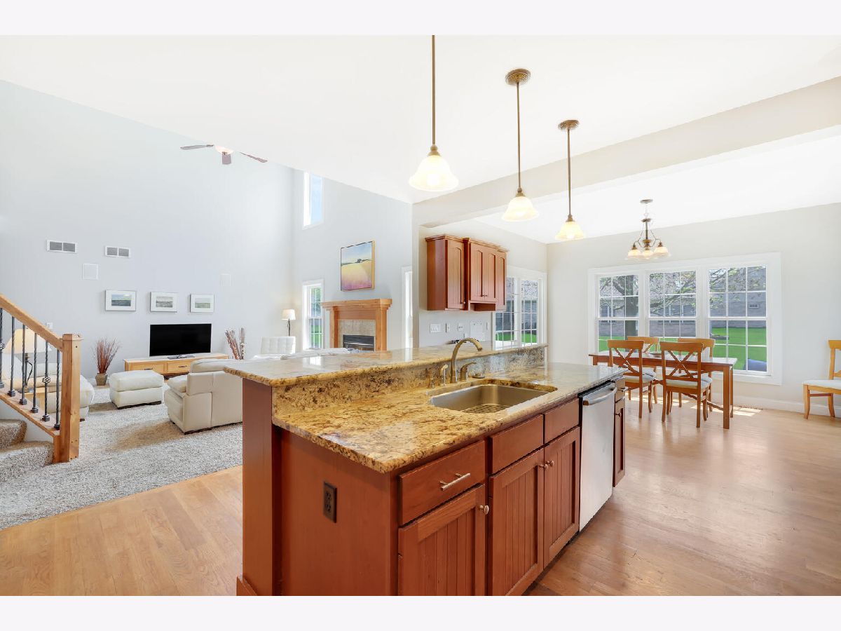 Distinctive Design with charming entry and dramatic 2 story Great Room which opens to an extensive kitchen with island, planning desk and sunny breakfast area. The Great Room offers natural light and a gas fireplace. The immense, granite kitchen island features casual seating. Separate dining room with coffered ceiling, first floor bedroom/office with adjacent full bath and laundry room complete the first floor. Exceptional master suite with crown molding and room darkening shades, spa-like bath including separate vanities and jacuzzi tub plus generous walk-in closet. Two additional bedrooms and full bath are also located on the second floor. Finished basement with family room, pool table/workout space, 5th bedroom and full bath. Unfinished room houses the mechanicals and provides unlimited storage. 3 car garage. Previous "Showcase Home" built by Armstrong Construction and loaded with upgrades: Anderson windows, custom kitchen cabinets, surround sound, irrigation system and central vacuum. Recent updates: New roof with a 50 year warranty and chimney cap (2018), sump pump backup system (2015), sump pump (2016), water heater-one of two (2017), 2 car garage door (2019), microwave (2021), garbage disposal (2020). Bonus features: basketball court in the backyard, borders a walking trail and the pool table stays! Located in Ironwood and conveniently located near schools, medical facilities and parks