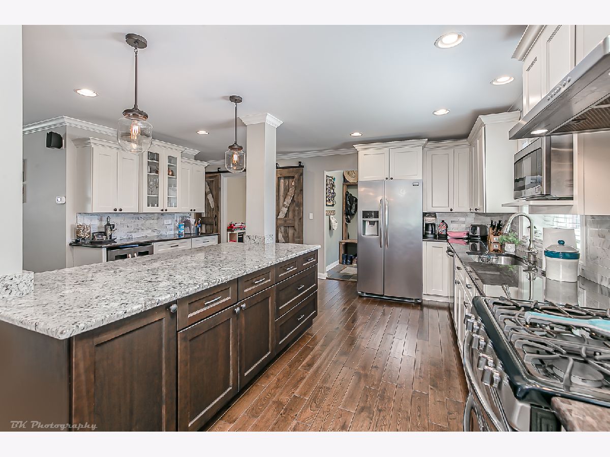 *Multiple offers received. Highest and best offers due by 5/19/21 at 12pm.* Beautiful 4 bedroom 2.5 bath two story home in the heart of Oak Lawn was totally rebuilt in 2015 from the ground up! This home has so much curb appeal with professional landscaping and an extra large, inviting front porch. The first floor offers an open concept layout with gleaming hand scraped hickory hardwood flooring throughout. Impressive living room boasts a gas fireplace with custom mantle and custom designed sound system (included). Gorgeous, gourmet kitchen features custom white cabinets, including a stand mixture pullout with electric, granite countertops, marble backsplash, huge island with complimentary brown cabinets and white granite countertops, smudge proof stainless steel appliances, custom light fixtures, a wine bar, and a walk in pantry make this kitchen the center of the home. Connecting the kitchen and living room is a large and inviting dining area. The first floor also has a den/office/playroom enclosed with custom doors made from authentic barn wood. Additionally on the first floor: a powder room and spacious mud room with custom barn wood cubby storage. Upstairs features a huge master bedroom with tray ceiling and two walk-in closets! Luxurious hotel-like master bathroom with custom cabinetry, fixtures, and quartz countertops and a massive walk-in steam shower with all quartz bench and tile walls, plus a classic clawfoot bathtub. Three additional really good sized bedrooms with large closets, one with cathedral ceilings. Additional full bathroom with custom cabinetry, fixtures, granite countertops and water closet. Convenient 2nd floor full laundry room. Finished basement with recreation room and ample storage. Like to entertain in the summer? This house is an outdoor entertainer's dream! The fully fenced back yard is extra deep and wide! A rare and hard to find feature in Oak Lawn! The yard also features a 45x50 section of connected concrete patio with full extra wide side drive. Grilling area between two separate stairways. Last but not least, an extra large heated and air conditioned 3 car garage with added depth for storage and two party doors in the back and a pull down staircase to a massive attic storage area. The house and garage have a professionally installed security camera system. Bonus 10X10 storage shed. Custom made wood blinds throughout the entire home (included). New overhead sewer. Front lawn sprinkler system. This home is close to everything Oak Lawn has to offer, the train station, shopping, amenities, public transportation, expressway! Come make this your home today!