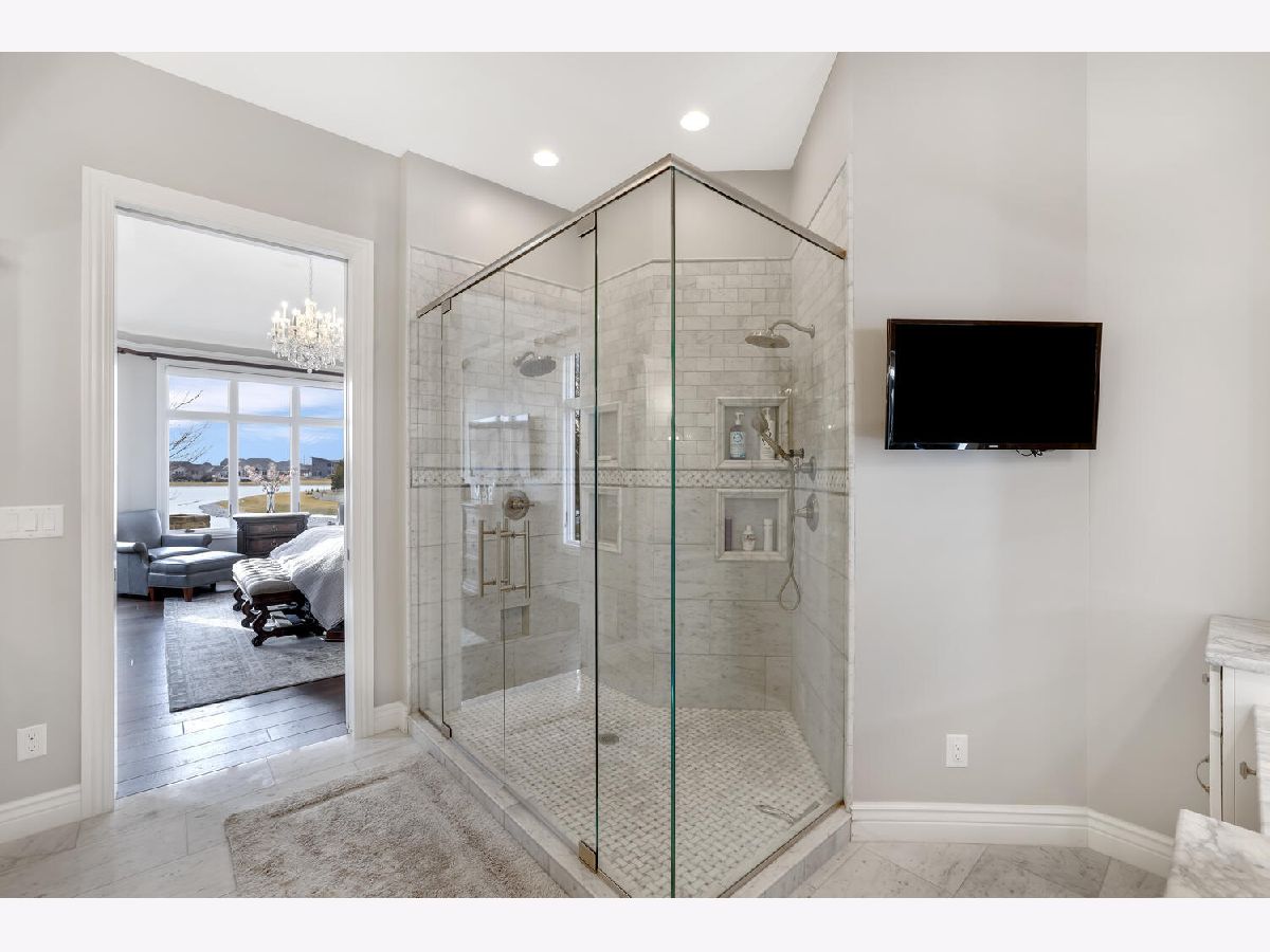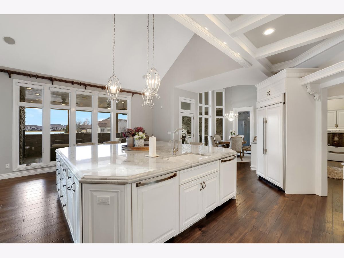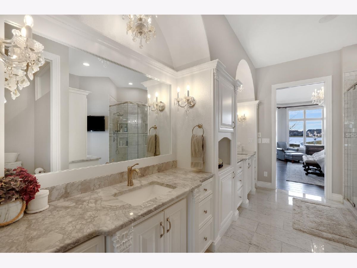 Remarkable opportunity to own this Masterly crafted waterfront property in Chestnut Grove Subdivision. No detail was overlooked in this nearly 6,000 square foot home. Once you walk through the front doors you will be amazed at the abundance of natural light, curved staircase, soaring ceilings, and beautiful newer hardwood floors. The Chef's kitchen has been updated with white custom cabinetry, new super white Marble countertops, and KitchenAid appliances. The first floor Master Bedroom with tray ceilings includes a spa-like Master Bath that has been redone with all new flooring, marble countertops, and marble tile walk-in shower. The second level features three generously sized bedrooms suites, all with new hardwood flooring and walk-in closets. The English basement has all new ceramic (wood look) floors and includes its own theater room, wine cellar, bedroom suite, and family room open to the kitchenette. The entertaining space is not limited to inside the home, host your gatherings outside on the newly added covered deck with a soaring vaulted beamed ceiling, a built-in kitchen, fireplace, and bar overlooking the professionally landscaped backyard with an in-ground pool, outdoor stone fireplace, & panoramic views of the lake. The home is equipped with new Hunter Douglas automated blinds and a new stamped metal roof. Don't miss your chance to own one of Champaign's finest properties.