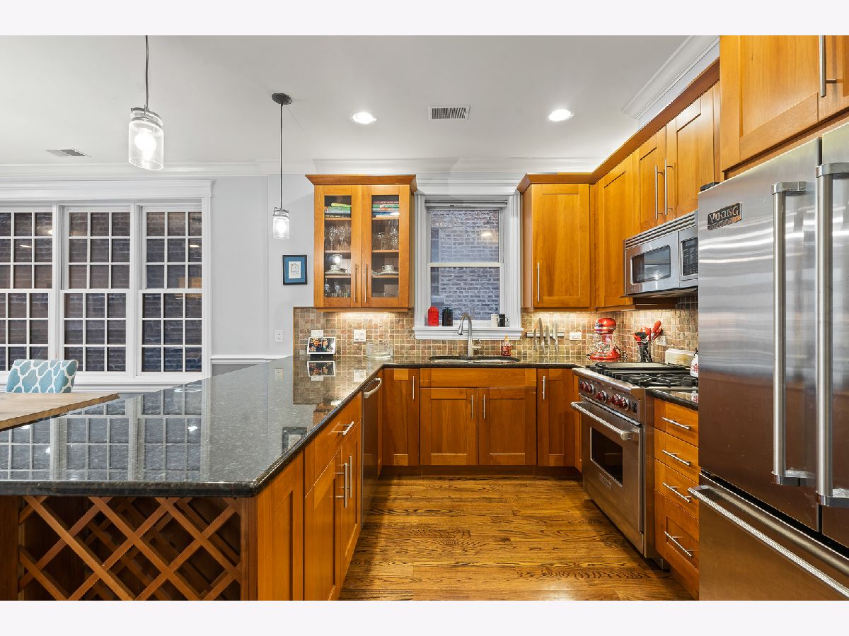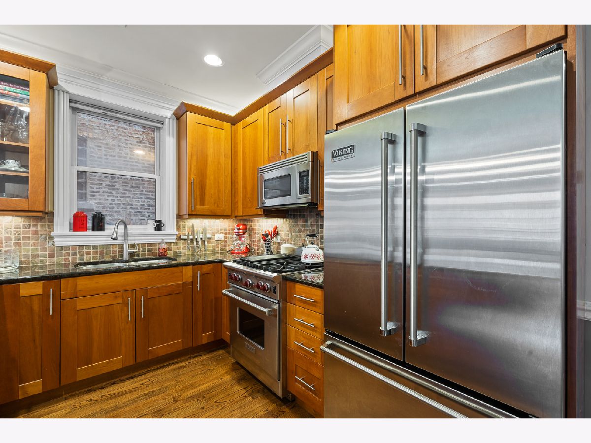 This luxurious Sheridan Park condo offers open layout with outdoor space, and garage parking. Newer built all brick building with lovely landscaped front gardens. Chefs kitchen features Viking/Wolf/Bosch appliances, huge peninsula with granite breakfast bar leads to living/dining combo and large front terrace. Natural stone baths with body sprays, frame-less glass doors, separate soaking spa tub, and double vanity. Gorgeous custom mill work, hardwood floors throughout, crown molding, surround sound wiring, wood burning gas fireplace, and organized closets. Large private storage room and garage parking included. Walk to Andersonville, Mariano's, red line, brown line and Ravenswood Metra!