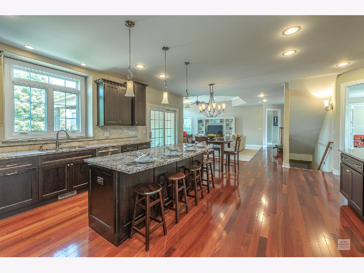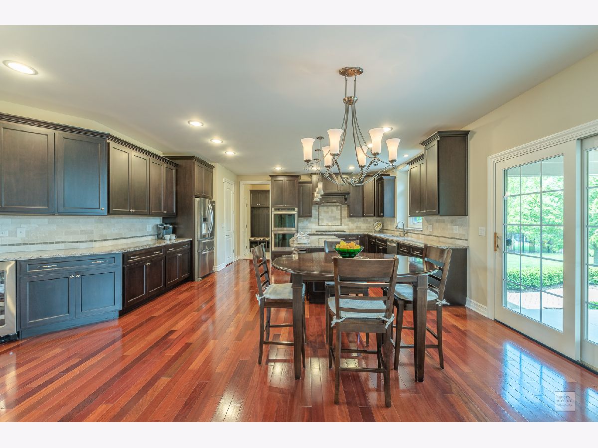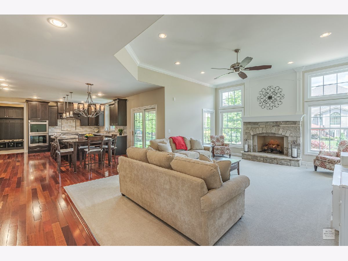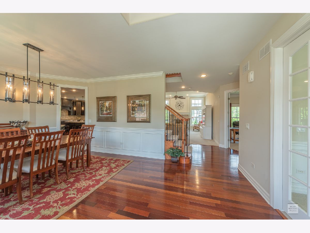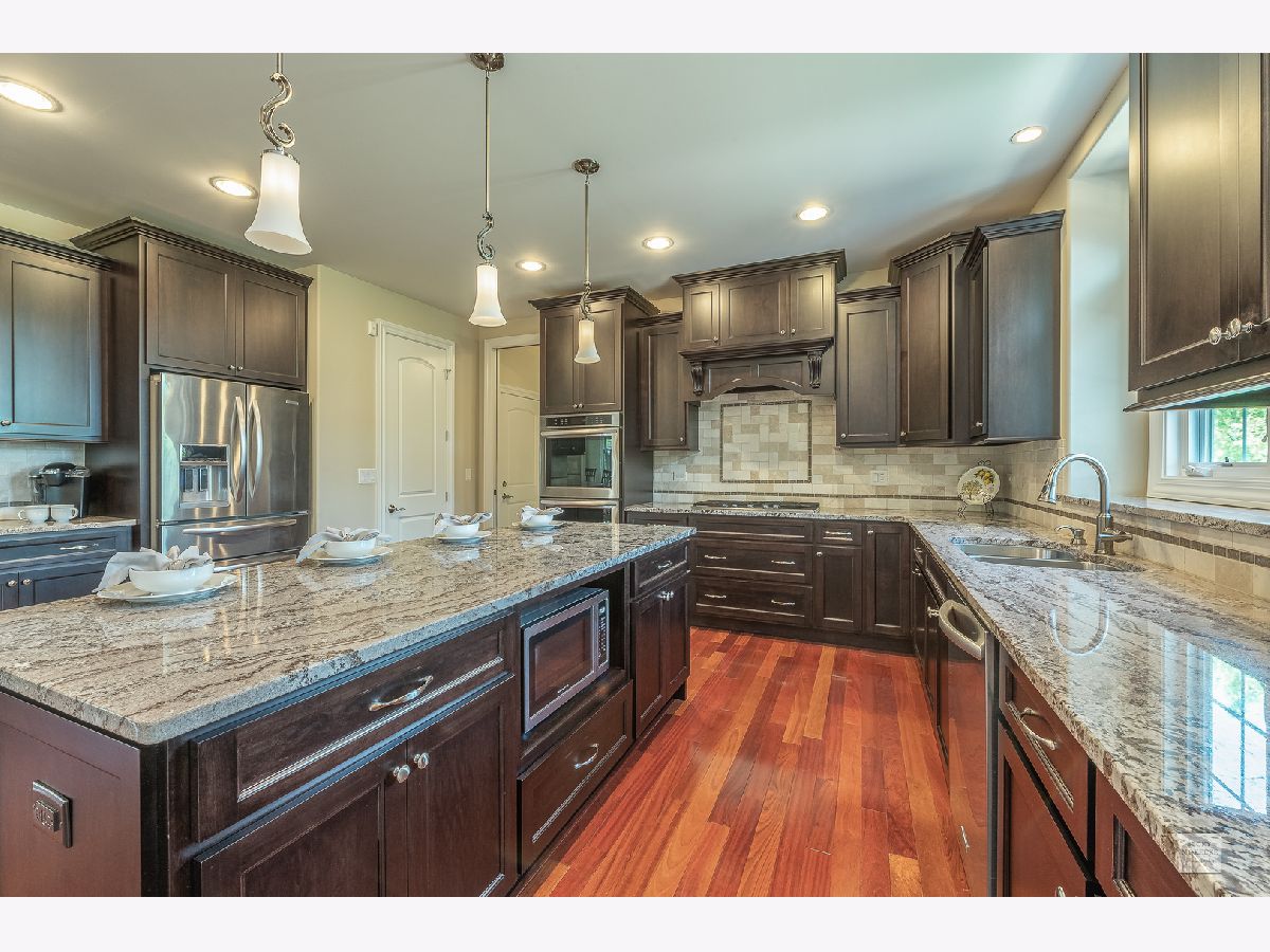 SPECTACULAR Custom Built, one owner, meticulously maintained home shows like a model. Exterior includes gorgeous brick masonry w/ prof landscaping leading to a masonry covered front porch. A 2 story foyer w/ brazilian cherry wood flooring leads to a sprawling open floor plan. Formal living and dining have gleaming white trim, wainscotting, crown molding, and dramatic light fixtures. The chef inspired kitchen includes custom Amish cabinets, ssl, granite, travertine tile backsplash, double oven, oversized island w/ seating, walk-in pantry, wine fridge, recessed lighting and sliding doors which lead to spacious covered back porch. Kitchen also opens to the family room with stone fireplace, recessed lighting, crown molding and 11' ceiling. Custom wrought iron spindle staircase includes landing with wainscotting and crown molding. Xtra large mudroom has custom cabinetry, sink, bench, cubbies, and leads to spotless 3.5 car side-load garage. Full bath on first floor includes a pocket door to the office w/ closet which can easily be used as in-law suite for generational living. Master bedroom has trey ceiling with accent lighting, crown molding, walk in closet 20'x13' with custom built-in shelving. Luxury master bath includes custom walk-in tiled shower w/ seating, vaulted ceiling, 2 separate custom vanities w/ granite and high-end light fixtures. 2nd bedroom suite includes vaulted ceiling and private full bath. Beds 3 & 4 share jack-&-jill bath. 5th bed is large enough and ideal for media/play/workout area with 10' ceiling. Covered porch from the kitchen leads to spacious brick paver patio with built in seating, gorgeous masonry outdoor wood fireplace plus a deep flat yard for a sports field. Dual zoned HVAC, tankless water heater, radon mitigation system and sprinkler system. Professionally landscaped. All baths have custom vanities, granite and high-end light fixtures. All rooms have at least 9' ceilings and 8' doors and Hunter Douglas blinds. Huge deep pour basement with bathroom rough-in is waiting for your finishes. Short walk to Ashwood Club with pools, basketball and sports courts, patio and gorgeous clubhouse. Quick close possible! Naperville district 204 schools plus walking distance to Peterson Elementary. Previous buyer's loss is your gain. Buyer could not secure financing timely.