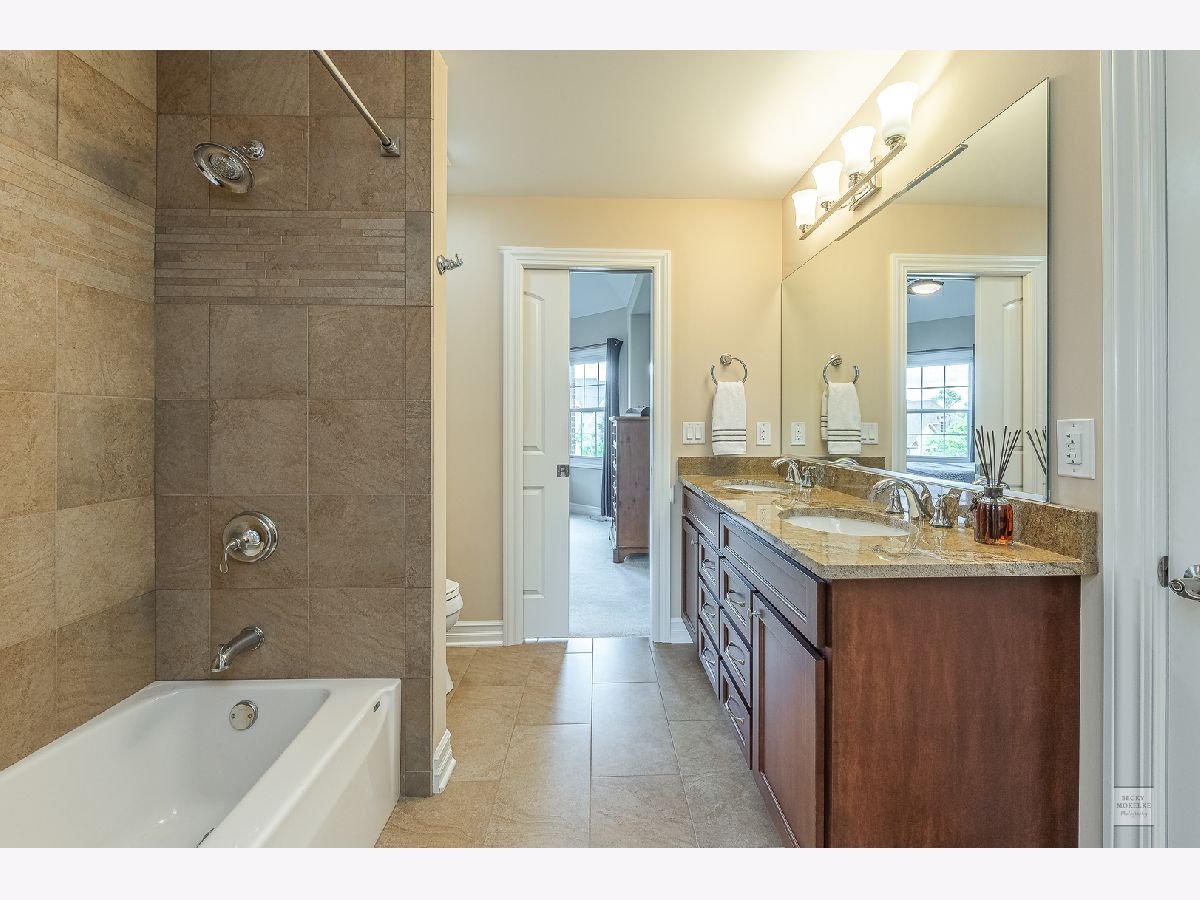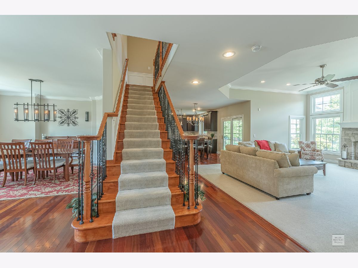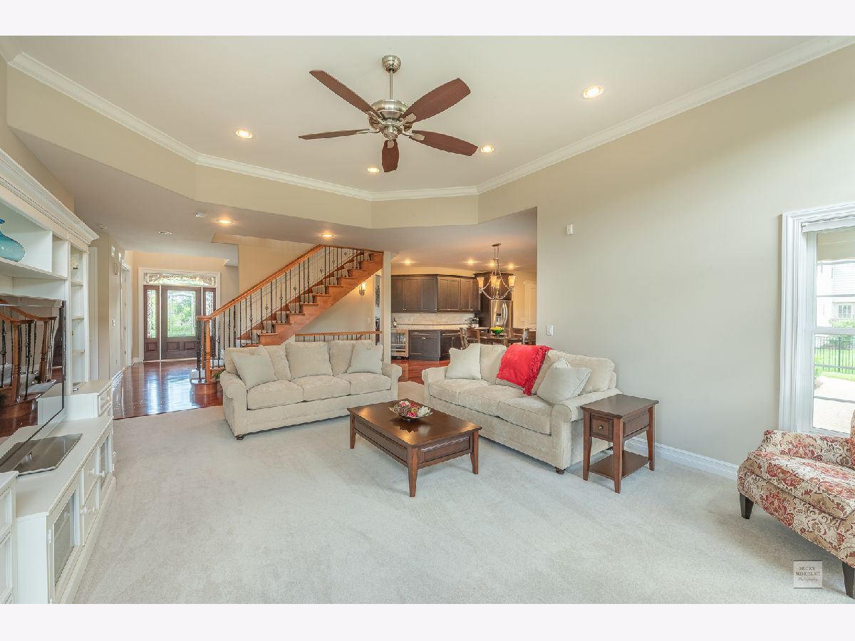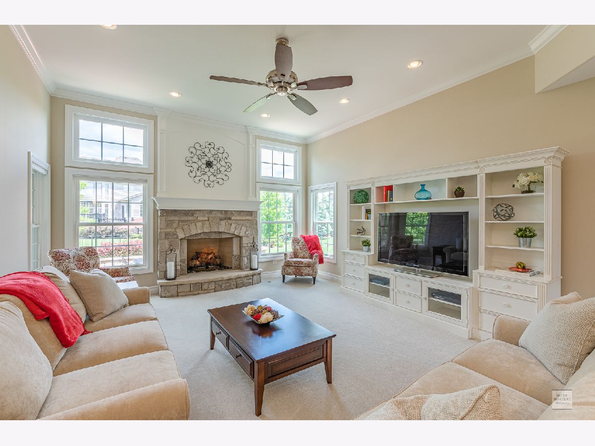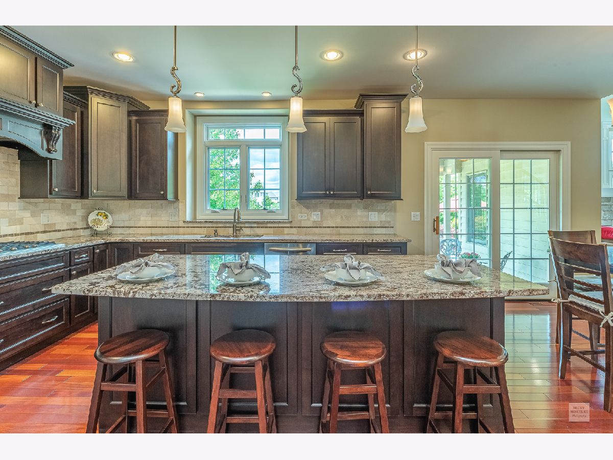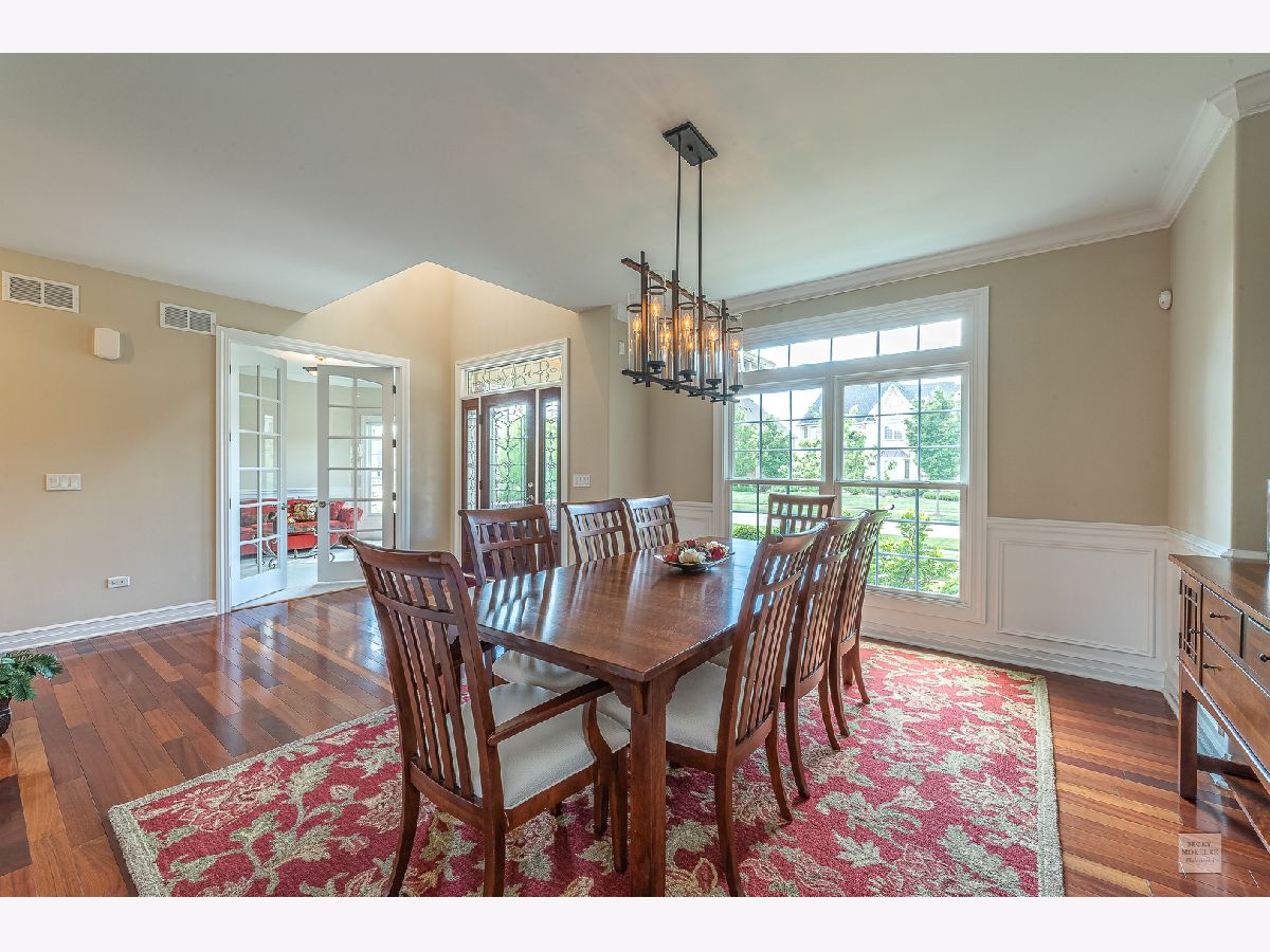 SPECTACULAR Custom Built, one owner, meticulously maintained home shows like a model. Exterior includes gorgeous brick masonry w/ prof landscaping leading to a masonry covered front porch. A 2 story foyer w/ brazilian cherry wood flooring leads to a sprawling open floor plan. Formal living and dining have gleaming white trim, wainscotting, crown molding, and dramatic light fixtures. The chef inspired kitchen includes custom Amish cabinets, ssl, granite, travertine tile backsplash, double oven, oversized island w/ seating, walk-in pantry, wine fridge, recessed lighting and sliding doors which lead to spacious covered back porch. Kitchen also opens to the family room with stone fireplace, recessed lighting, crown molding and 11' ceiling. Custom wrought iron spindle staircase includes landing with wainscotting and crown molding. Xtra large mudroom has custom cabinetry, sink, bench, cubbies, and leads to spotless 3.5 car side-load garage. Full bath on first floor includes a pocket door to the office w/ closet which can easily be used as in-law suite for generational living. Master bedroom has trey ceiling with accent lighting, crown molding, walk in closet 20'x13' with custom built-in shelving. Luxury master bath includes custom walk-in tiled shower w/ seating, vaulted ceiling, 2 separate custom vanities w/ granite and high-end light fixtures. 2nd bedroom suite includes vaulted ceiling and private full bath. Beds 3 & 4 share jack-&-jill bath. 5th bed is large enough and ideal for media/play/workout area with 10' ceiling. Covered porch from the kitchen leads to spacious brick paver patio with built in seating, gorgeous masonry outdoor wood fireplace plus a deep flat yard for a sports field. Dual zoned HVAC, tankless water heater, radon mitigation system and sprinkler system. Professionally landscaped. All baths have custom vanities, granite and high-end light fixtures. All rooms have at least 9' ceilings and 8' doors and Hunter Douglas blinds. Huge deep pour basement with bathroom rough-in is waiting for your finishes. Short walk to Ashwood Club with pools, basketball and sports courts, patio and gorgeous clubhouse. Quick close possible! Naperville district 204 schools plus walking distance to Peterson Elementary. Previous buyer's loss is your gain. Buyer could not secure financing timely.