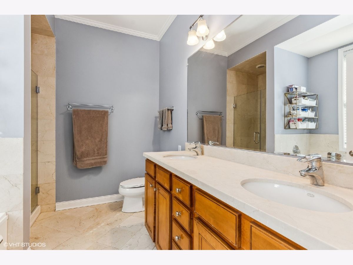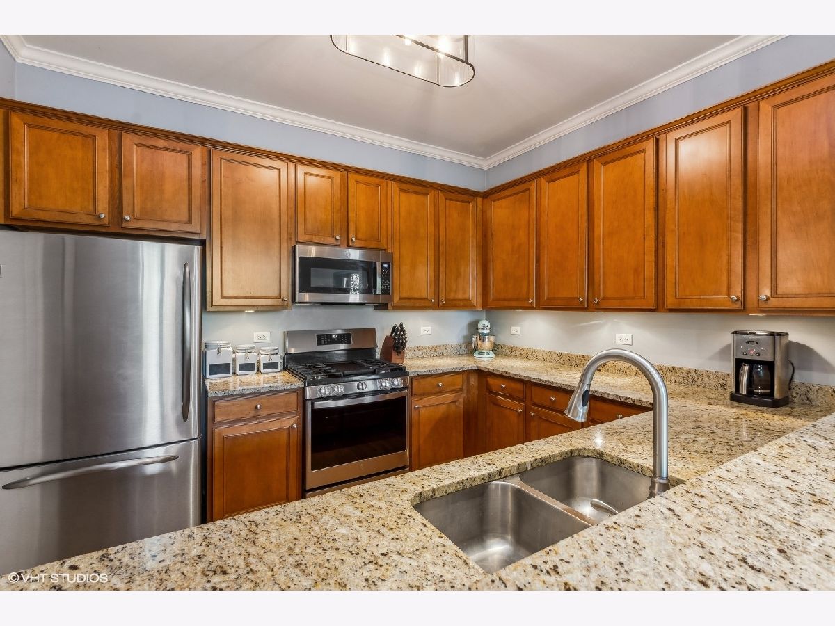 Spacious and sunny 3 bed/2 bath condo in solid brick elevator building with extra wide floor plan. Beautiful kitchen with 42'' cabinets and stainless steel appliances. Newer furnace, A/C, washer/dryer and dishwasher. Large master with 2 large walk in closets, en-suite marble bath, separate shower and double bowl sinks, Ample storage space in unit and storage cage in garage. Spacious private balcony overlooking Chase Park. Detached, gated garage parking included in price. 2023 Taxes were $9,097.82, with homeowner exemption. Monthly HOA dues $375. Please see 360 Matterport tour for a full appreciation of this great condo.