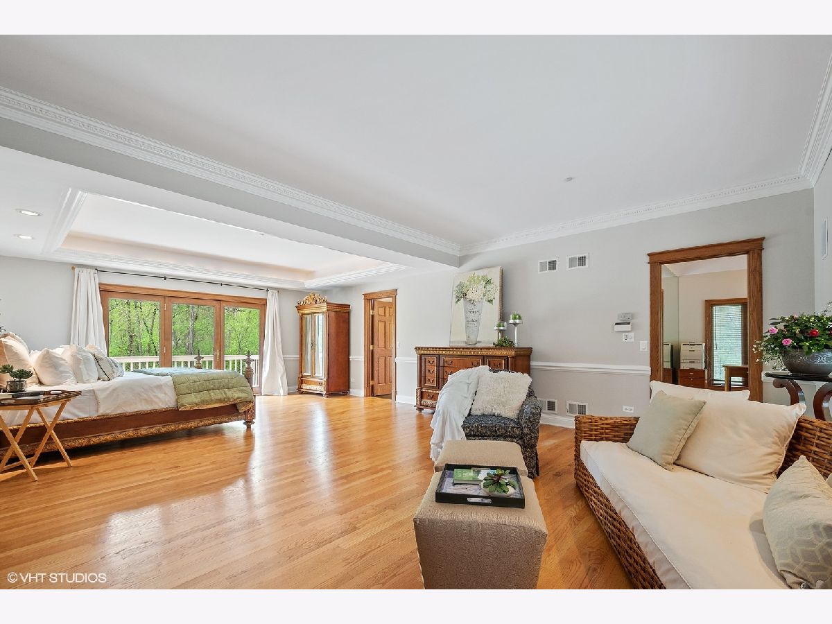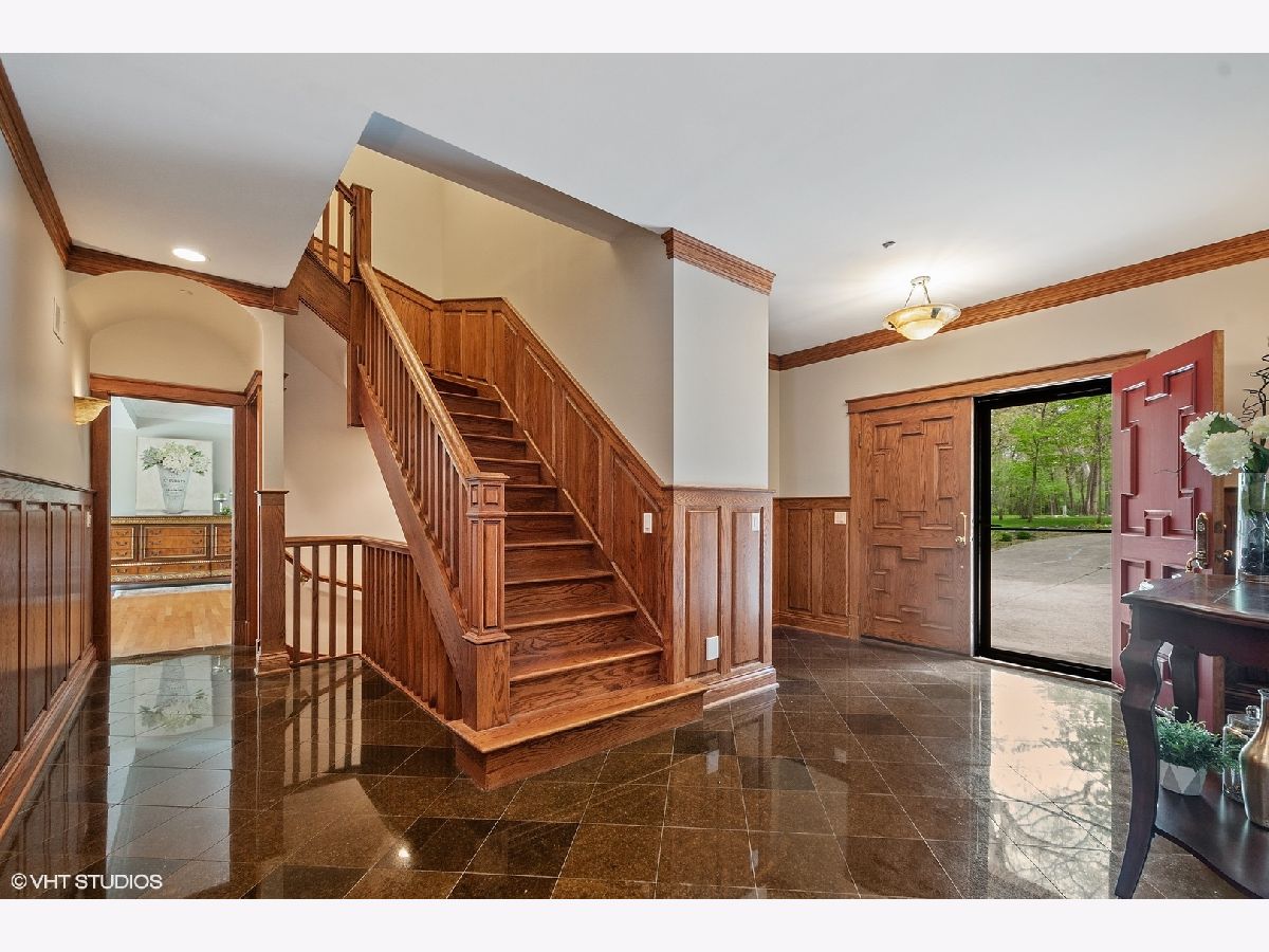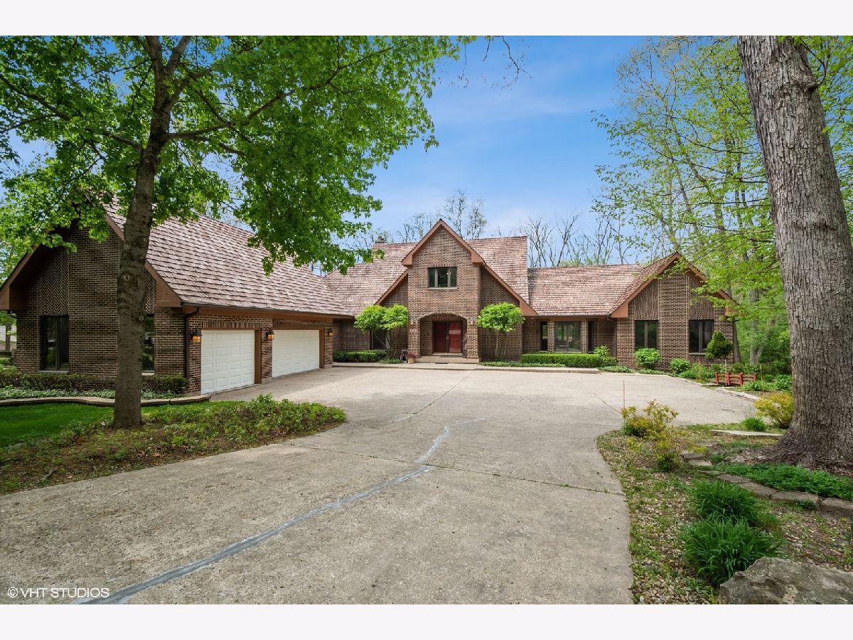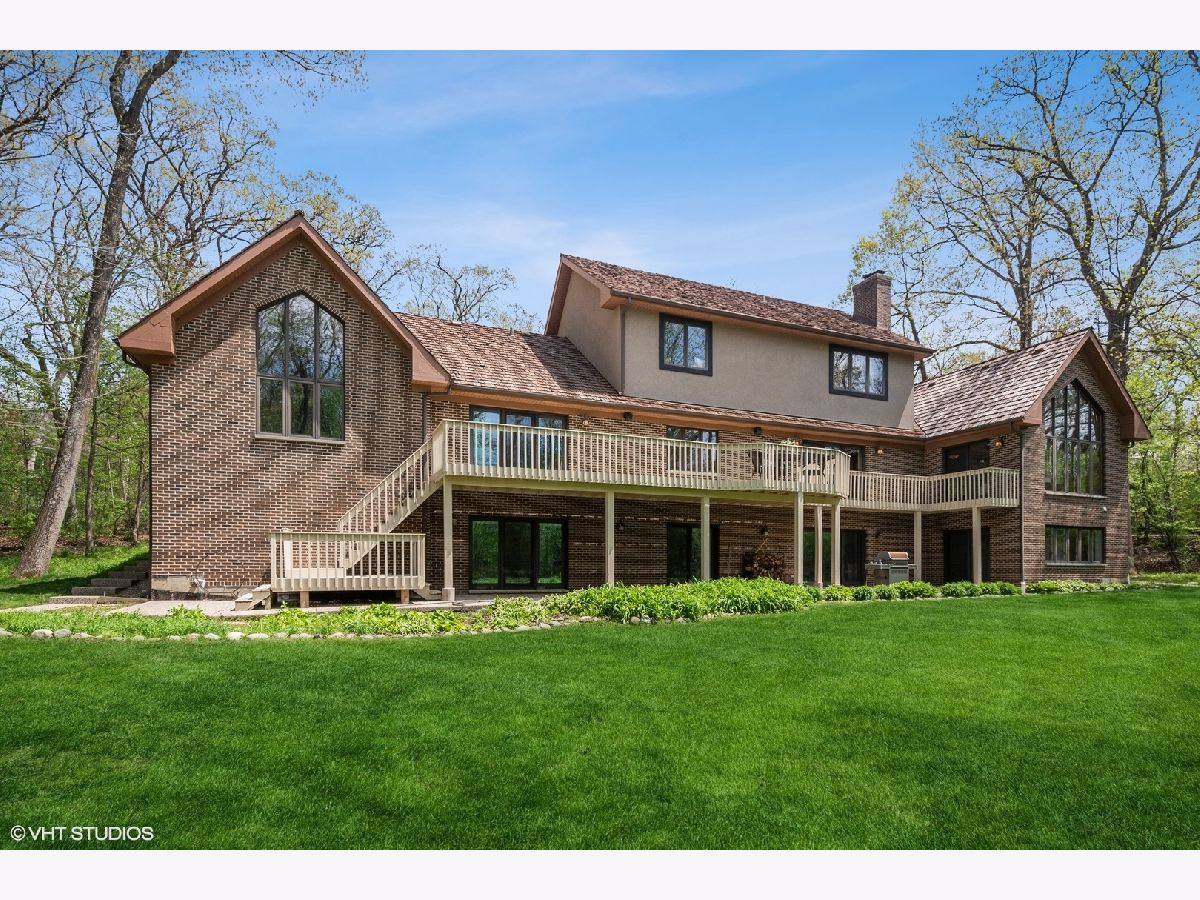 Welcome to this gorgeous 6 bedroom brick home, beautifully situated on a premium 1+ acre wooded lot, in the prestigious Royal Melbourne Subdivision. Features include arched entryway, amazing millwork throughout and lush landscaping. Gourmet kitchen has granite counter tops, beautiful white cabinetry, stainless steel appliances, breakfast bar & tile backsplash. The stunning family room has cathedral ceiling w/ exposed beams, beautiful wainscoting & walls of windows with wonderful wooded views. The first floor Primary Bedroom is luxurious w/ hardwood flooring, cove lighting, large sitting area, attached office and balcony. three additional spacious bedrooms and two full baths grace the upper level. The huge walk-out lower level has a formal theater room that provides true Cinema experience with three rows of seating. Also included in this amazing walkout are a recreation room with fireplace, game area with wet-bar/kitchenette area, a 5th bedroom, an exercise room or 6th bedroom, 2 full baths, and much more! Stevenson High School District!! This is truly a must see!!!