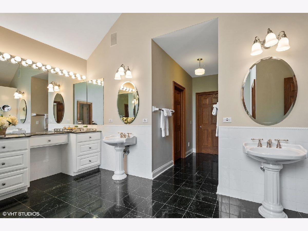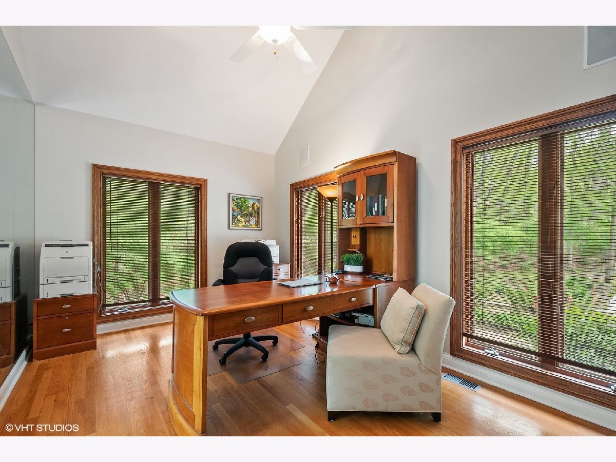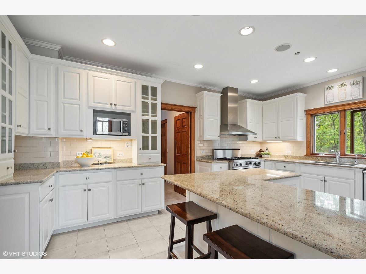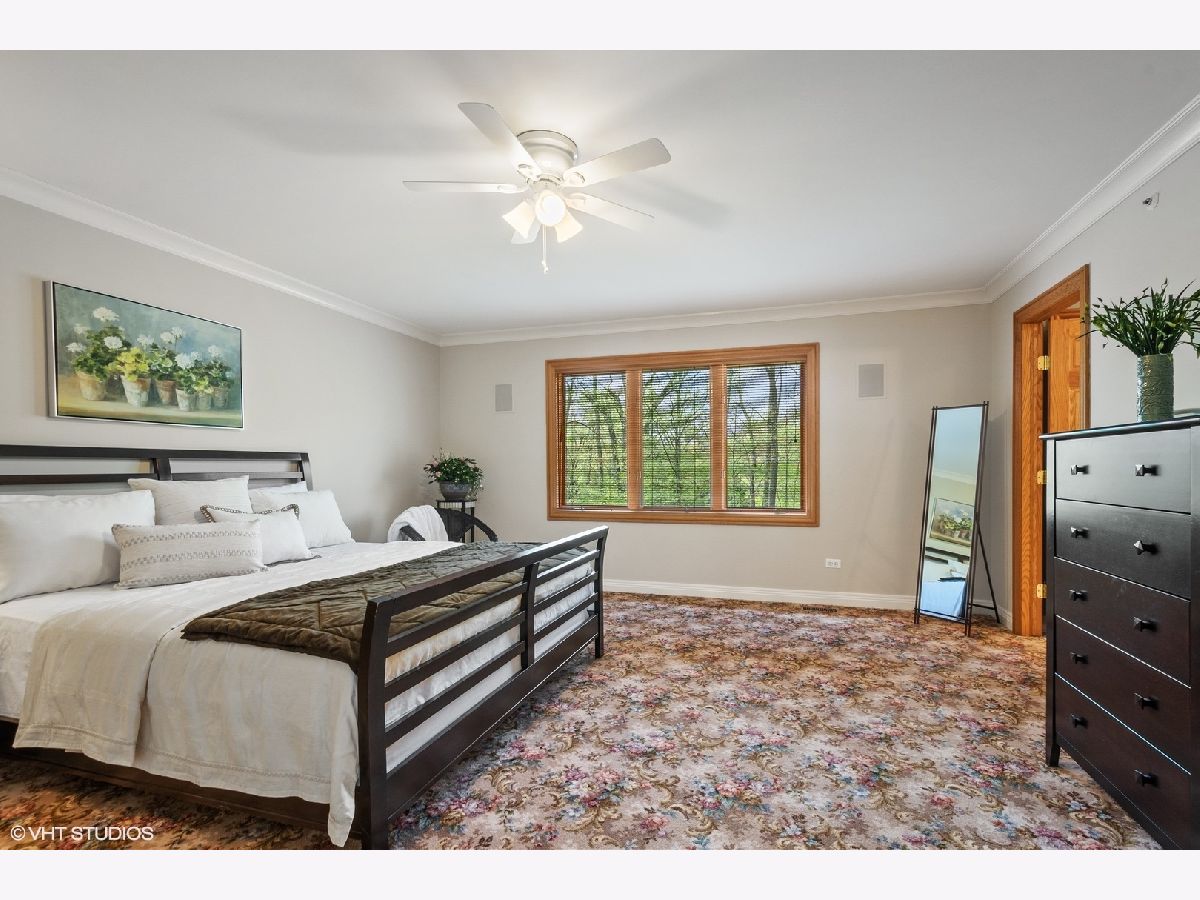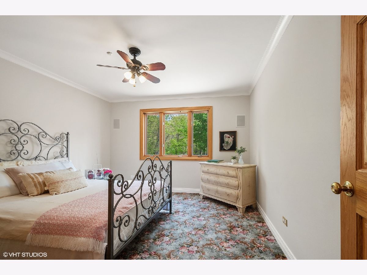 Welcome to this gorgeous 6 bedroom brick home, beautifully situated on a premium 1+ acre wooded lot, in the prestigious Royal Melbourne Subdivision. Features include arched entryway, amazing millwork throughout and lush landscaping. Gourmet kitchen has granite counter tops, beautiful white cabinetry, stainless steel appliances, breakfast bar & tile backsplash. The stunning family room has cathedral ceiling w/ exposed beams, beautiful wainscoting & walls of windows with wonderful wooded views. The first floor Primary Bedroom is luxurious w/ hardwood flooring, cove lighting, large sitting area, attached office and balcony. three additional spacious bedrooms and two full baths grace the upper level. The huge walk-out lower level has a formal theater room that provides true Cinema experience with three rows of seating. Also included in this amazing walkout are a recreation room with fireplace, game area with wet-bar/kitchenette area, a 5th bedroom, an exercise room or 6th bedroom, 2 full baths, and much more! Stevenson High School District!! This is truly a must see!!!