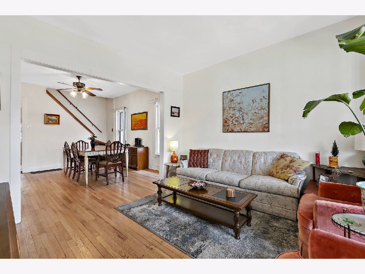 This classic frame, Chicago Bungalow in the desirable Mayfair neighborhood in Palmer elementary school district, will not disappoint. Great function in this home with 3 bedrooms on the main level with an updated full bathroom, separate living room/dining room, kitchen located at the rear with a walk in pantry and enclosed porches on the front and back. Refinished hardwood flooring in the living room, dining room and the 3 bedrooms, ceramic tile flooring in the kitchen and pantry. Full Bath features ceramic tile flooring and tub surround with built in storage nook. Upstairs is finished with 2 bedrooms complete with brand new carpeting. Basement is partially finished with a large rec room and half bathroom. There is a separate exterior entrance in the basement leading to the sizable backyard. 2 car garage was built in the last 10-15 years and has a party door that leads to the backyard that is fully fenced.