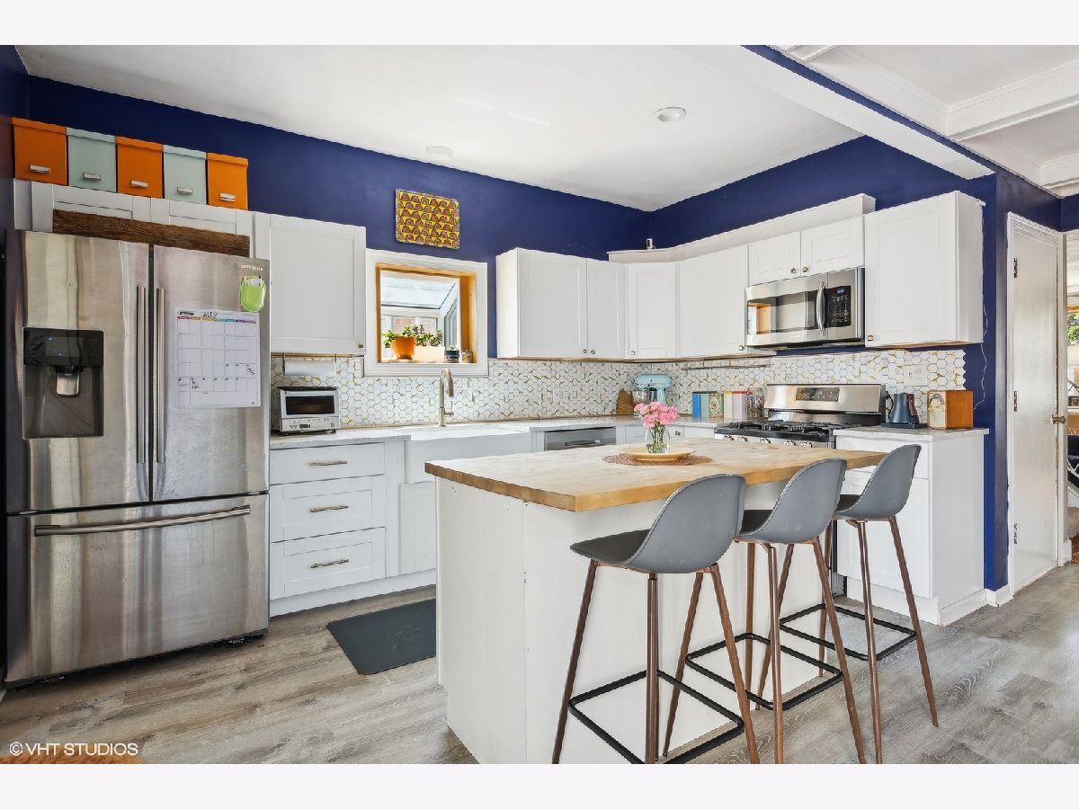 Lovely 3 bed | 3 bath home in Albany Park! Very inviting entry with living room and wood-burning fireplace. Further back, an office, full bath, an updated kitchen, and dining space. Very flexible flow: The lower level can alternatively be configured separately as an in-law suite as it already has another updated kitchen and laundry, and space on the main level currently used as office/pantry/dog room could alternatively be used as an extra bedroom! Nicely located and remodeled with many recent updates: both kitchens updated with new appliances (2017) / The main kitchen also has quartz countertops with an island. Two bedrooms and a full bathroom upstairs. All bathrooms were remodeled in 2022. Front and back decks refinished. The backyard features new outdoor landscaping with perennials and a large raised vegetable garden! Huge 27' x 22' garage. Sewer and water lines were replaced in 2022, and the basement was water-sealed with a Permaseal drain tile system and transferable lifetime warranty. Great location - walkable to brown line train, a few minutes drive to I-94, easy walks to Lawrence and Pulaski retail and dining. Multiple parks nearby, including Gompers. Easy living!