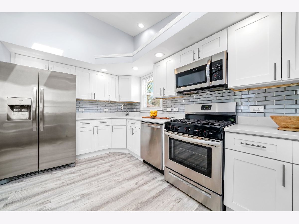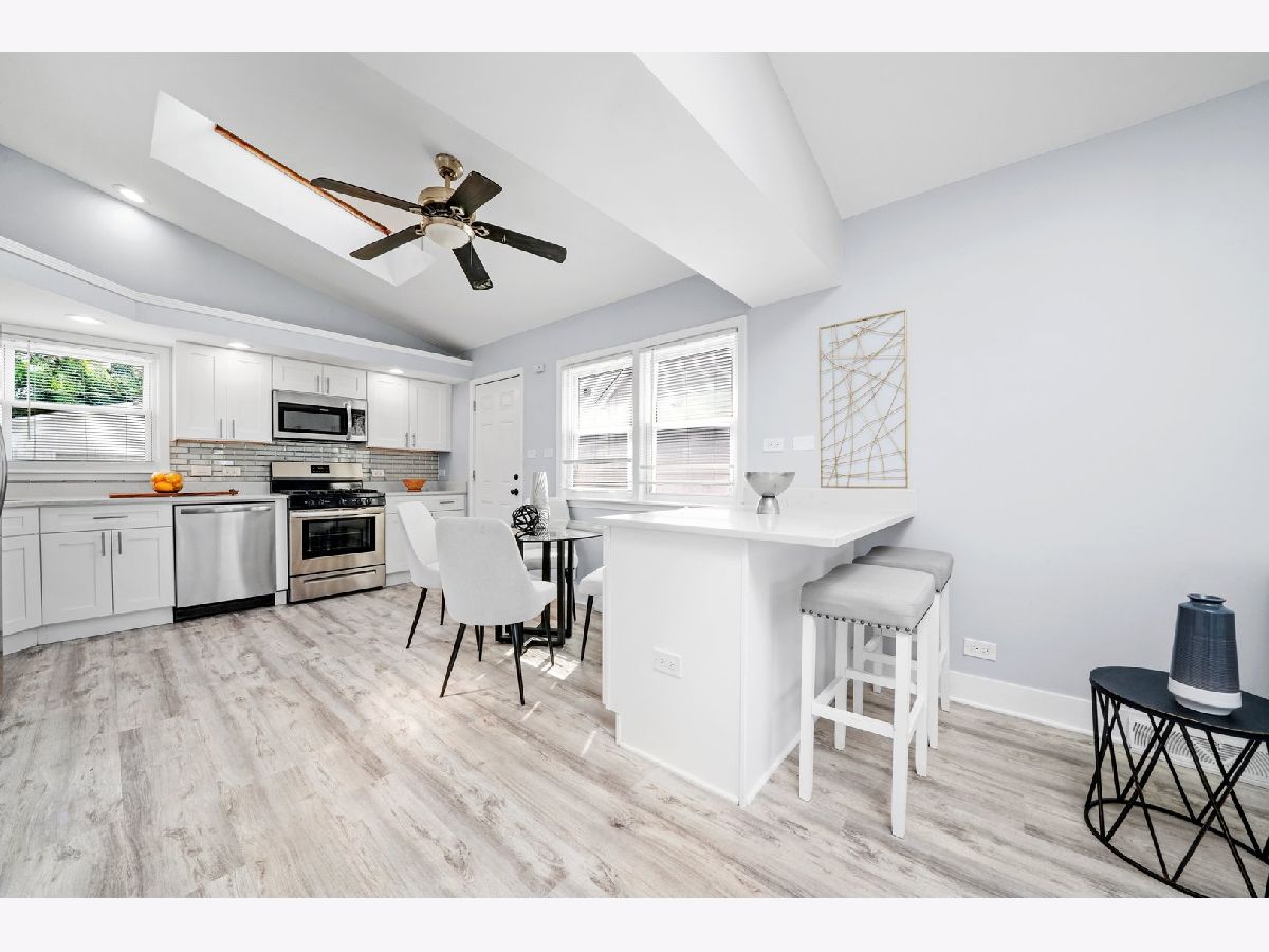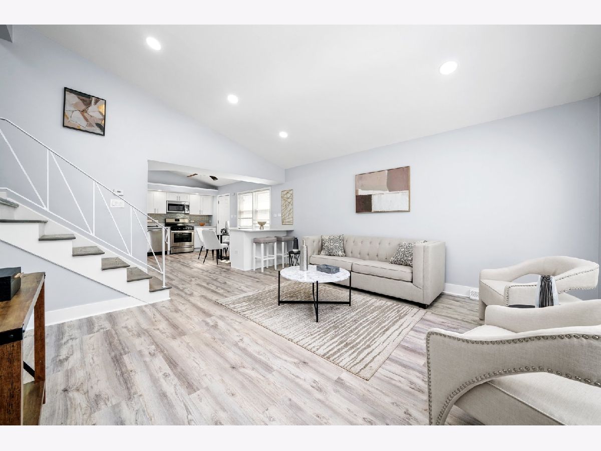 Gorgeous Fully Renovated 3Bed/1.1Bath Split-Level in Elmhurst! Motivated sellers and a great new price make this beautifully updated home a must-see! This sun-drenched split-level has been completely gutted and thoughtfully redesigned with modern living in mind. The stunning new kitchen features stainless steel appliances, quartz countertops with a peninsula, white shaker-style cabinetry, subway tile backsplash, and a skylight that fills the space with natural light. Enjoy new flooring throughout, fresh paint, soaring vaulted ceilings in the main living area, and brand-new windows throughout the home. Upstairs, you'll find three spacious bedrooms and a fully updated bathroom with designer tile, a new vanity, fixtures, and flooring. The lower level offers a large second living space, abundant natural light, a new full-size side-by-side washer and dryer with a utility sink, updated mechanicals, and a renovated half bath. Outside, relax or entertain in the fully fenced backyard with a paver patio, a storage shed, and a freshly painted heated 2.5-car garage. The home's exterior siding has also been freshly repainted. This truly is the perfect move-in ready home in a desirable Elmhurst location!