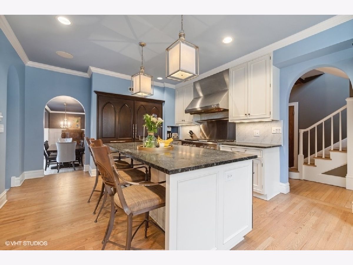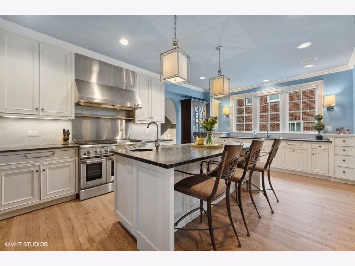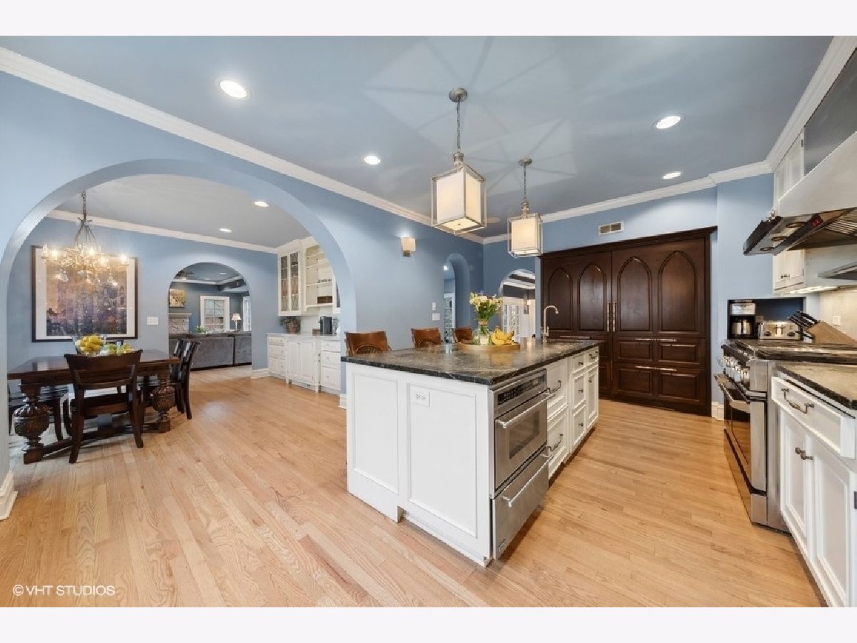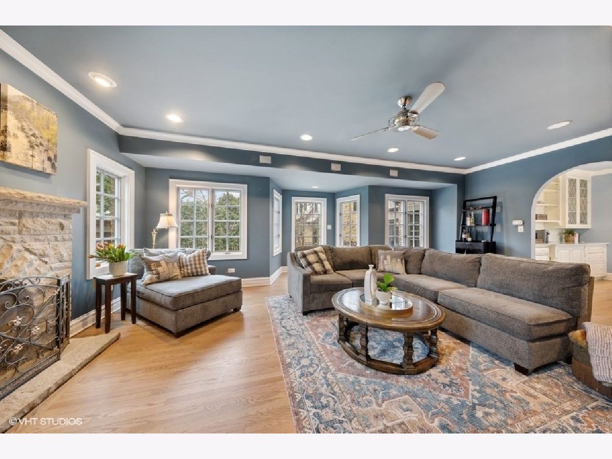 Sophisticated charm and character combined with modern luxury updates and layout create this deceivingly spacious home located on a premier block in the Forest Hills neighborhood of Western Springs. From the detailed weeping mortar to the timeless archways and leaded glass windows, the original integrity and design of this home has been preserved yet renovated with today's conveniences and style. Elegance greets you in the foyer before entering the sun soaked living room anchored by a classic brick and stone fireplace. Entertaining made easy with the dining room off the spectacular Chef's kitchen with breakfast island and separate eat-in nook. Built-in breakfront and window bench flank this dining area with an open floor plan. Unwind next to the fire in the family room while looking out the abundant windows on to the spectacular views of the large yard with custom rubber-mulch play area. The master suite has custom built-in cabinetry and vanity, a luxurious bathroom and walk-in closet. Three additional large bedrooms, two full bathrooms complete the upstairs. The lower level features custom builtins, a bedroom, full bathroom, office, play area, laundry, recreation room and a huge storage area. The custom wet bar features original glass panes from the living room, highlighting the home's history and attention to detail. Millwork, hardwood floors, mudroom with private entrance, top-end appliances and amenities, amazing space, impeccable design and in a prime location!