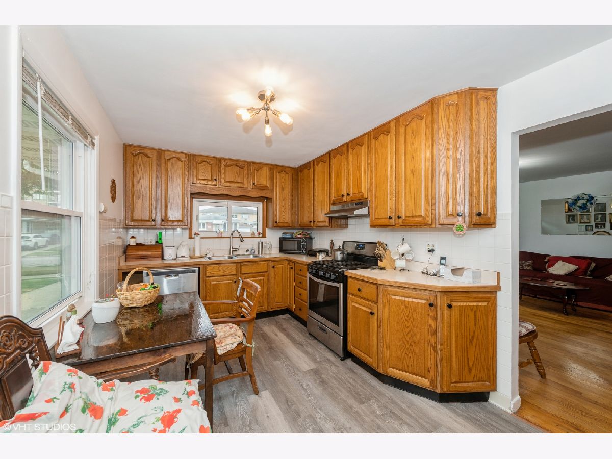 3 bedroom, 1,5 bath with addition in the back. Roof replaced in 2021. Siding & windows replaced in 2022. All stainless steel appliances replaced in 2022. Newer vinyl kitchen flooring. Updated half bathroom with new ceramic flooring and new vanity. Large garage has new siding & trims. Long side drive. New French door leading to porch addition. Upgraded light fixtures through out. Norridge Park district directly behind the house. Handicapped accessible. Move in ready.