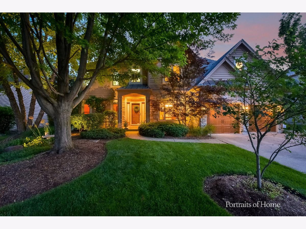 IMPRESSIVE Oakhurst North home with 5 bedrooms and 3 full baths and a large loft above the 2-story family room. Enjoy a private, fenced lot with amazing views of the pond from all rear rooms of the home, including the sensational sunroom. Two-story foyer flanked by living and dining room spaces with views straight back to a family room with floor-to-ceiling stone fireplace. Well-appointed granite and stainless gourmet kitchen with Viking oven and hood, spacious island and generous size walk-in pantry plus eating area. Just off the eating area is the sunroom with impressive views of the yard, enjoy the lush landscape and perennials throughout the lot. Main level has 5th bedroom and adjacent full bath. The upper level features a large loft with views down into the 2-story family room. Primary suite offers a sizeable bedroom with tray ceiling and balcony, spa-like bath with vaulted ceiling, separated vanities, and an amazing walk-in closet. 3 more spacious upper-level bedrooms with ample closet space and an updated hall bath. The news in this home include: replaced wood deck (2016), water heater, roof, gutters and skylights (2017), furnace, AC, fence, all new windows and garage doors with smart controller (2019), all exterior freshly painted, garbage disposal, all toilets, bath/kitchen/utility room faucets, upgraded cabinets and lighting in upper-level baths, smart thermostat (2021), replaced sump pump, installed smart irrigation controller (2022), replaced kitchen dishwasher and new interior paint in 5 rooms (2022). Pool and clubhouse community included with assessments. Award winning District 204 schools, minutes from shopping and the train. Not only is this a high-quality home with impressive upgrades, it is a 10+ with its lot location alone...don't miss out!