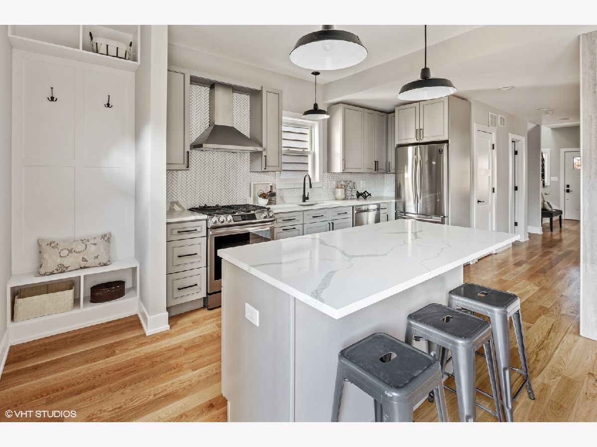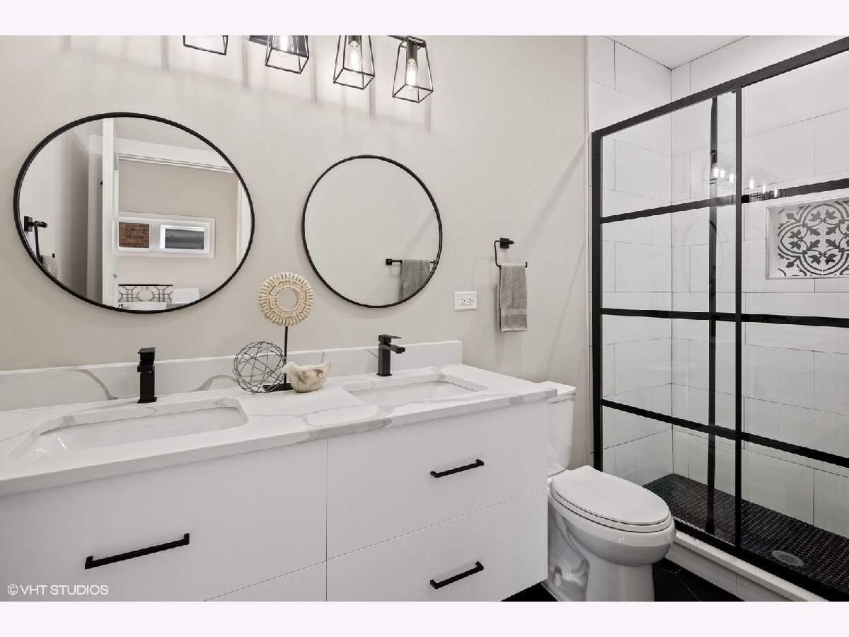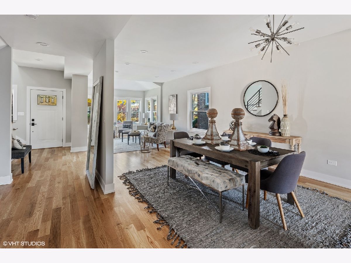 Spacious, sun drenched and spectacular, this completely rehabbed, Queen Anne Bungalow situated in the highly sought-after Ravenswood Manor neighborhood. A perfect marriage of flawless modern design, with a warm palette of natural materials, this home has been meticulously planned and constructed with ease of living and comfort in mind. Unique high-end finishes abound, including James Hardie Board siding, energy efficient foam insulation, tankless Water Heater, and all new: roof, Scandinavian inspired wider-plank Oak flooring throughout living/bedroom areas, sharp black fixtures and hardware, Porcelain/Mosaic tiled Baths, zoned HVAC, plumbing & water service, thermal windows, electric (200 amp) drain tiles and sump pump in LL. Welcoming front & foyers boasts quaint built-in benches. Sharp, beautiful Open staircase. Main level hosts all gracious and flowing living and entertaining space, designer lighting throughout, remote controlled Double Sided Gas FPLC, enjoyable from both Dining & Great Rooms. Fresh Grey Island Kitchen with Quartz Countertops, sleek Samsung Stainless Steel Appliances, & unique herringbone backsplash. Easy access to dramatic stylish Powder Room. Sun-filled family room leads through sliding glass doors to the fabulous outdoor 18 x 10 deck, overlooking manicured lawn. Dramatic upper level floor plan with vaulted ceilings, skylights, a spacious Master En-suite with spa-like bath, and three closets, + two additional large Bedrooms + Guest Bath. 8' Lower Level offers additional Family Room with, spacious Guest BR, Full BA, Laundry & Utility Room/Storage. New two car garage with 1 additional parking space on side pad. Awesome location with proximity to River Park and bike path, Welles and Horner parks, short walk to the Francisco Brown Line, Harvestime Foods, and all great restaurants and amenities in Lincoln Square. You're going to love this must see home!