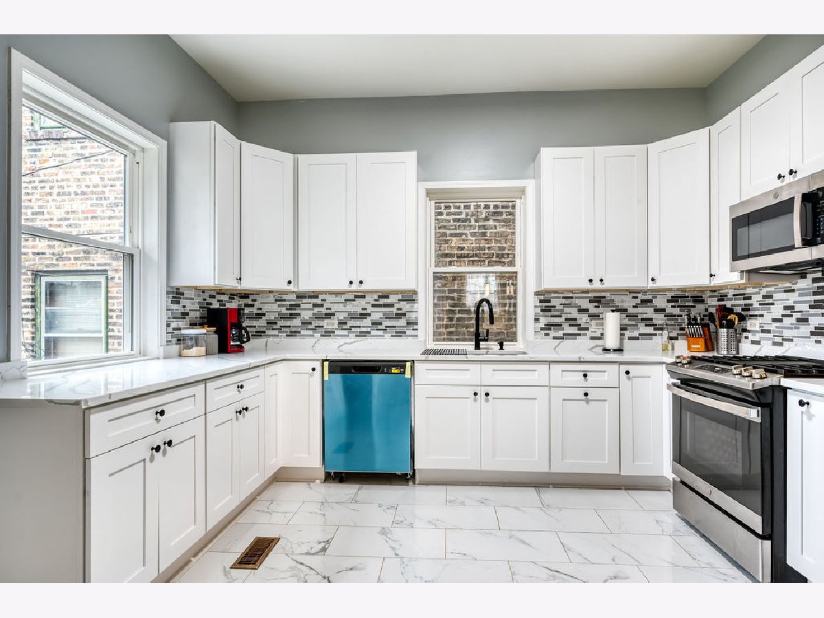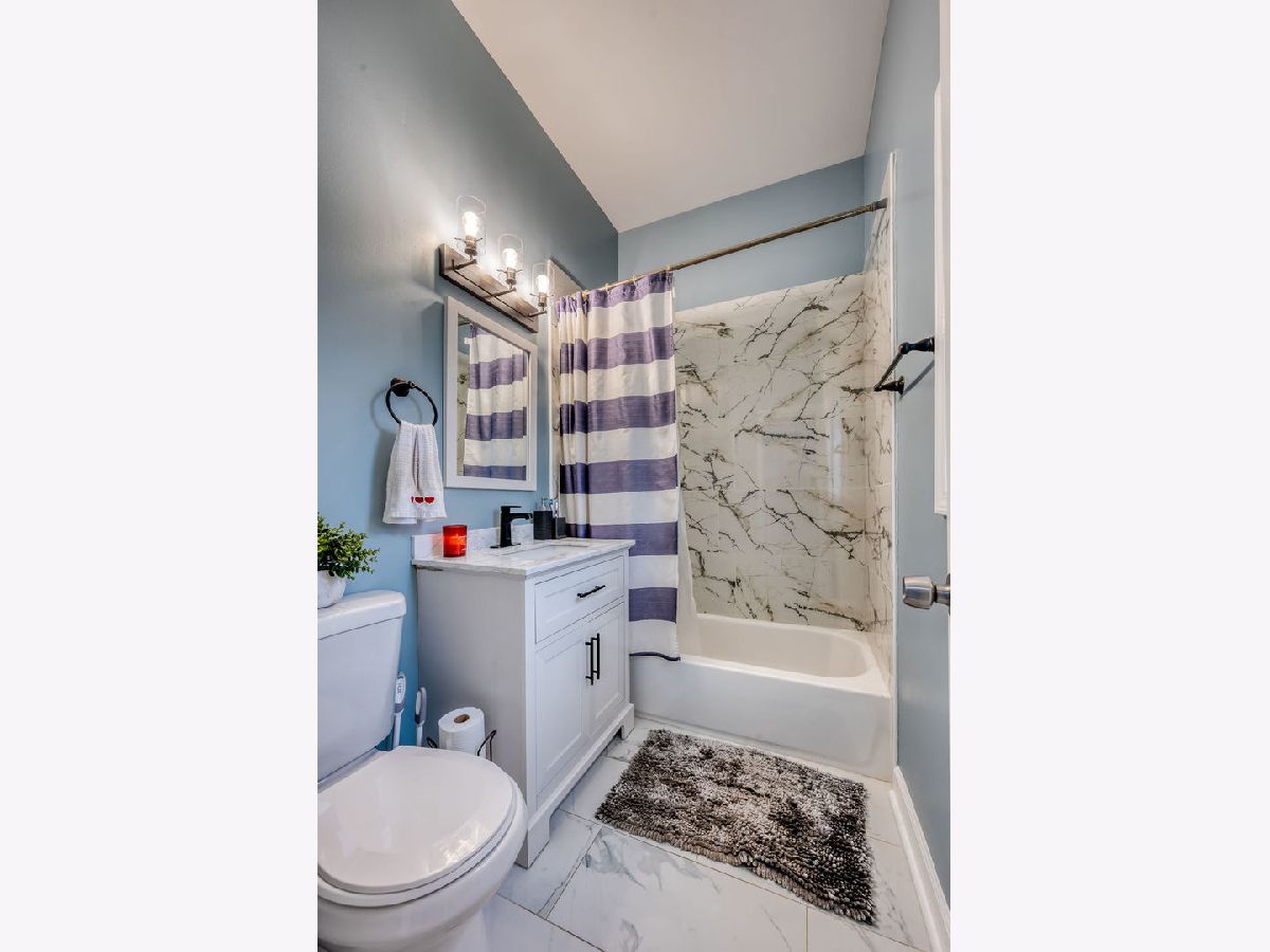 Welcome to the south Austin neighborhood, this home is conveniently located just a block away from the green light CTA L train station at Cicero Ave and Lake St. Property has been updated throughout during the last year featuring, brand new eat-in kitchen with 42' cabinets, quartz countertops and stainless steel appliances. 2 brand new baths with porcelain tile. Fist floor features 2 good size bedrooms plus a smaller room that is being used as an office. Second level has separate entrance and can be divided if needed with the potential to be used as an 4-2-1 unit. Full semi-finished basement with front and rear entrance. Some of the other updates/features include. hardwood floors all throughout, new 2 story porch, 2.5 car garage with overhung, fencing all around the property, HVAC, windows, siding, roof. Great property for the large family or extended living if needed.