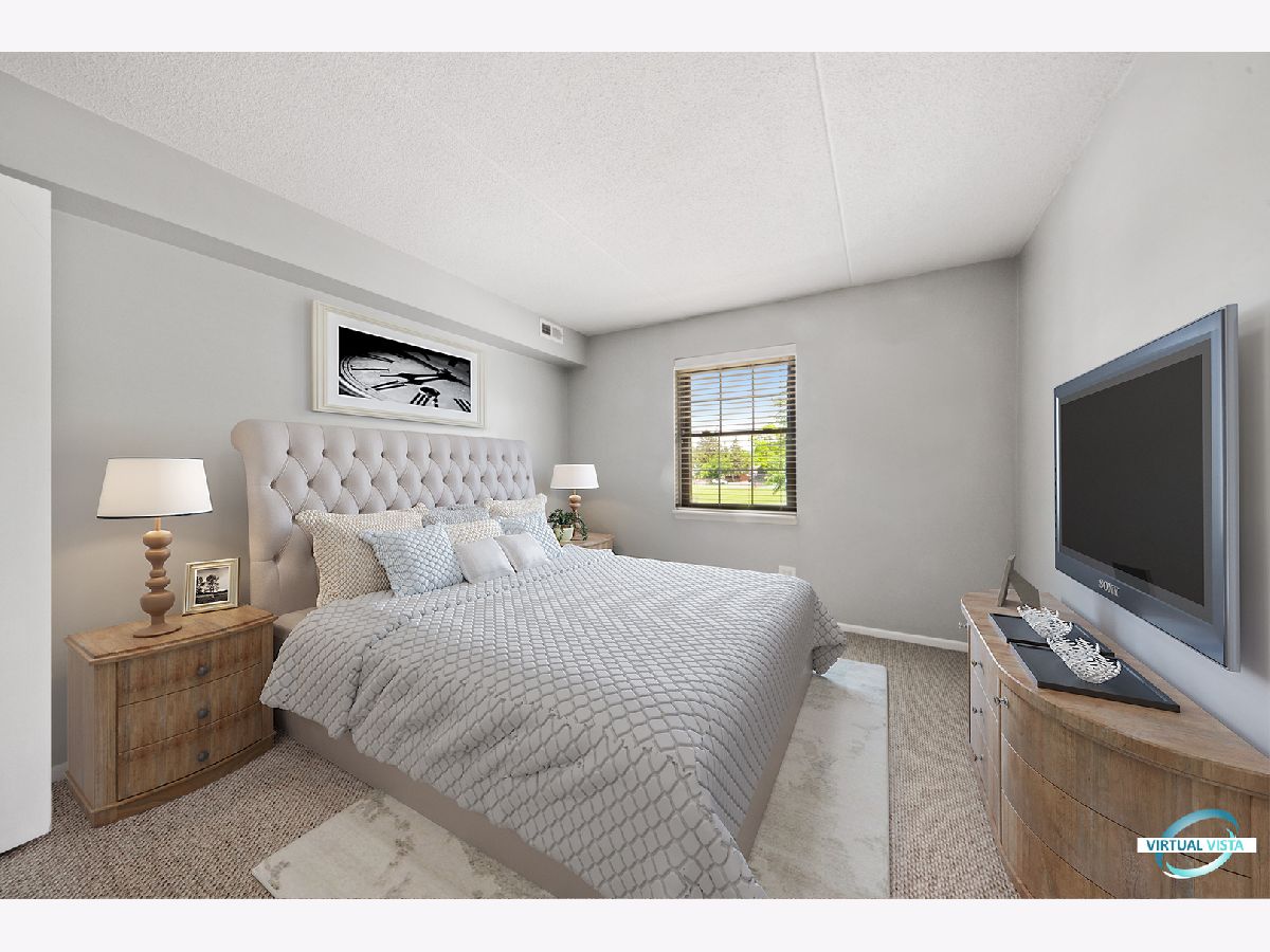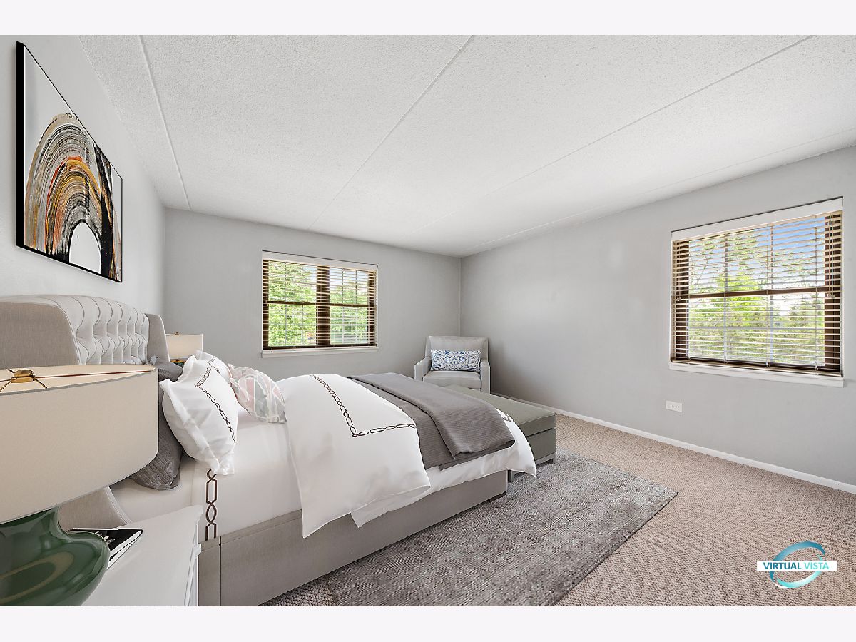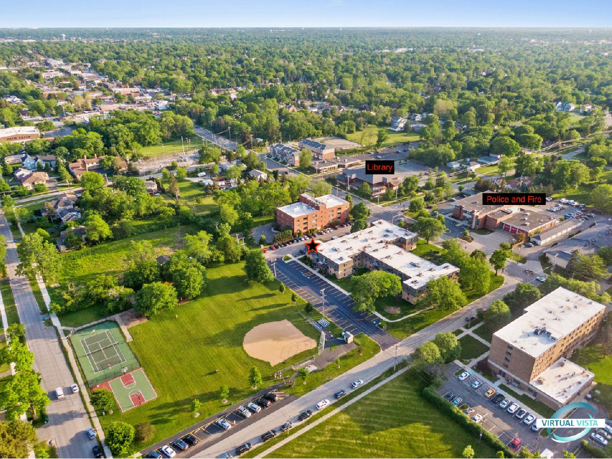 Welcome to Parkwood Condominiums. RARELY AVAILABLE SECOND FLOOR CORNER UNIT. Gorgeous views from this updated 2 bedroom, 2 bath corner unit with balcony overlooking the park. Bright Eastern exposure condo with neutral colors throughout to fit any style. Spacious living room/dining room perfect for entertaining guests. Kitchen boasts granite countertops with glass tile backsplash and lots of cabinet space. Large master suite with private bath features dual sinks with granite countertops and separate shower. Ample sized second bedroom with closet organizer. Updated hall bath. Convenient same floor social/lounge room and laundry room. Elevator access. Well maintained building with landscaping and pond. Well constructed of brick and Flexicore. Across from Library, Police and Fire Dept. Just a few blocks to train, shopping, and restaurants. Ample parking in private lot. Easy access to expressways. Make an appt. today!