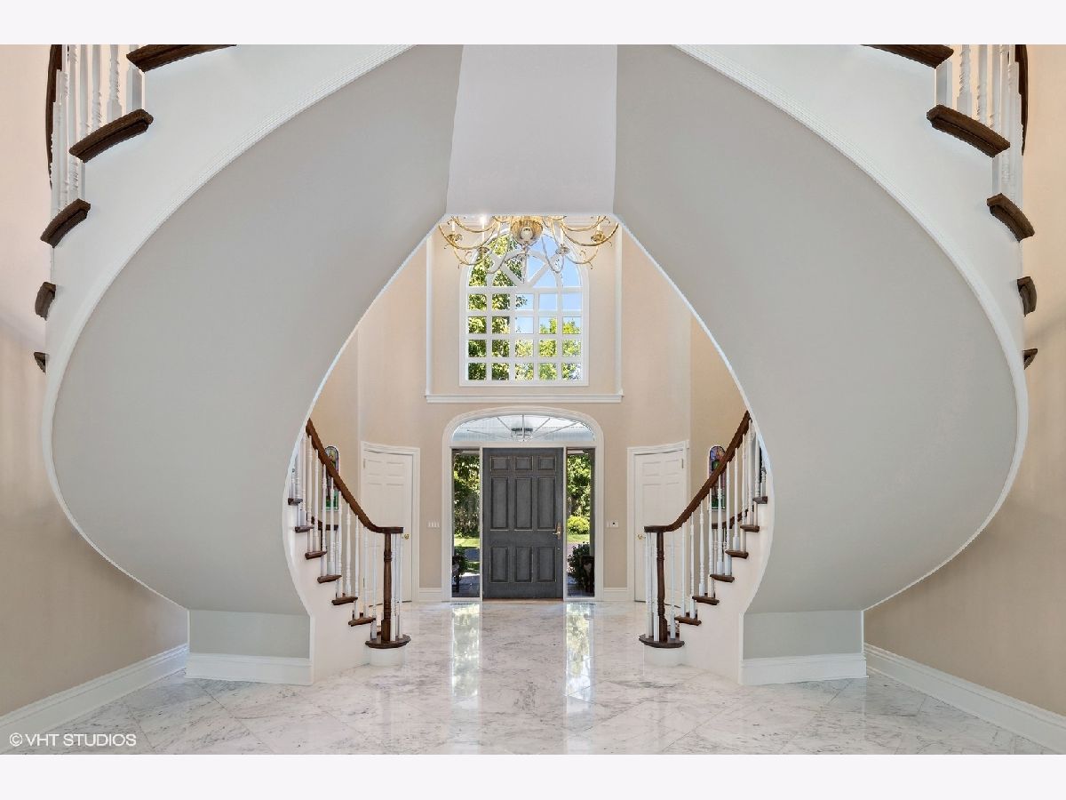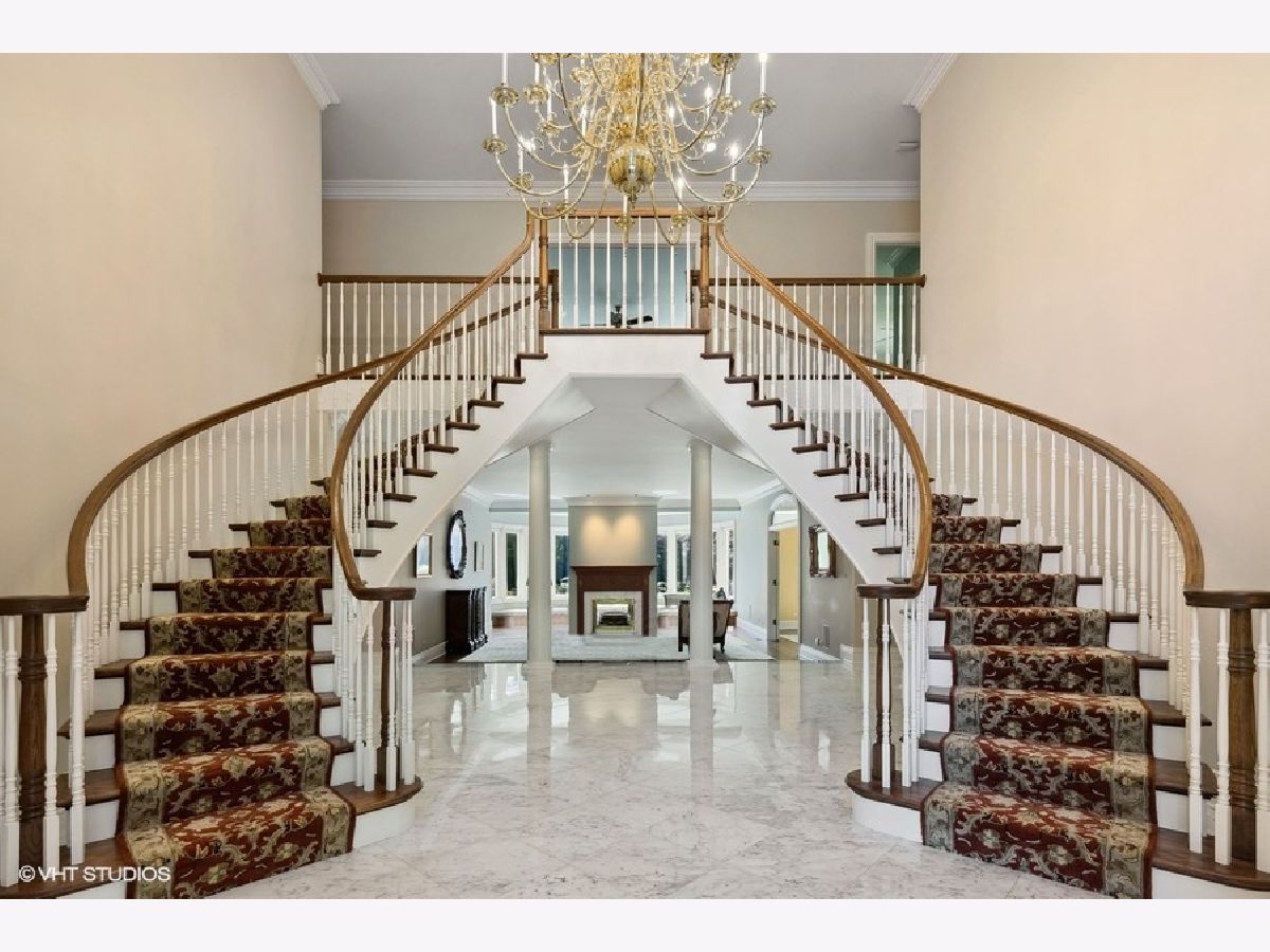 Tucked behind a gated entrance and along a scenic driveway, this magnificent Georgian brick estate spans nearly 4 acres in the heart of Lake Forest. Offering unparalleled privacy, the fully fenced and gated grounds are enhanced by lush gardens, creating a tranquil, in-town country retreat. The moment you enter, you're greeted by a breathtaking double curved staircase, a striking feature that speaks to the quality and grandeur of this home. The sunken main living room, bathed in natural light, boasts sweeping 180-degree views of the meticulously landscaped gardens and bluestone patio. The spacious dining room flows seamlessly into the more casual wing of the residence, which includes a chef's kitchen, a family room with vaulted ceiling, and a sunroom-ideal for both grand entertaining and cozy nights by the fireplace. On the ground floor, the west wing features three versatile offices or libraries, providing a wealth of possibilities, while the east wing offers a separate mudroom entrance, laundry room, exercise room with a full bath (complete with a steam shower), and additional flex space. The expansive four-car garage is outfitted with smart system openers, new insulated doors, and cameras for added security. Upstairs, the second floor is accessed by either of two staircases and leads to a wide main hall that connects to the Primary Suite and four luxurious ensuite bedrooms. The Primary Suite is a private sanctuary with a wood-burning fireplace, a private balcony, two walk-in closets, and a spa-like bath. The third floor adds even more living space with three large bedrooms, two full bathrooms, ample storage, and a soundproof, well-ventilated cigar room. With a total usable square footage nearing 10,000 square feet, and an additional 3,000+ square feet in the basement, this home offers endless possibilities. The basement is home to vast storage areas, a dedicated craft room, recreational space, and a secure storage room. Modern upgrades are plentiful, including a 600-amp electrical service, designed to accommodate a pool and pool house, along with a large generator for peace of mind. The newly installed front circle driveway and walkways are heated by a dual-boiler system, ensuring comfort year-round. For those with a green thumb, the property features 12 raised beds for organic gardening, each with its own water source, as well as two registered butterfly gardens. A separate fire-pit area, hot tub, and expansive manicured lawn invite relaxation and outdoor enjoyment. If you're searching for a home that combines privacy, security, grandeur, and the serene atmosphere of the countryside-all within walking distance of downtown Lake Forest-this is the residence you've been waiting for.