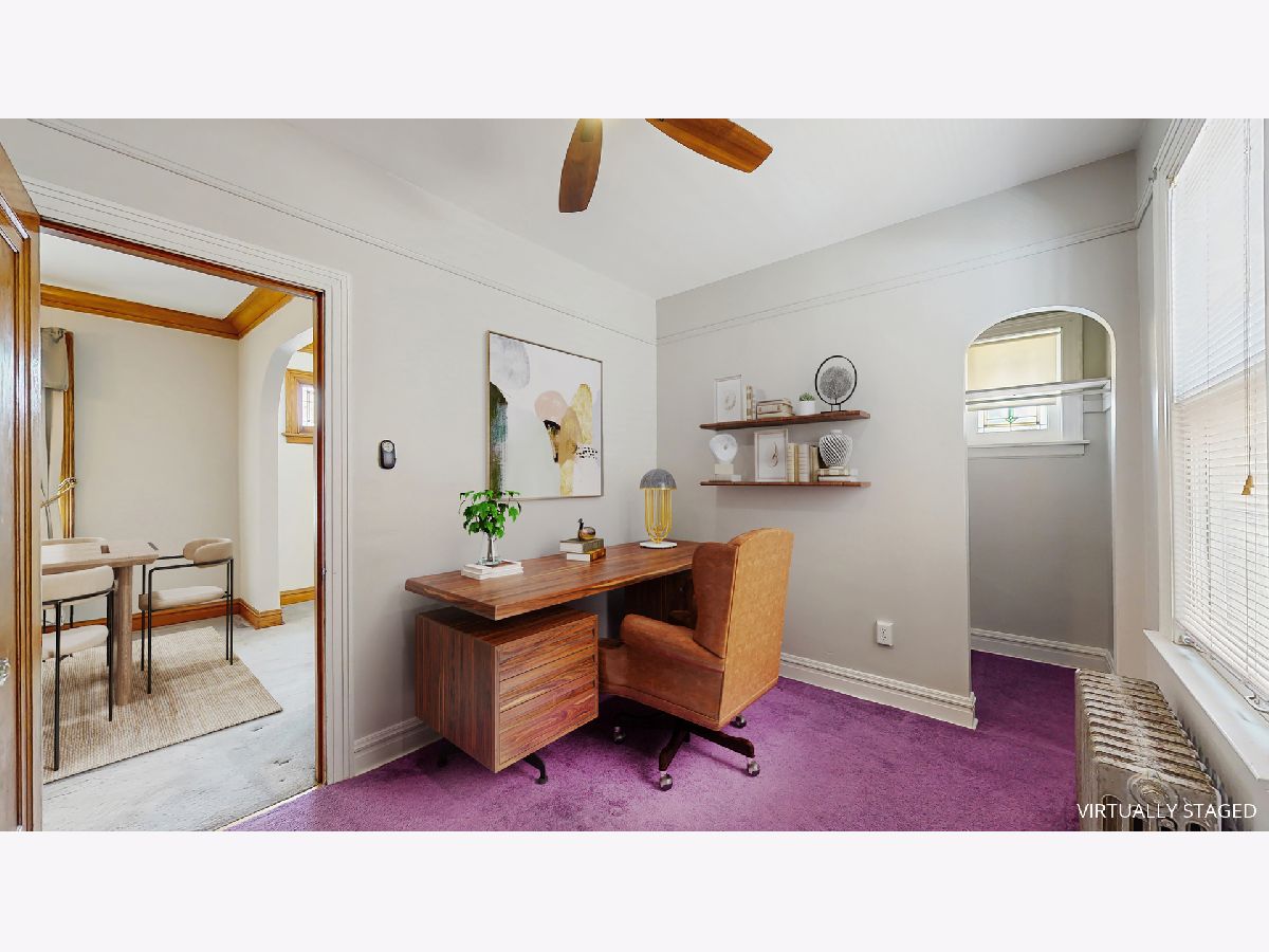 Welcome to this charming bungalow located on a quiet tree lined street in Archer Heights! Upon entering, you will be greeted with a bright living room featuring beautiful two stained glass windows that flood the home with natural light creating a calm & tranquil atmosphere. A dedicated dining area and a nice size kitchen that has the potential for customizing to your perfect kitchen! Follow the hallway that seamlessly connects three bedrooms that provide nice living quarters or have unlimited options to fit your needs including a home office, game room, or guest room. Hardwood floors extend throughout the main living areas under the freshly shampooed carpet. The unfinished basement provides additional space for all kinds of activities and storage. The attic allows for tons of extra storage options also! Outside, the detached garage comfortably fits 1 vehicle and can still accommodate a work space and storage. The backyard is the perfect place to create your own personal entertaining oasis or indulge in relaxation! This home is conveniently located nearby restaurants, shopping, expressways, public transportation, and parks. The ideal starter home that is full of potential or move in ready and perfect for your downsizing needs.