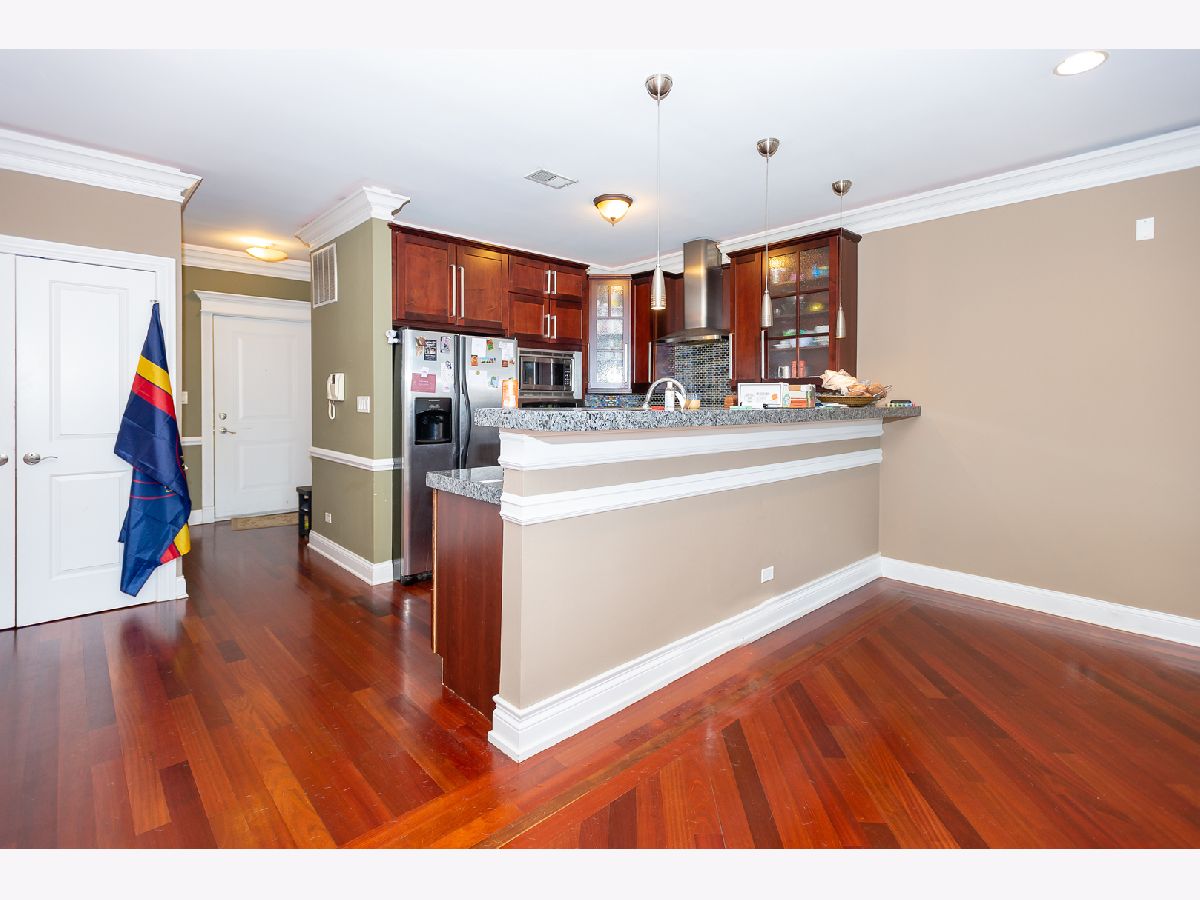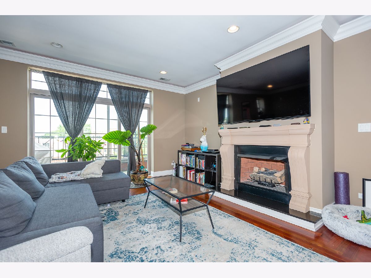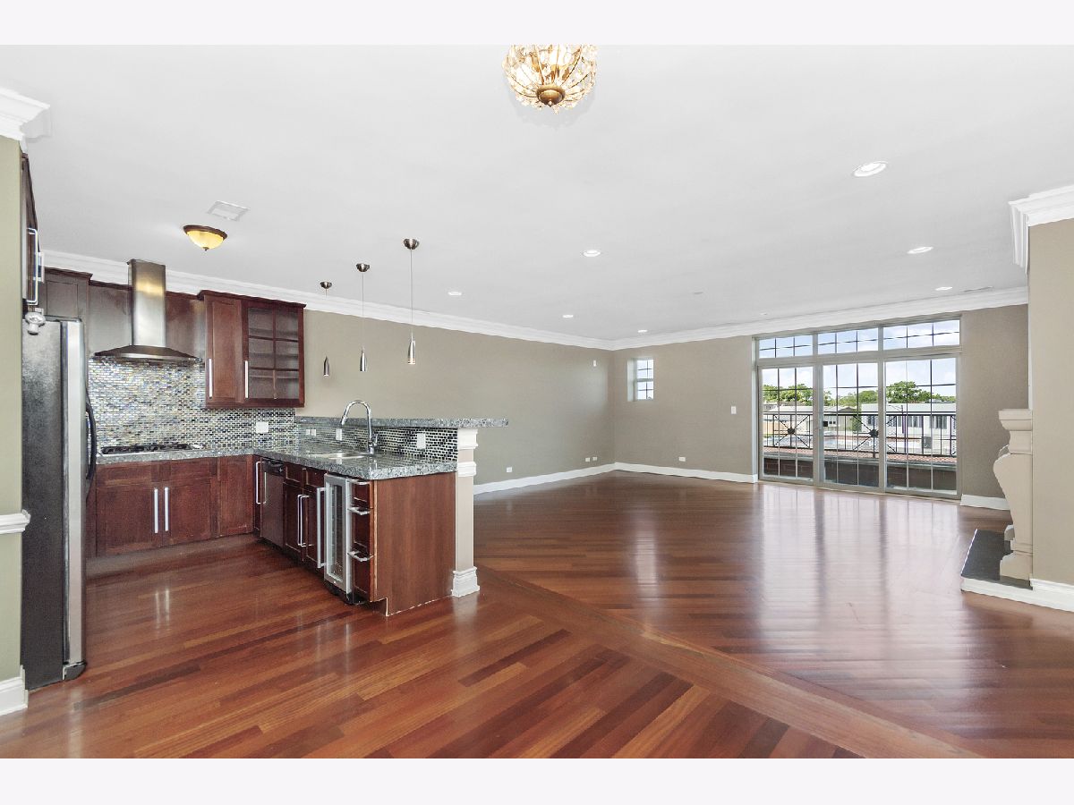 Beautify spacious top floor 2 bed 2 bath in the fantastic Mayfair location with parking. The finishes include striking cherry floor throughout, a gas fireplace, a balcony that extends the width of the condo and can be accessed from the living room or the primary bedroom. The open floorplan and huge living area make for the perfect layout. The kitchen features 42" cabinets, granite counters, Stainless appliances, and a wine fridge. The primary bedroom is quite large with double closets. The primary bath has a double vanity sink, large shower stall with body sprays and rain shower as well as a two person whirlpool tub. This is a beautifully built brink and limestone building with an elevator. A deeded parking spot is included in the price! Lovely Mayfair location walking distance to the Blue Line, Metra, X-Sport and Mayfair Park. It is also very close to 90/94 making this location very convenient.