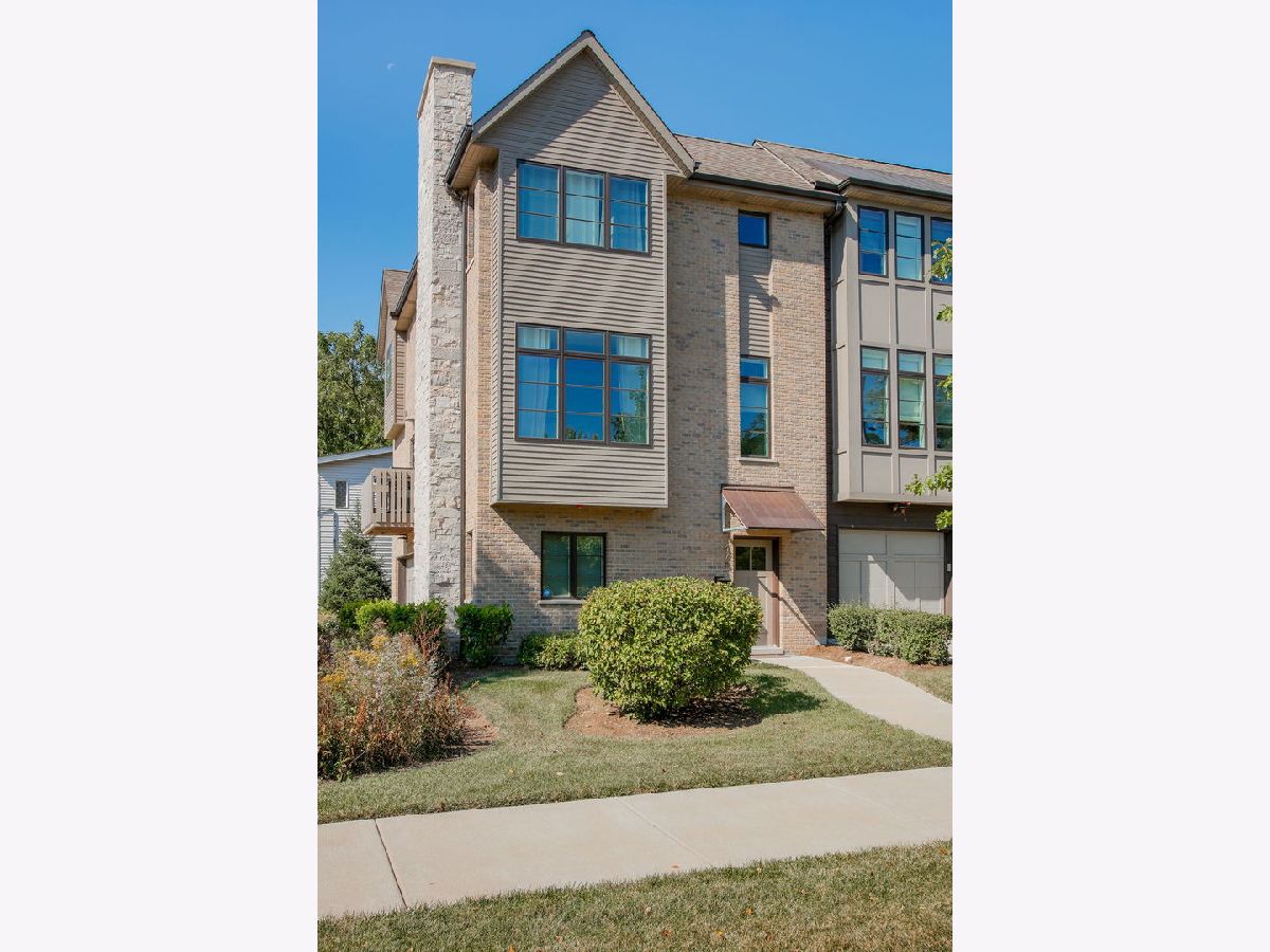 Enjoy contemporary living in this elegant townhome just two blocks from downtown Glen Ellyn, train, dining and shopping! Three levels of living space feature premium fixtures and finishes, spacious rooms and generous light from oversized windows. The airy main level has 9 foot ceilings and hardwood floors in an open-concept layout. The cook's kitchen includes quartz counters, 'soft-close' cabinets (many with pull-out shelves), herringbone-patterned glass tile backsplash, stainless steel appliance package and 7 foot seatable island. The kitchen opens to the dining and living rooms, creating generous room for gathering and entertaining. A private balcony, powder room and laundry room complete the main level. The upper floor includes the primary bedroom with luxurious ensuite bath and WIC, two secondary bedrooms with double door closets and an elegant hall bath. The entry level has a family room with French doors for privacy (also well-suited as office, playroom or exercise room), and a large foyer/mudroom with direct access from both the 2-car garage and front entry. The brick, stone and copper exterior is surrounded by picturesque landscaping which is professionally maintained in all seasons. So many luxuries and conveniences!
