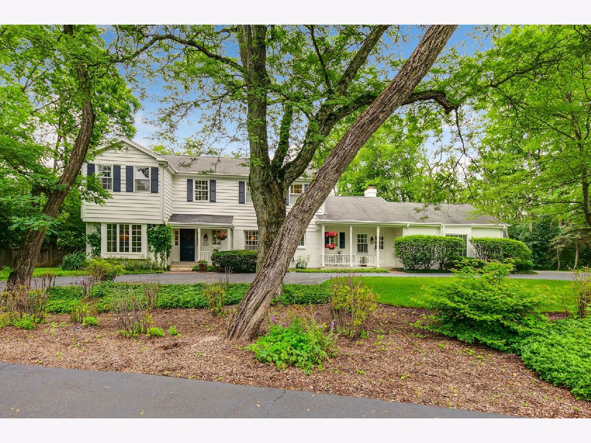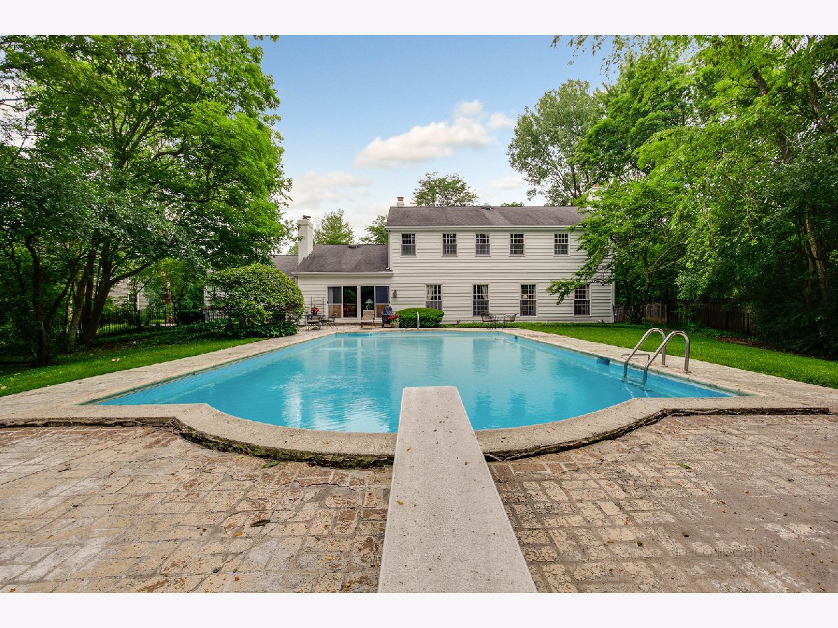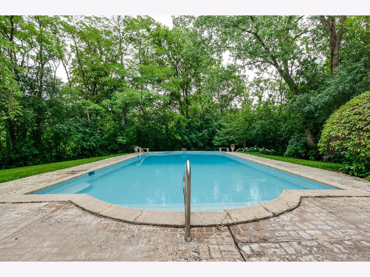 Graciously proportioned and beautifully maintained 3,602 sq ft Colonial, perfectly sited on a prime 1.14 acre cul-de-sac lot with circular driveway. The property has a backdrop of mature trees and woods, merely one mile south of downtown Lake Forest (sidewalks to town). The first floor features 9' ceilings, a wide foyer, large sun-drenched rooms, oak hardwood flooring, crown moldings, two substantial fireplaces (symmetricallly placed in living room and family room), a quiet office that is nicely separated from the main living area and two powder rooms (formal and informal). The family room has an impressive beamed and vaulted ceiling, built-in bookcases and wet bar. It is a wonderful gathering place for family and friends! A "wall of windows" sliding glass door provides easy access to the rear yard. The sunny white kitchen with tile flooring has a raised ceiling and large eating area. The 1st floor laundry/mud room is accessible from the kitchen hallway, the attached garage and side front porch. From the foyer, a broad staircase transports you to the second level which also has rich oak hardwood flooring. The spacious primary bedroom suite offers tree-top views, a romantic fireplace, dressing room, walk-in closet and full bathroom. The additional bedrooms are generous in size and share a hallway bathroom. Enjoy the nicely finished full basement! It boasts a huge recreation room, media room and two large unfinished storage areas. The built-in outdoor pool offers summer fun and has a maximum depth of 9'. It was opened and inspected this season. Two pumps are new. The pool and decking are being sold "as is". One may want to refurbish them for a more pristine look, or enjoy as they are. This is a rare and wonderful opportunity to own a pristine and attractive home on 1.14 acres near all of the amenities and conveniences that Lake Forest has to offer.