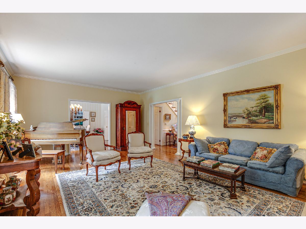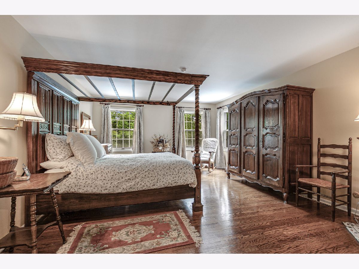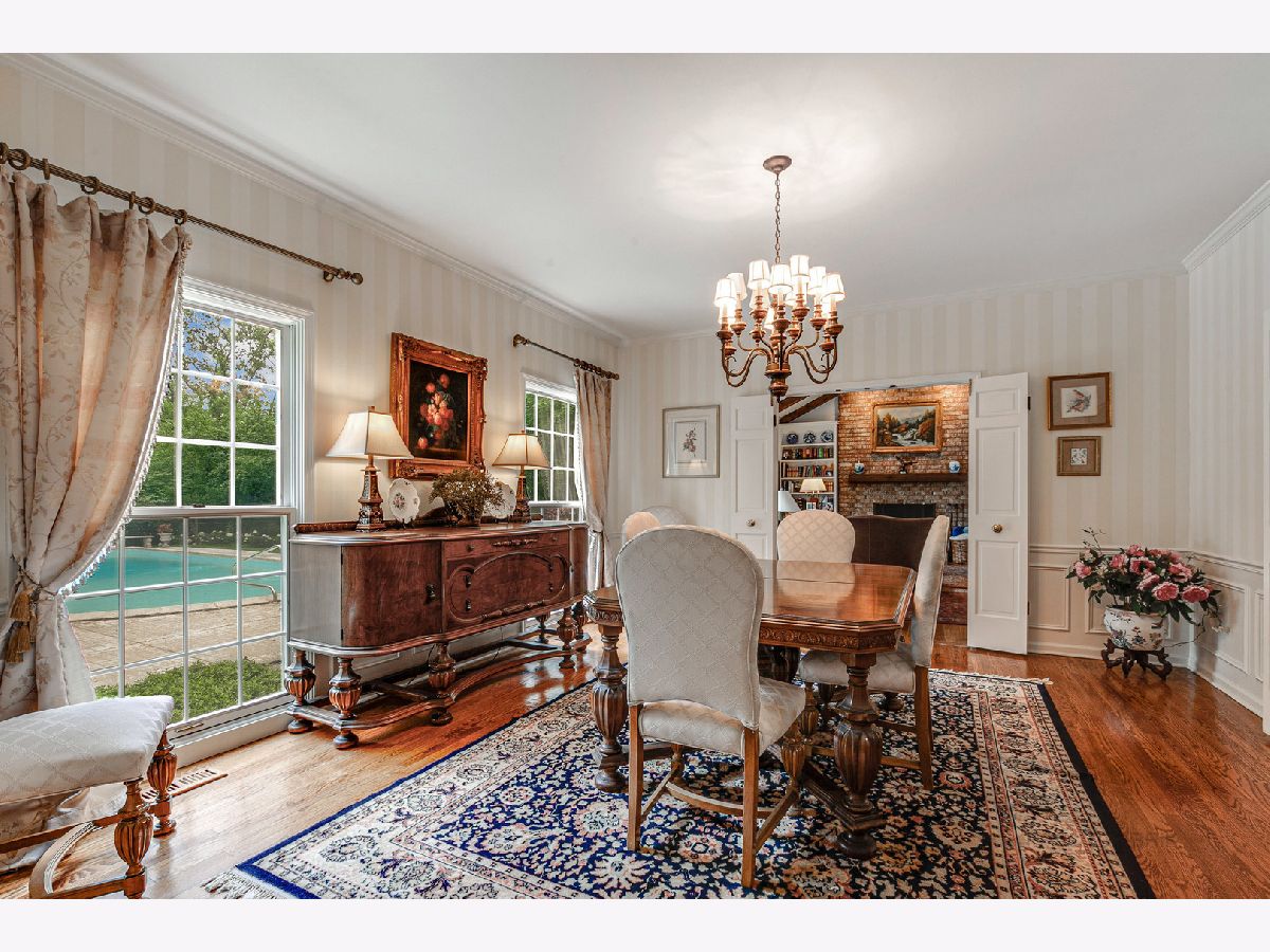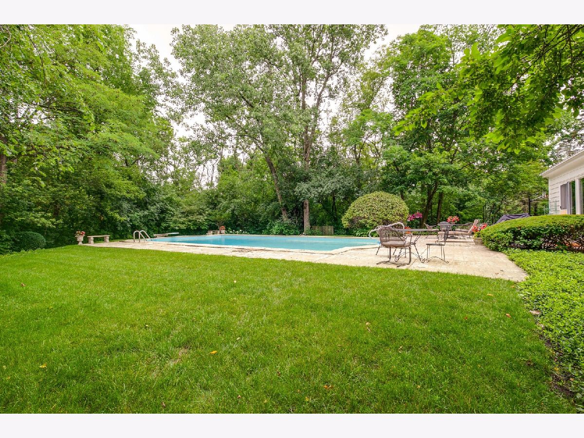 Graciously proportioned and beautifully maintained 3,602 sq ft Colonial, perfectly sited on a prime 1.14 acre cul-de-sac lot with circular driveway. The property has a backdrop of mature trees and woods, merely one mile south of downtown Lake Forest (sidewalks to town). The first floor features 9' ceilings, a wide foyer, large sun-drenched rooms, oak hardwood flooring, crown moldings, two substantial fireplaces (symmetricallly placed in living room and family room), a quiet office that is nicely separated from the main living area and two powder rooms (formal and informal). The family room has an impressive beamed and vaulted ceiling, built-in bookcases and wet bar. It is a wonderful gathering place for family and friends! A "wall of windows" sliding glass door provides easy access to the rear yard. The sunny white kitchen with tile flooring has a raised ceiling and large eating area. The 1st floor laundry/mud room is accessible from the kitchen hallway, the attached garage and side front porch. From the foyer, a broad staircase transports you to the second level which also has rich oak hardwood flooring. The spacious primary bedroom suite offers tree-top views, a romantic fireplace, dressing room, walk-in closet and full bathroom. The additional bedrooms are generous in size and share a hallway bathroom. Enjoy the nicely finished full basement! It boasts a huge recreation room, media room and two large unfinished storage areas. The built-in outdoor pool offers summer fun and has a maximum depth of 9'. It was opened and inspected this season. Two pumps are new. The pool and decking are being sold "as is". One may want to refurbish them for a more pristine look, or enjoy as they are. This is a rare and wonderful opportunity to own a pristine and attractive home on 1.14 acres near all of the amenities and conveniences that Lake Forest has to offer.