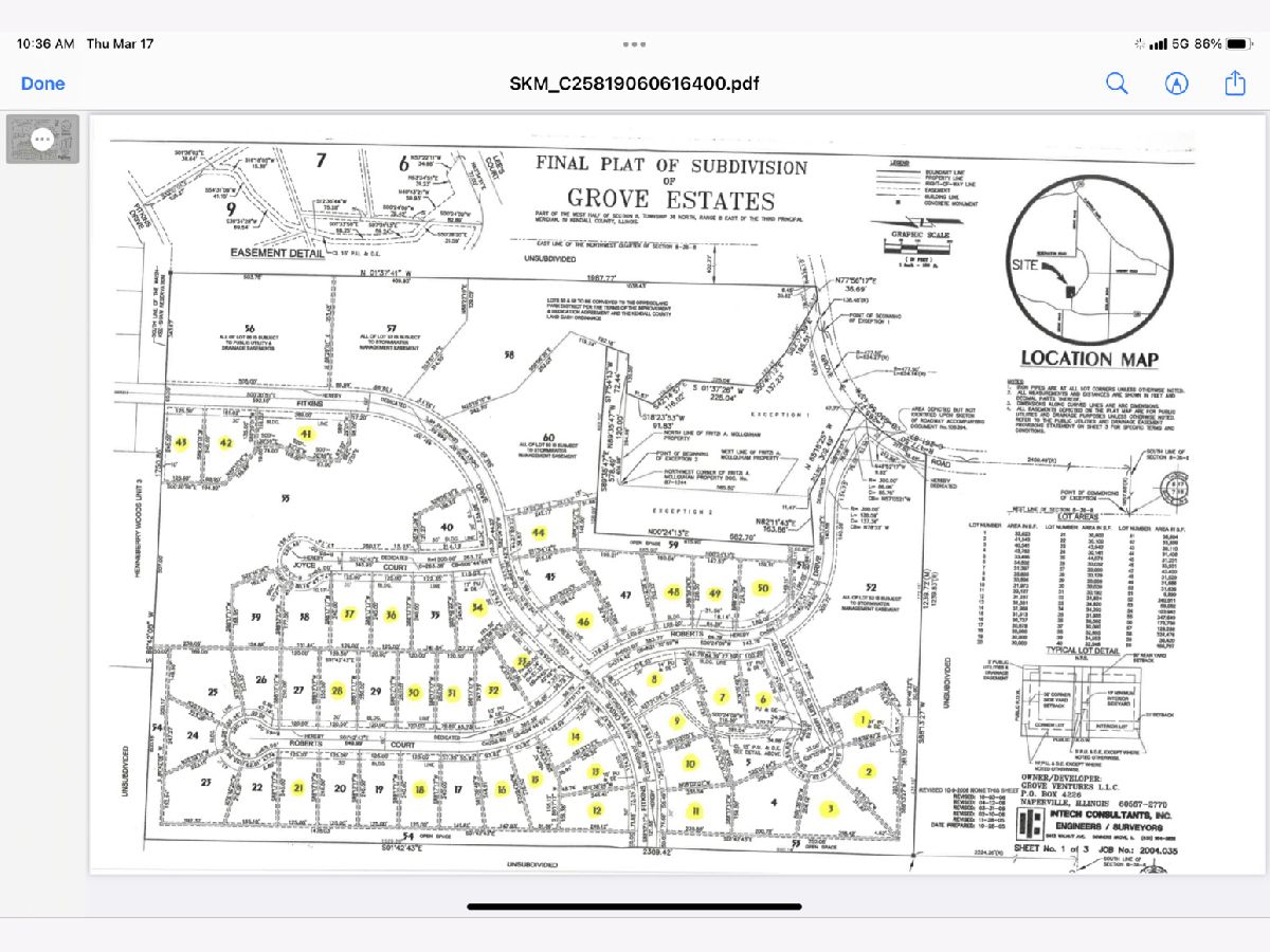 Rarely available walk out basement estate sized lot in the Oswego school district! Come build your custom home here is prestigious Grove Estates. Lot 1 is a Large 2/3rds acre wooded homesite which backs to open space offering you additional privacy and enjoyment. Use your own custom builder or enlist the services of our featured builder. Come see for yourself this special place where fine custom crafted homes come in a wide price range. Grove Estates: Close to town, Closer to nature....