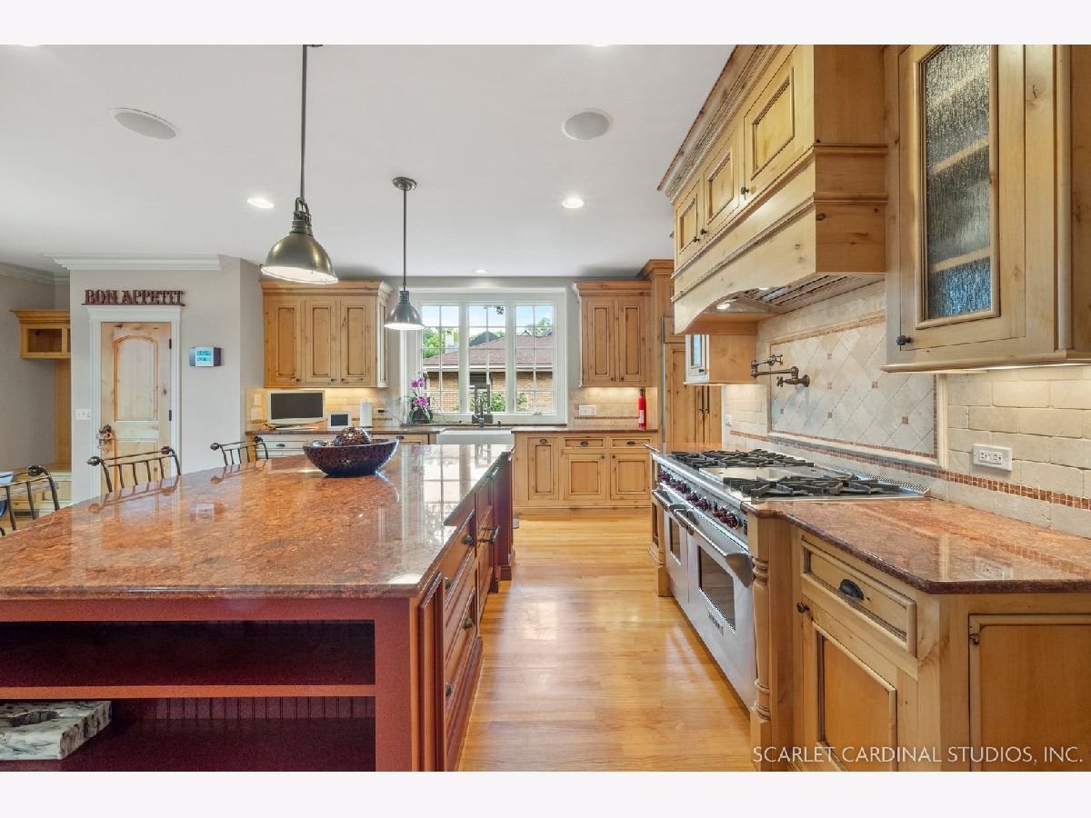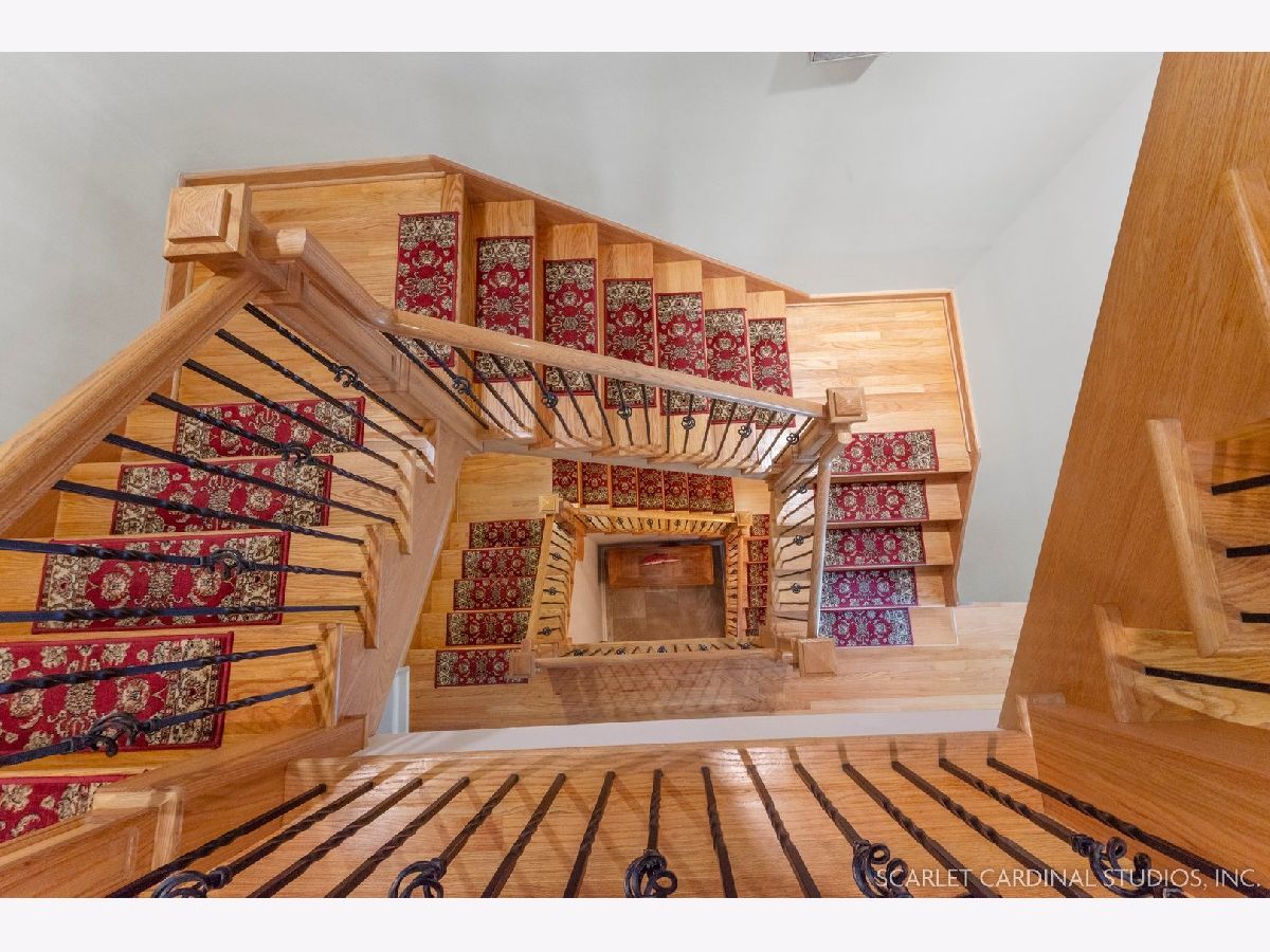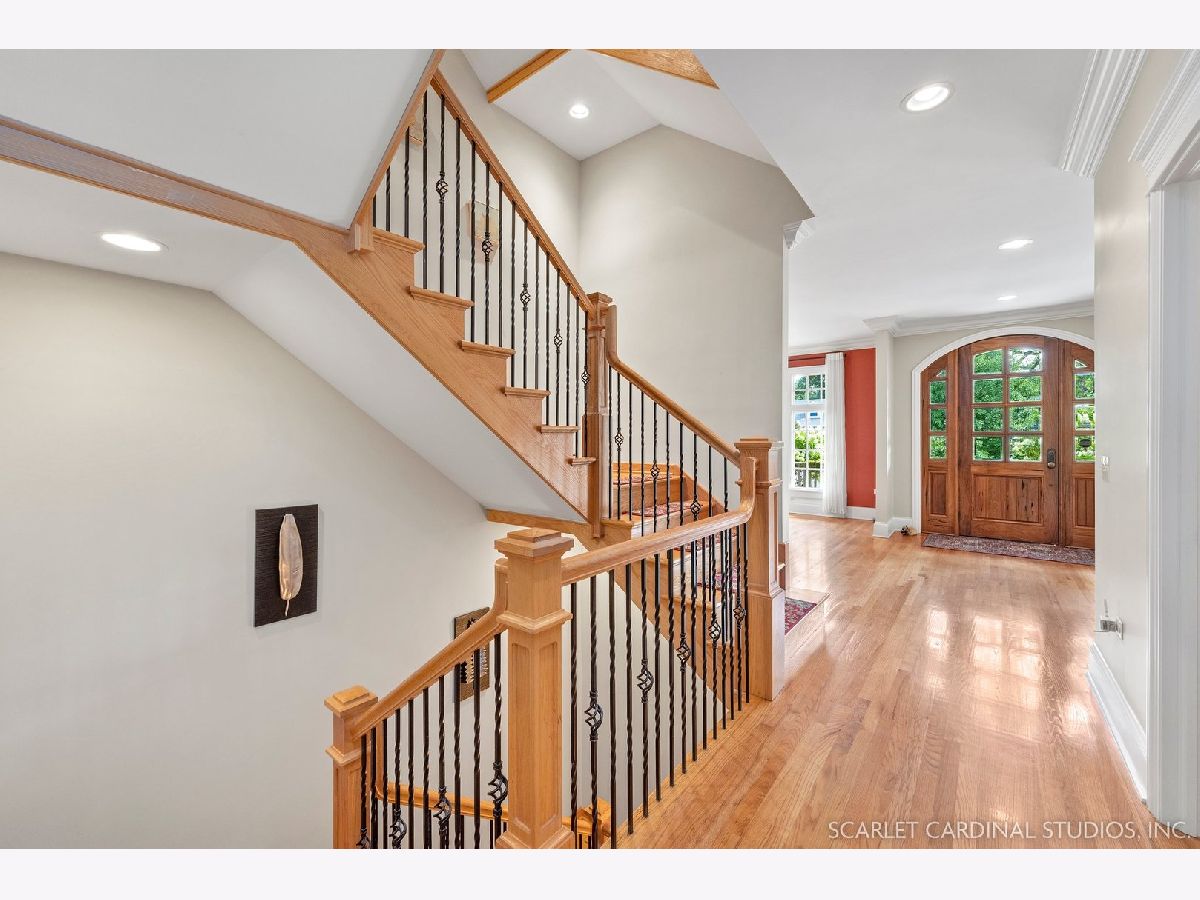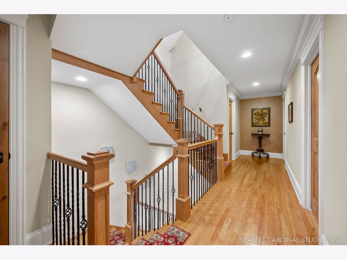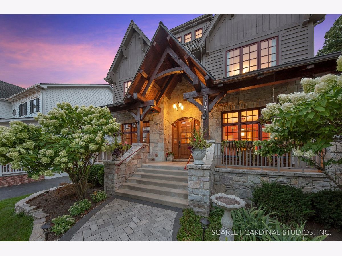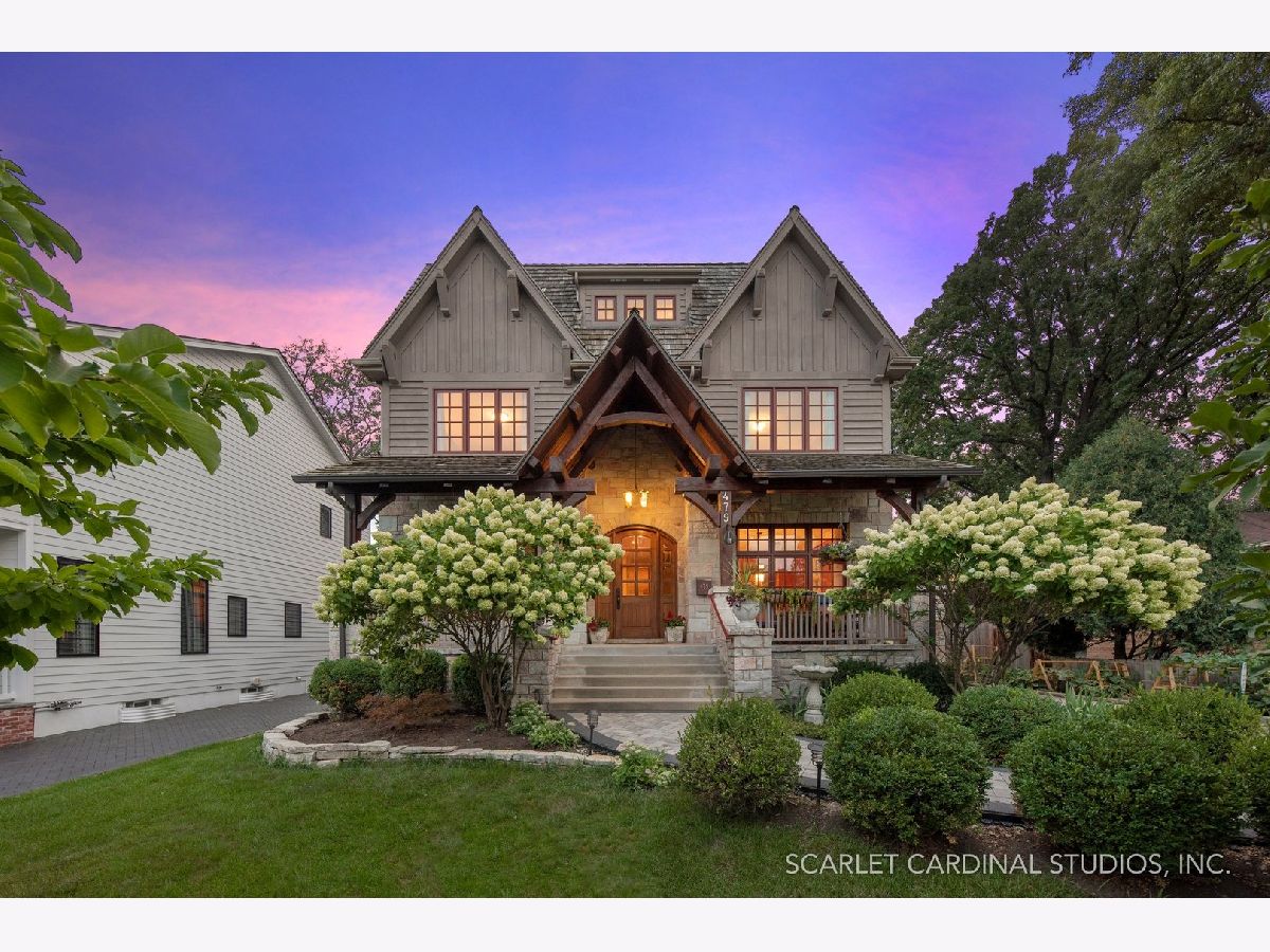 Situated on scenic Julian Street, just a short distance from downtown Naperville and 3 blocks from Highlands Elementary and North Central College, this stunning home features superb craftsmanship and the highest quality throughout. The timber and stone columns and the overhead timber front covered entry and porch area with custom elliptical door leads to the open foyer, featuring the solid oak staircase with iron spindles, and access to both the living room and formal dining room, each with hardwood flooring, an extended transom double window, extended 6" baseboards, and crown molding. The chef's kitchen boasts hardwood flooring, custom Knotty Alder 42" cabinetry, a tumbled marble backsplash, cabinet-paneled Bosch dishwasher and Sub-Zero refrigerator, Wolf commercial double oven with a 6-burner cooktop, and a cherry-stained island with two Sub-Zero beverage drawers. The spacious Butler's Pantry area features hardwood flooring, Knotty Alder 42" cabinetry, tumbled marble backsplash, wine rack system, and a beautiful custom barrel ceiling with travertine marble. The spacious eating area boasts hardwood flooring, crown molding, built-in storage unit cubby, and a separate door leading to the deck. The family room features a stone fireplace and dual sets of 8' doors leading to the patio area. The first level also features an office with impressive extended wainscoting, built-in bookcases, and a built-in desk area. The second level offers four bedrooms, including the owner's suite which features hardwood flooring, a stone gas fireplace, a large walk-in closet, crown molding, and a private bathroom with marble tile flooring, an oversized shower with five showerheads, a dual vanity with granite countertops and Kohler integrated bowls with oil rubbed bronze faucets, and a Whirlpool jetted tub. Two of the additional bedrooms possess walk-in closets and share a full bathroom with a dual sink vanity. The fourth bedroom features hardwood flooring, walk-in closet, and a private bathroom. The second laundry closet with a stackable washer and dryer that offers great convenience! The expansive third level features a large bonus room, a den with ability to be converted to a 5th bedroom, and a full bathroom. The finished basement offers an incredible 10' ceiling height and transom windows throughout. The basement features a large recreation room with a stone fireplace, carpet flooring, a full wet bar with 7-person seating, Bosch dishwasher with a cabinet panel front, cabinet panel refrigerator, stainless steel sink, Knotty Alder cabinetry, and granite counters. The full bathroom offers marble tile flooring marble countertop. The home's main laundry room is a huge 20'x14' space! This large laundry room features ceramic tile flooring, recessed lighting, extended transom escape window with muted glazing, granite counters, white 42" cabinetry, LG stainless steel gas washer and dryer, and a sink. The bathrooms throughout the home each feature Kohler toilets and integrated vanity bowls, along with oil-rubbed bronze faucets, granite or marble countertops, and Alder cabinetry. The yard area features paver walkways and a wood rear landing leading to a two-tier paver patio and a magnificent 3-story outdoor fireplace. This area offers peace, tranquility, and privacy among the extensive, mature landscaping. The 2 car detached garage (23x22) has 2 overhead doors and openers, 2 keypads, scuttle access to the attic, and an epoxy sealed floor. Additional updates include: furnace (2018), AC units (new compressor motor in one unit 2019), Roof is maintained and inspected regularly (Last time was July 2022), Siding (painted 2018), hot water heaters (2022), new patios (2015 & 2022), replaced front walkway and path (2020), replaced 2nd floor carpeting with hardwood flooring (2017), and brand new carpeting on 3rd floor and basement. This property is unique in so many ways!