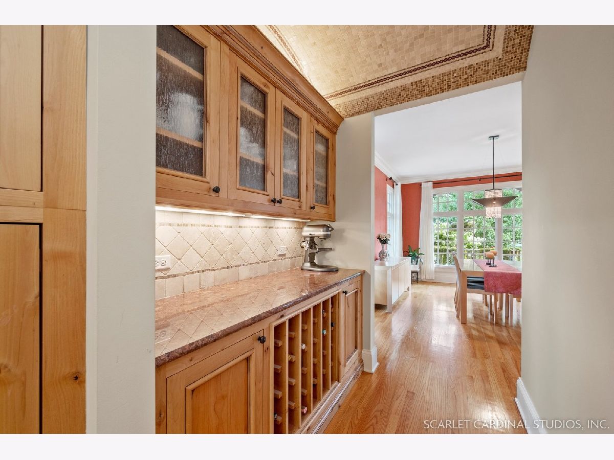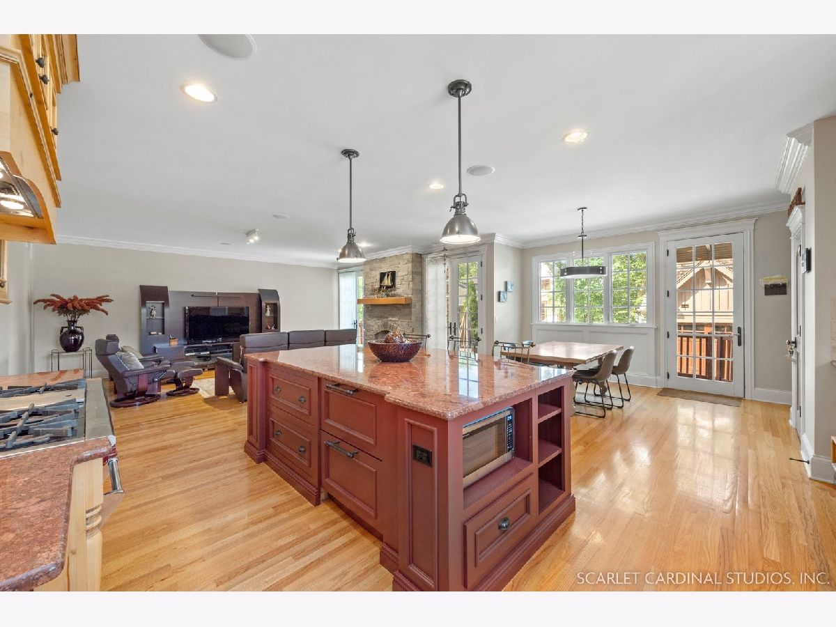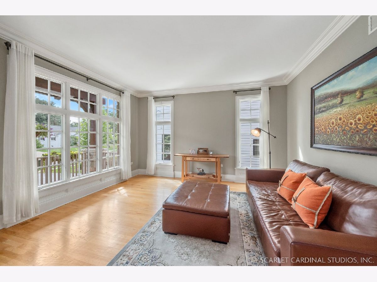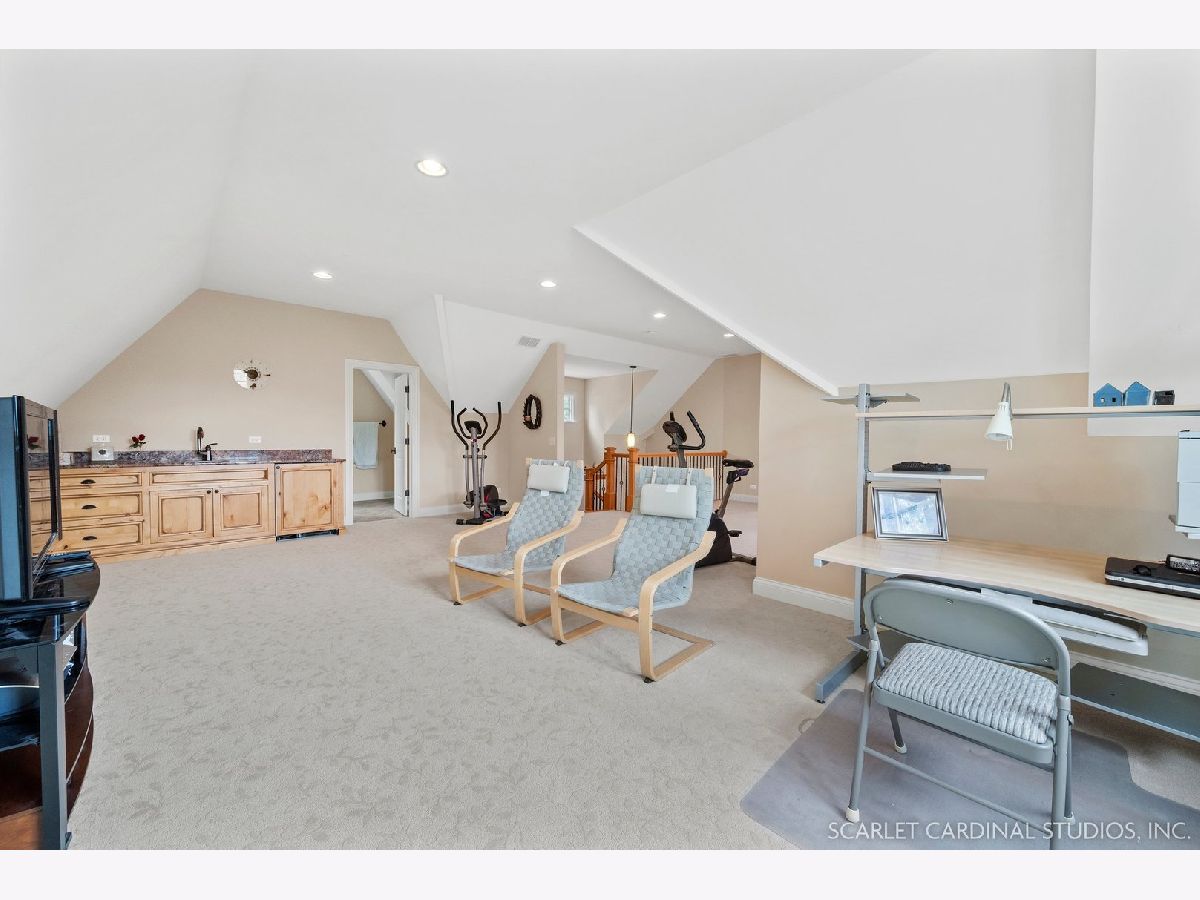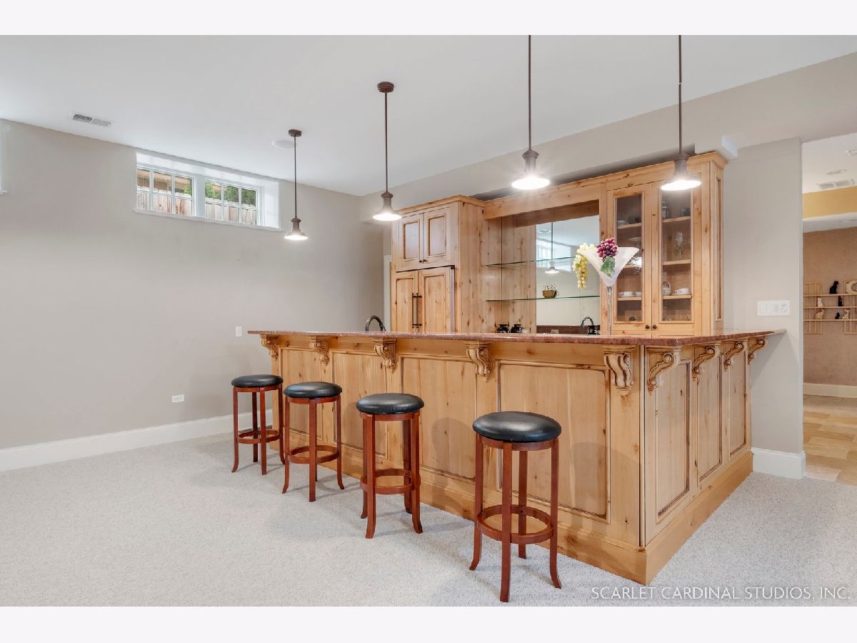 Situated on scenic Julian Street, just a short distance from downtown Naperville and 3 blocks from Highlands Elementary and North Central College, this stunning home features superb craftsmanship and the highest quality throughout. The timber and stone columns and the overhead timber front covered entry and porch area with custom elliptical door leads to the open foyer, featuring the solid oak staircase with iron spindles, and access to both the living room and formal dining room, each with hardwood flooring, an extended transom double window, extended 6" baseboards, and crown molding. The chef's kitchen boasts hardwood flooring, custom Knotty Alder 42" cabinetry, a tumbled marble backsplash, cabinet-paneled Bosch dishwasher and Sub-Zero refrigerator, Wolf commercial double oven with a 6-burner cooktop, and a cherry-stained island with two Sub-Zero beverage drawers. The spacious Butler's Pantry area features hardwood flooring, Knotty Alder 42" cabinetry, tumbled marble backsplash, wine rack system, and a beautiful custom barrel ceiling with travertine marble. The spacious eating area boasts hardwood flooring, crown molding, built-in storage unit cubby, and a separate door leading to the deck. The family room features a stone fireplace and dual sets of 8' doors leading to the patio area. The first level also features an office with impressive extended wainscoting, built-in bookcases, and a built-in desk area. The second level offers four bedrooms, including the owner's suite which features hardwood flooring, a stone gas fireplace, a large walk-in closet, crown molding, and a private bathroom with marble tile flooring, an oversized shower with five showerheads, a dual vanity with granite countertops and Kohler integrated bowls with oil rubbed bronze faucets, and a Whirlpool jetted tub. Two of the additional bedrooms possess walk-in closets and share a full bathroom with a dual sink vanity. The fourth bedroom features hardwood flooring, walk-in closet, and a private bathroom. The second laundry closet with a stackable washer and dryer that offers great convenience! The expansive third level features a large bonus room, a den with ability to be converted to a 5th bedroom, and a full bathroom. The finished basement offers an incredible 10' ceiling height and transom windows throughout. The basement features a large recreation room with a stone fireplace, carpet flooring, a full wet bar with 7-person seating, Bosch dishwasher with a cabinet panel front, cabinet panel refrigerator, stainless steel sink, Knotty Alder cabinetry, and granite counters. The full bathroom offers marble tile flooring marble countertop. The home's main laundry room is a huge 20'x14' space! This large laundry room features ceramic tile flooring, recessed lighting, extended transom escape window with muted glazing, granite counters, white 42" cabinetry, LG stainless steel gas washer and dryer, and a sink. The bathrooms throughout the home each feature Kohler toilets and integrated vanity bowls, along with oil-rubbed bronze faucets, granite or marble countertops, and Alder cabinetry. The yard area features paver walkways and a wood rear landing leading to a two-tier paver patio and a magnificent 3-story outdoor fireplace. This area offers peace, tranquility, and privacy among the extensive, mature landscaping. The 2 car detached garage (23x22) has 2 overhead doors and openers, 2 keypads, scuttle access to the attic, and an epoxy sealed floor. Additional updates include: furnace (2018), AC units (new compressor motor in one unit 2019), Roof is maintained and inspected regularly (Last time was July 2022), Siding (painted 2018), hot water heaters (2022), new patios (2015 & 2022), replaced front walkway and path (2020), replaced 2nd floor carpeting with hardwood flooring (2017), and brand new carpeting on 3rd floor and basement. This property is unique in so many ways!