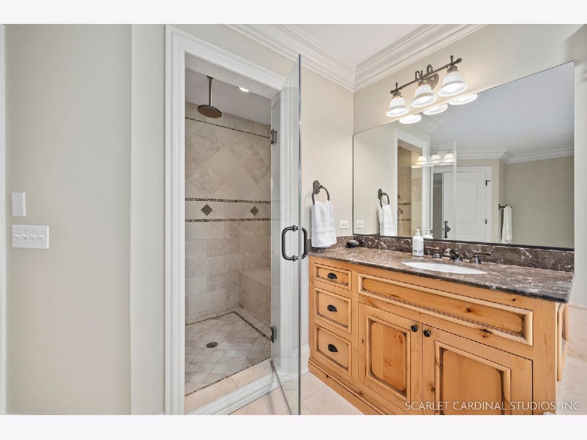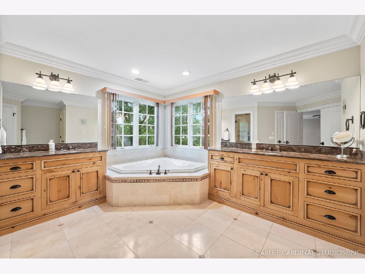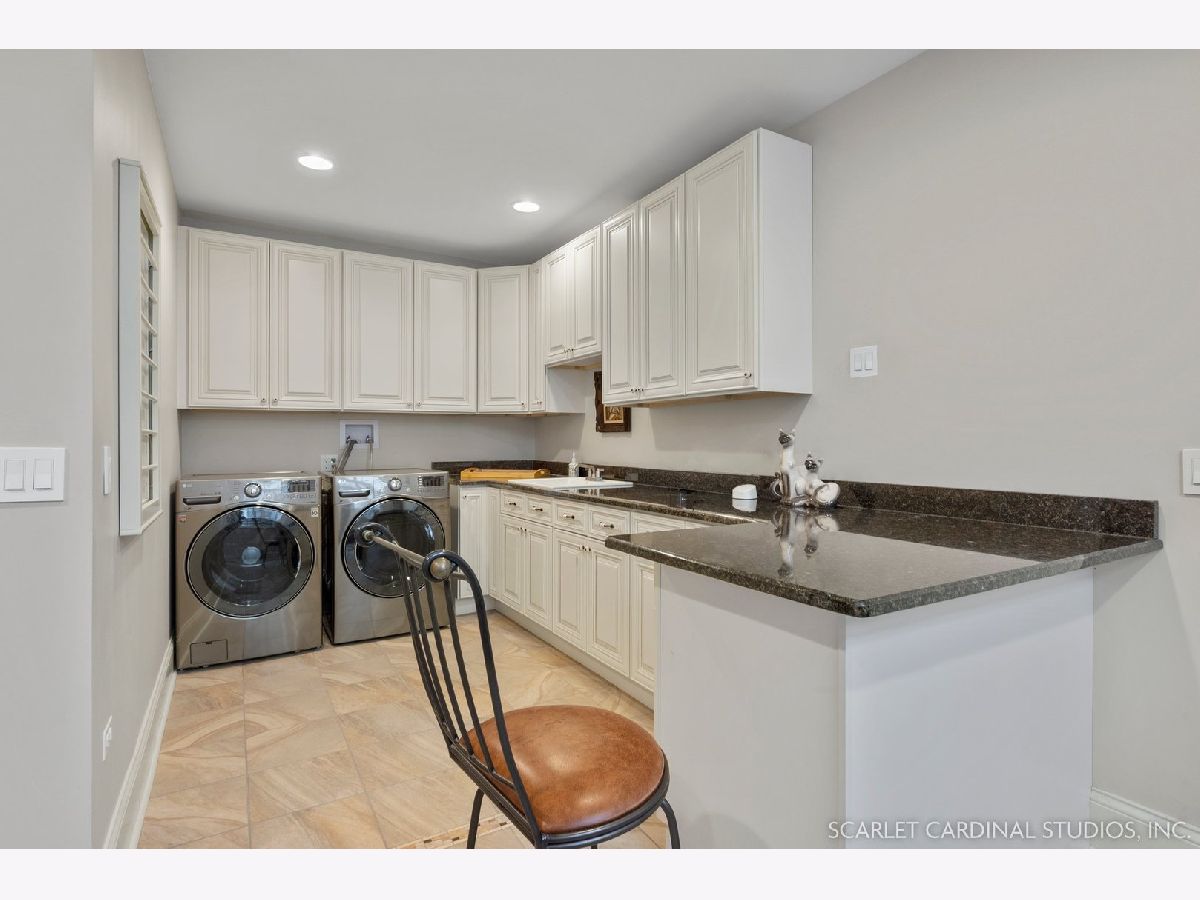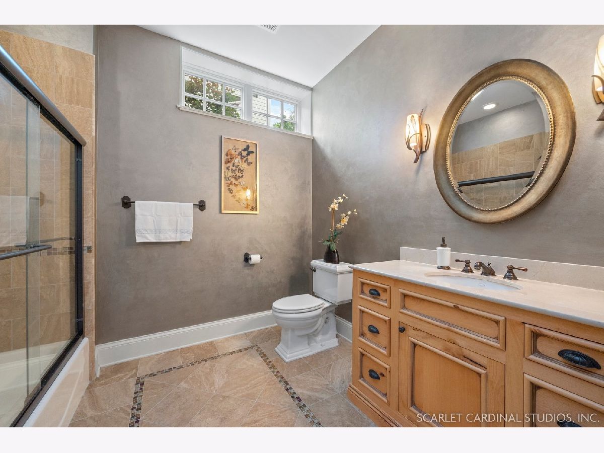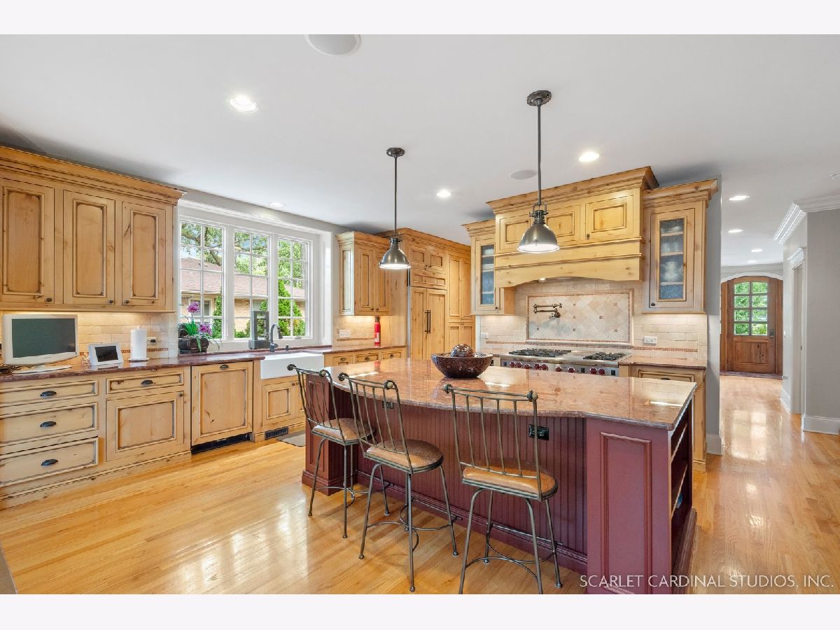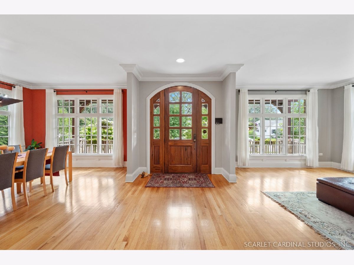 Situated on scenic Julian Street, just a short distance from downtown Naperville and 3 blocks from Highlands Elementary and North Central College, this stunning home features superb craftsmanship and the highest quality throughout. The timber and stone columns and the overhead timber front covered entry and porch area with custom elliptical door leads to the open foyer, featuring the solid oak staircase with iron spindles, and access to both the living room and formal dining room, each with hardwood flooring, an extended transom double window, extended 6" baseboards, and crown molding. The chef's kitchen boasts hardwood flooring, custom Knotty Alder 42" cabinetry, a tumbled marble backsplash, cabinet-paneled Bosch dishwasher and Sub-Zero refrigerator, Wolf commercial double oven with a 6-burner cooktop, and a cherry-stained island with two Sub-Zero beverage drawers. The spacious Butler's Pantry area features hardwood flooring, Knotty Alder 42" cabinetry, tumbled marble backsplash, wine rack system, and a beautiful custom barrel ceiling with travertine marble. The spacious eating area boasts hardwood flooring, crown molding, built-in storage unit cubby, and a separate door leading to the deck. The family room features a stone fireplace and dual sets of 8' doors leading to the patio area. The first level also features an office with impressive extended wainscoting, built-in bookcases, and a built-in desk area. The second level offers four bedrooms, including the owner's suite which features hardwood flooring, a stone gas fireplace, a large walk-in closet, crown molding, and a private bathroom with marble tile flooring, an oversized shower with five showerheads, a dual vanity with granite countertops and Kohler integrated bowls with oil rubbed bronze faucets, and a Whirlpool jetted tub. Two of the additional bedrooms possess walk-in closets and share a full bathroom with a dual sink vanity. The fourth bedroom features hardwood flooring, walk-in closet, and a private bathroom. The second laundry closet with a stackable washer and dryer that offers great convenience! The expansive third level features a large bonus room, a den with ability to be converted to a 5th bedroom, and a full bathroom. The finished basement offers an incredible 10' ceiling height and transom windows throughout. The basement features a large recreation room with a stone fireplace, carpet flooring, a full wet bar with 7-person seating, Bosch dishwasher with a cabinet panel front, cabinet panel refrigerator, stainless steel sink, Knotty Alder cabinetry, and granite counters. The full bathroom offers marble tile flooring marble countertop. The home's main laundry room is a huge 20'x14' space! This large laundry room features ceramic tile flooring, recessed lighting, extended transom escape window with muted glazing, granite counters, white 42" cabinetry, LG stainless steel gas washer and dryer, and a sink. The bathrooms throughout the home each feature Kohler toilets and integrated vanity bowls, along with oil-rubbed bronze faucets, granite or marble countertops, and Alder cabinetry. The yard area features paver walkways and a wood rear landing leading to a two-tier paver patio and a magnificent 3-story outdoor fireplace. This area offers peace, tranquility, and privacy among the extensive, mature landscaping. The 2 car detached garage (23x22) has 2 overhead doors and openers, 2 keypads, scuttle access to the attic, and an epoxy sealed floor. Additional updates include: furnace (2018), AC units (new compressor motor in one unit 2019), Roof is maintained and inspected regularly (Last time was July 2022), Siding (painted 2018), hot water heaters (2022), new patios (2015 & 2022), replaced front walkway and path (2020), replaced 2nd floor carpeting with hardwood flooring (2017), and brand new carpeting on 3rd floor and basement. This property is unique in so many ways!