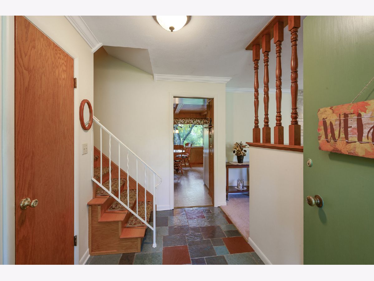 This home is a classic, mid-century style, custom built home, that has been lovingly cared for by one owner since 1968! The 4 bedroom, 2.1 bath home is located on a 1.1 acre well landscaped lot with lovely perennial gardens and mature trees bordering the Blackberry Creek! The entry has the original slate flooring and offers a glimpse of the generous living room that is highlighted by a stone fireplace with gas logs. Tucked around the corner is the formal dining room. There is a pocket door separating the foyer from the wood beamed, fully applianced, eat-in kitchen highlighted by a full brick accent wall! With direct access from kitchen to the 10 x 20 screened porch you will be able to enjoy your morning coffee with a bug free view of the glorious yard! Upstairs there are four bedrooms, all with generous closets and hardwood floors, and two beautifully updated bathrooms. The Master Bedroom has a built-in dresser in the closet and the Master Bath has a tile shower! All the windows on the 2nd floor have been replaced as well as those windows in the lower level. The lower level has a huge, 16 x 25 family room, a 5th bedroom or home office, a laundry/ mud room with washer & dryer, utility sink and direct access to the back yard. The 3/4 bath has an existing block shower that needs re-connected to the water, which is there. The furnace & humidifier and central air were replaced in 2003. The home has a concrete driveway, the 22 x 22 garage has deep overhangs, built-in shelving, pull down stairs to the attic, & direct access to the screened porch. Don't miss seeing the 10 x 13 garden shed! It is possible flood insurance may be required. Survey with elevation certificate has been ordered.
