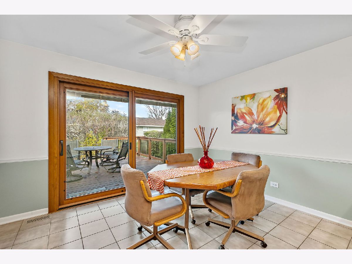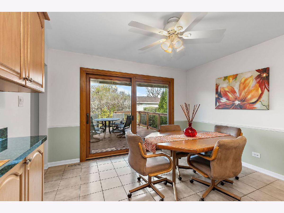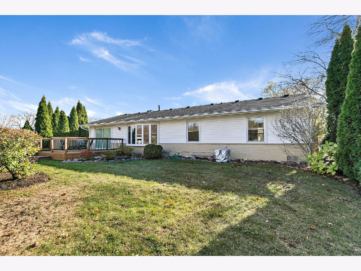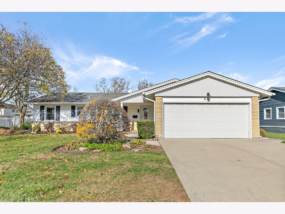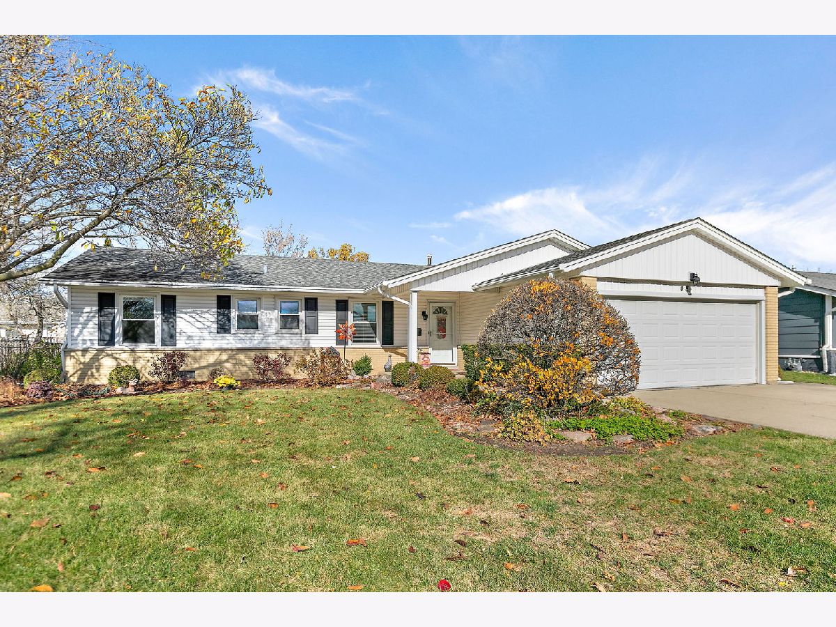 Walk the kids to school or the pool from this charming and well-maintained 3 bedroom, plus office, 2 bath ranch home in Elk Grove Village. This model is a 4 bedroom home and the office could easily be converted to a 4th bedroom. Open foyer leads to large, comfortable living room featuring back yard views through wood trimmed bay window and adjacent to the spacious eat-in kitchen with plenty of cabinets, pantry, peninsula, and functional coffee bar. Laundry room is conveniently located off the kitchen with access to 2 car garage equipped with storage shelves and pull-down attic. Bedrooms are bright and comfortable, updated hall bath featuring bathtub, huge vanity, ceramic tiled floors and walls. Master bedroom has two windows and full master bath with walk in shower, ceramic floors and walls. Outside, enjoy fenced-in landscaped yard with expansive deck, mature trees and lots of privacy. Updated furnace, AC and water heater (2010-14), sliding glass door (2014), roof (2013), windows and siding (2017) and sump pump (2024). Centrally located near shopping, dining, forest preserve trails and transportation. Don't miss out on this wonderful home!