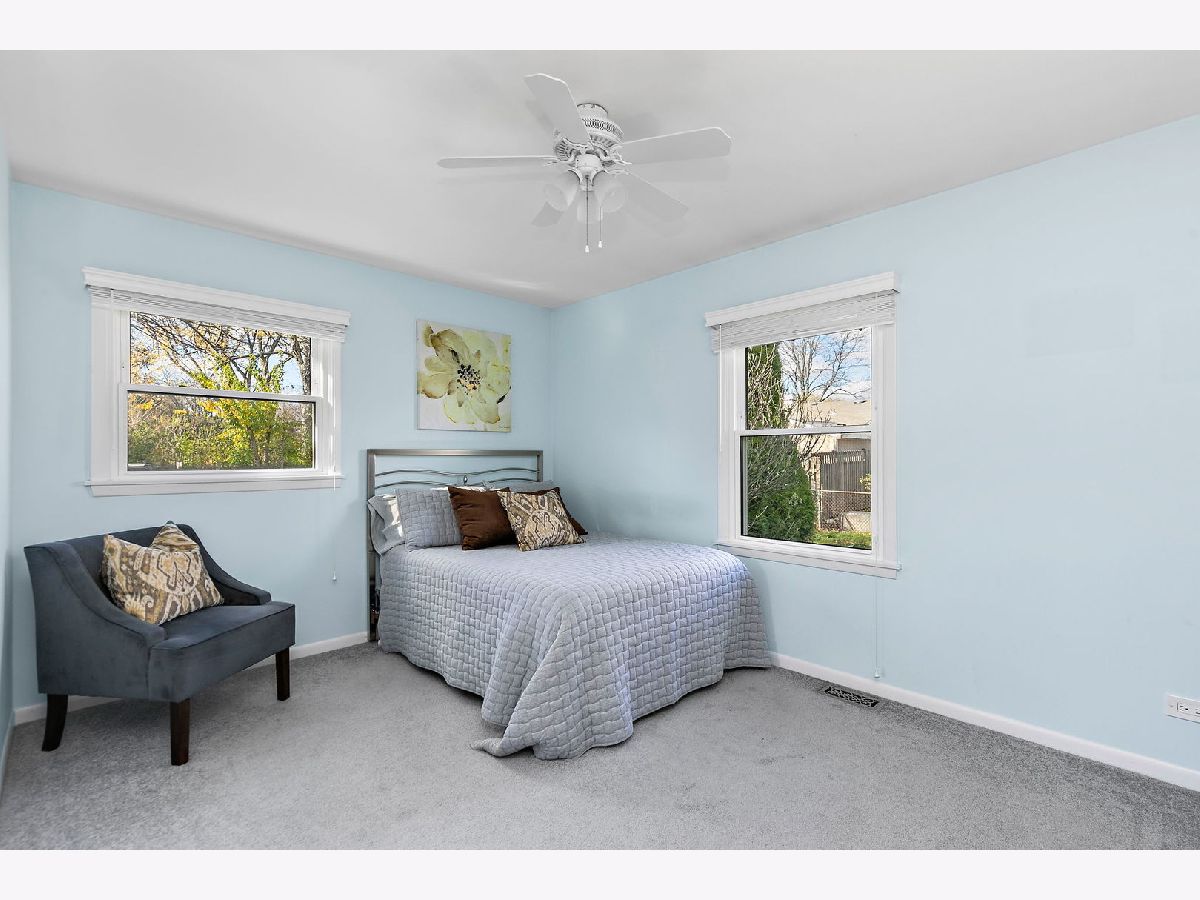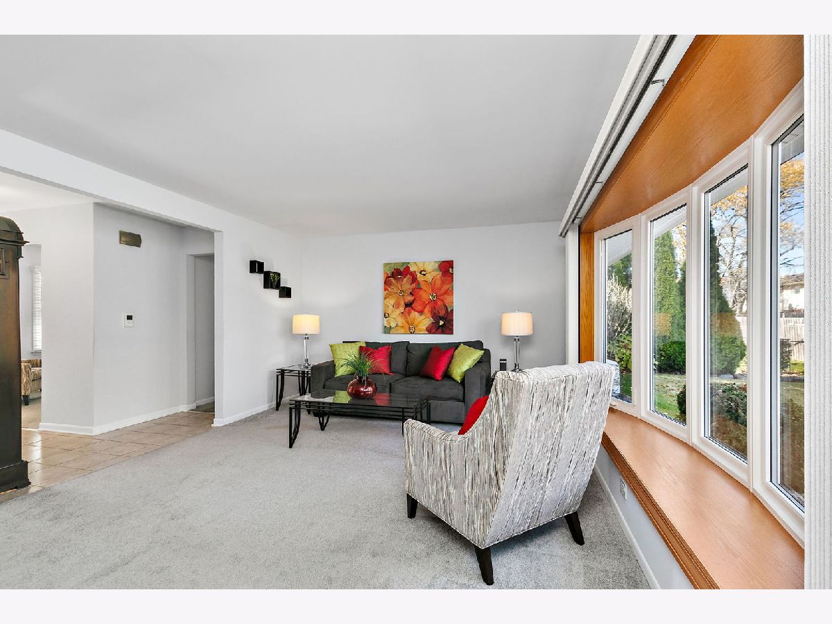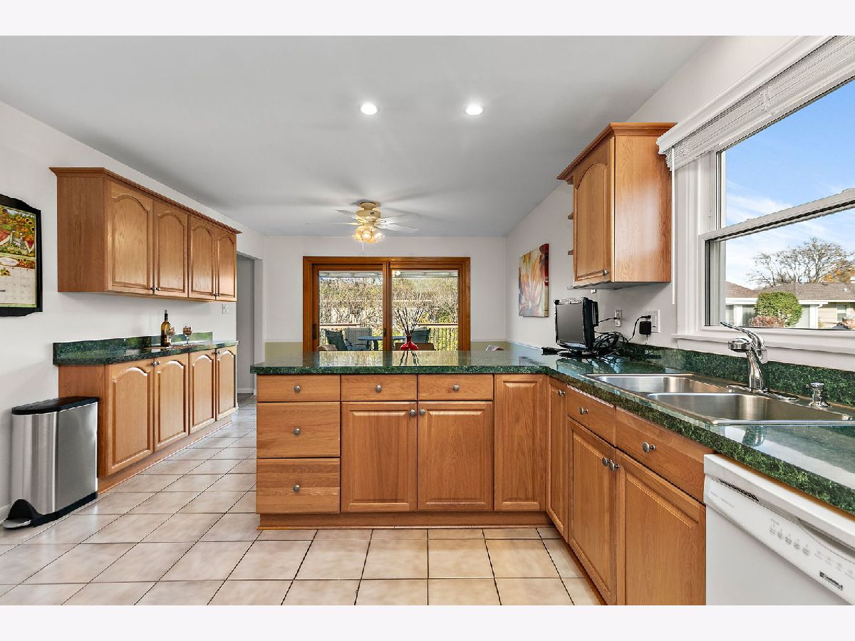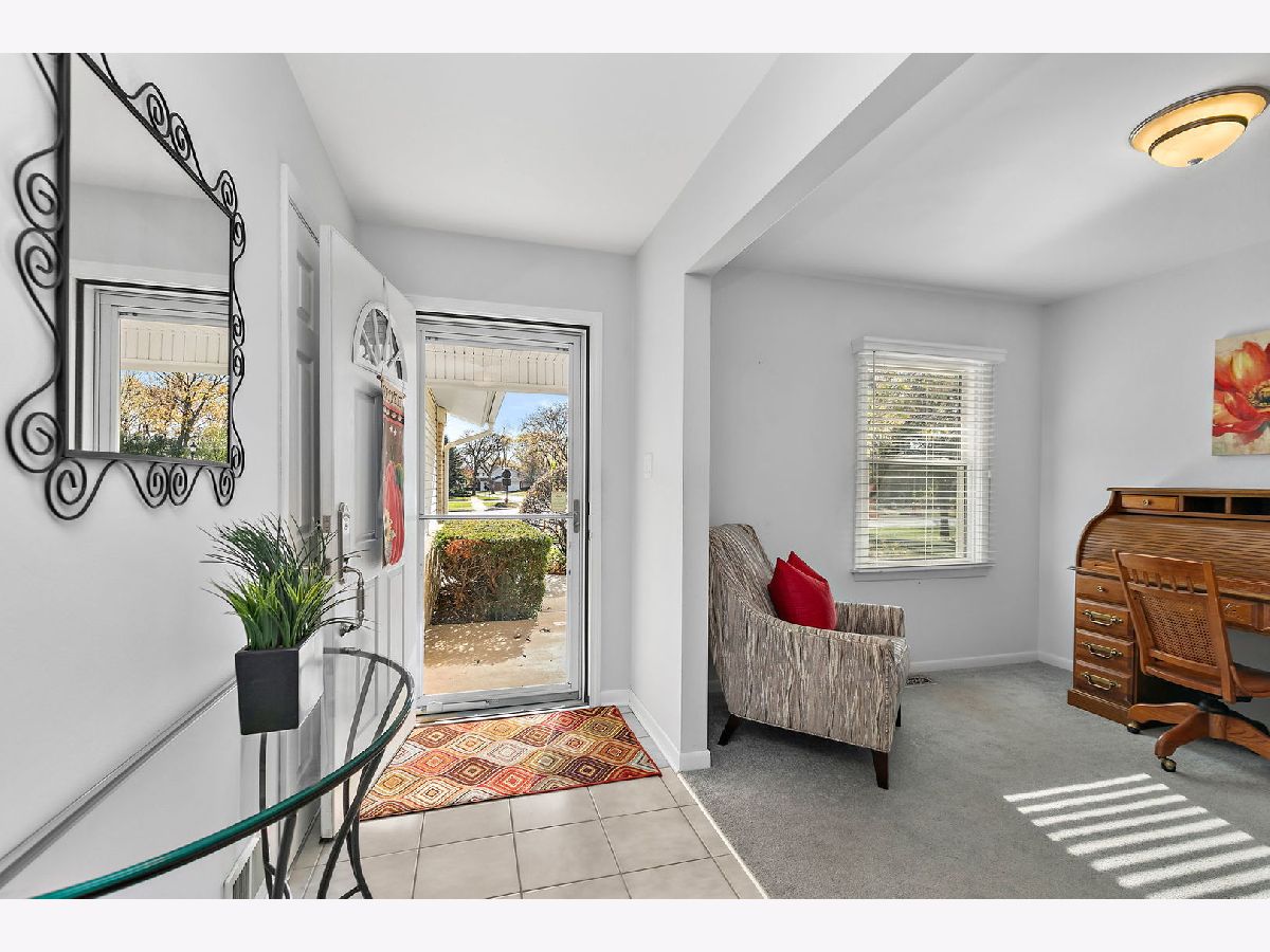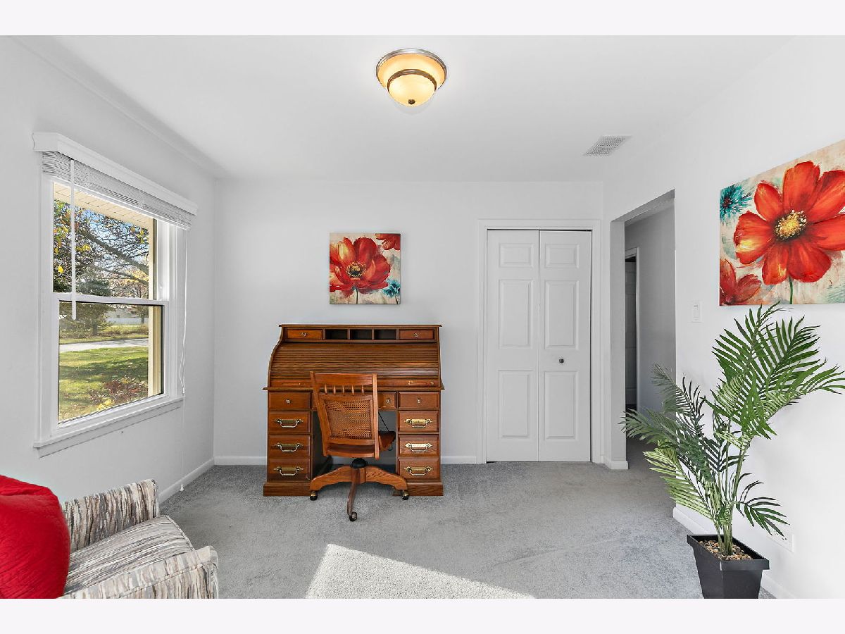 Walk the kids to school or the pool from this charming and well-maintained 3 bedroom, plus office, 2 bath ranch home in Elk Grove Village. This model is a 4 bedroom home and the office could easily be converted to a 4th bedroom. Open foyer leads to large, comfortable living room featuring back yard views through wood trimmed bay window and adjacent to the spacious eat-in kitchen with plenty of cabinets, pantry, peninsula, and functional coffee bar. Laundry room is conveniently located off the kitchen with access to 2 car garage equipped with storage shelves and pull-down attic. Bedrooms are bright and comfortable, updated hall bath featuring bathtub, huge vanity, ceramic tiled floors and walls. Master bedroom has two windows and full master bath with walk in shower, ceramic floors and walls. Outside, enjoy fenced-in landscaped yard with expansive deck, mature trees and lots of privacy. Updated furnace, AC and water heater (2010-14), sliding glass door (2014), roof (2013), windows and siding (2017) and sump pump (2024). Centrally located near shopping, dining, forest preserve trails and transportation. Don't miss out on this wonderful home!