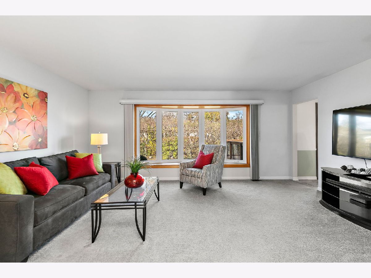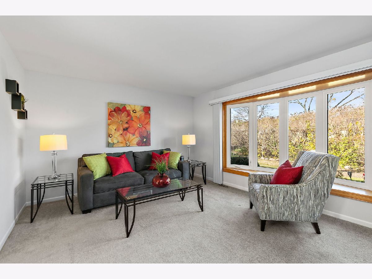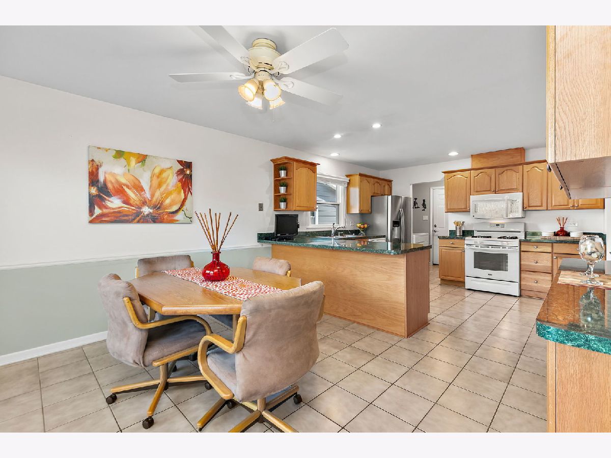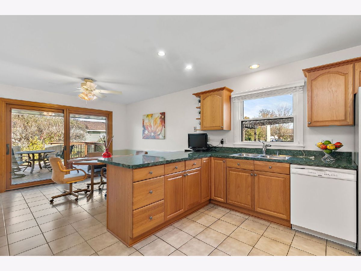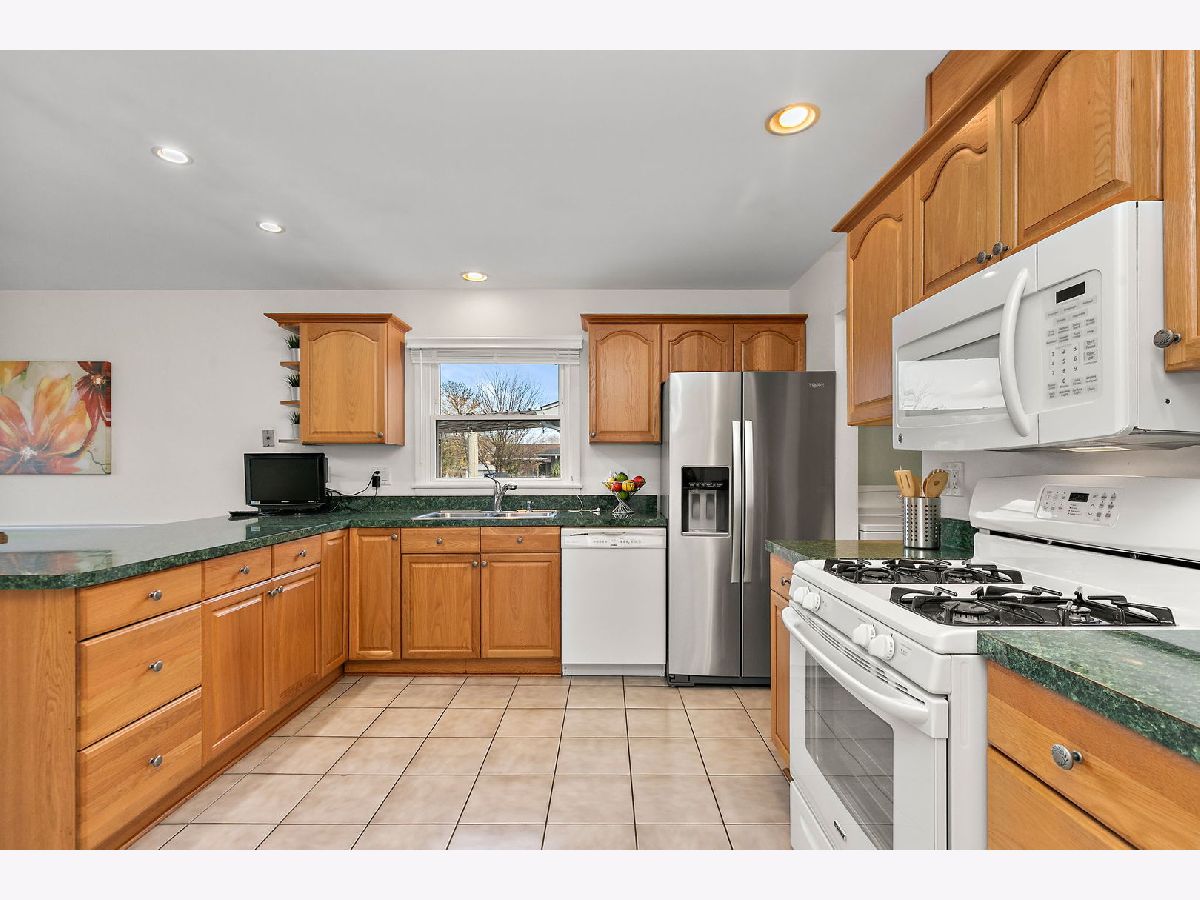Walk the kids to school or the pool from this charming and well-maintained 3 bedroom, plus office, 2 bath ranch home in Elk Grove Village. This model is a 4 bedroom home and the office could easily be converted to a 4th bedroom. Open foyer leads to large, comfortable living room featuring back yard views through wood trimmed bay window and adjacent to the spacious eat-in kitchen with plenty of cabinets, pantry, peninsula, and functional coffee bar. Laundry room is conveniently located off the kitchen with access to 2 car garage equipped with storage shelves and pull-down attic. Bedrooms are bright and comfortable, updated hall bath featuring bathtub, huge vanity, ceramic tiled floors and walls. Master bedroom has two windows and full master bath with walk in shower, ceramic floors and walls. Outside, enjoy fenced-in landscaped yard with expansive deck, mature trees and lots of privacy. Updated furnace, AC and water heater (2010-14), sliding glass door (2014), roof (2013), windows and siding (2017) and sump pump (2024). Centrally located near shopping, dining, forest preserve trails and transportation. Don't miss out on this wonderful home!