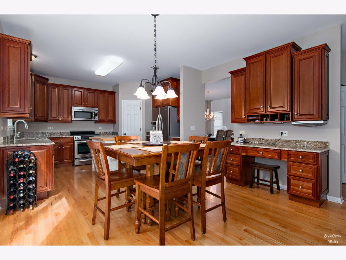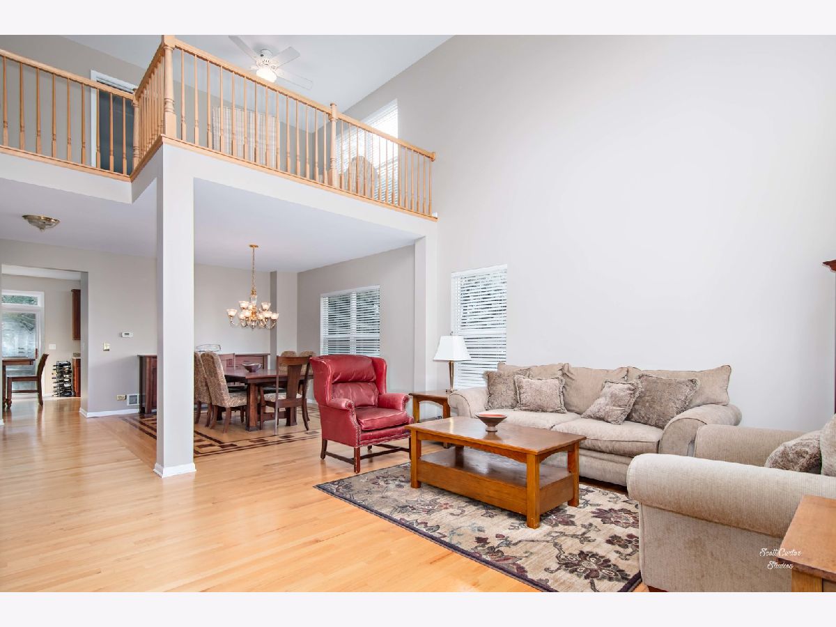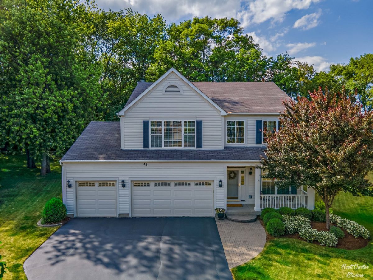 Spacious and Open 4 Bedroom home features 3 car garage beautiful landscaping, and adorable front porch. The 2-story living room with tons of natural light greets you as you find gorgeous Hardwood flooring throughout the main living areas. Open formal dining room concept with inlayed hardwood floor detail. Spacious eat-in kitchen features upgraded cabinetry, stainless steel appliances, and granite countertops. Pantry and eat-in area offers slider to the patio and ultra-private wooded backyard - perfect for entertaining! The comfortable family room features a gas fireplace. A den, guest bathroom, and laundry room round out the main level. You'll find cozy carpeting upstairs throughout the bedrooms and spacious loft area. The huge master suite includes vaulted ceilings, an en-suite bathroom with separate vanities, updated lighting and fixtures, and a walk-in closet. Generously sized secondary bedrooms. Full unfinished basement offers room to expand. Great location near parks, schools, library, and downtown Crystal Lake shopping, dining, entertainment, and Metra train to the city!