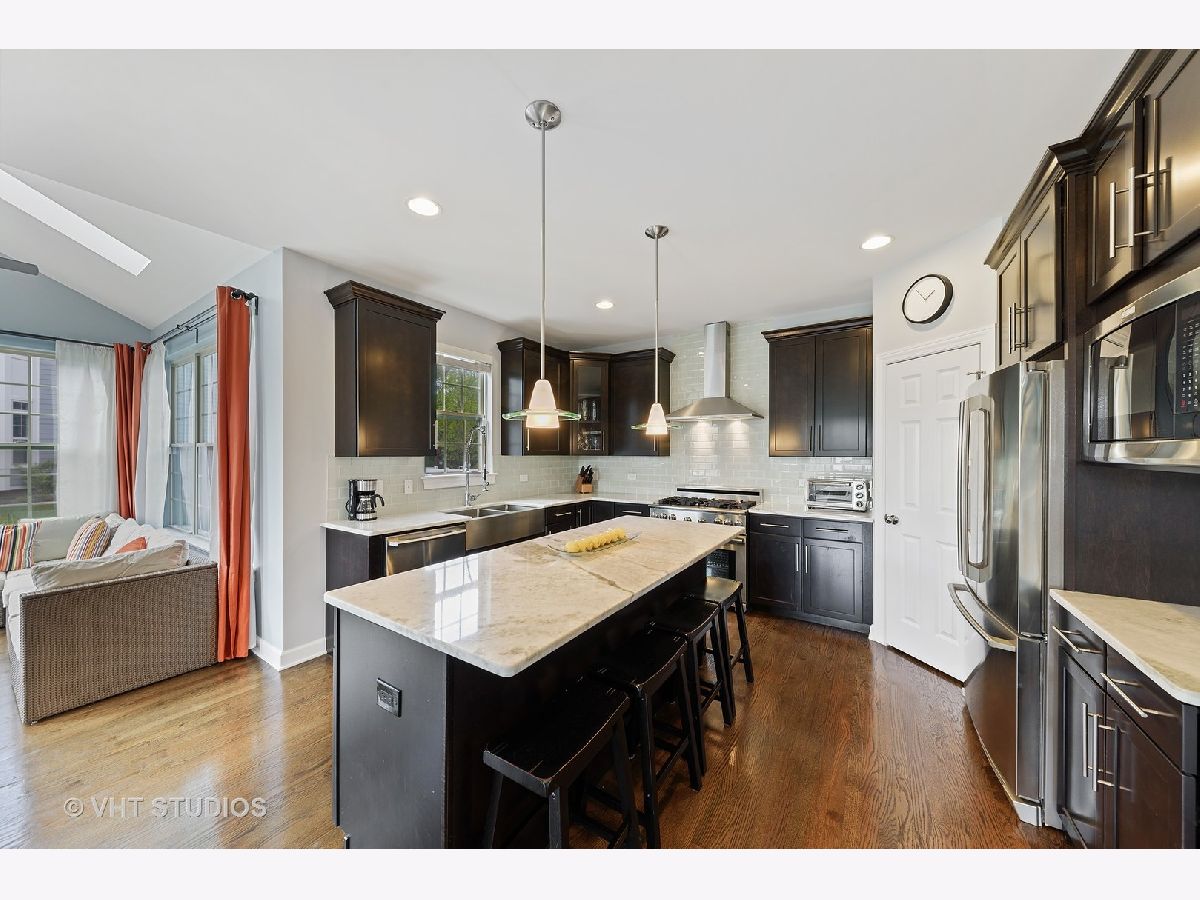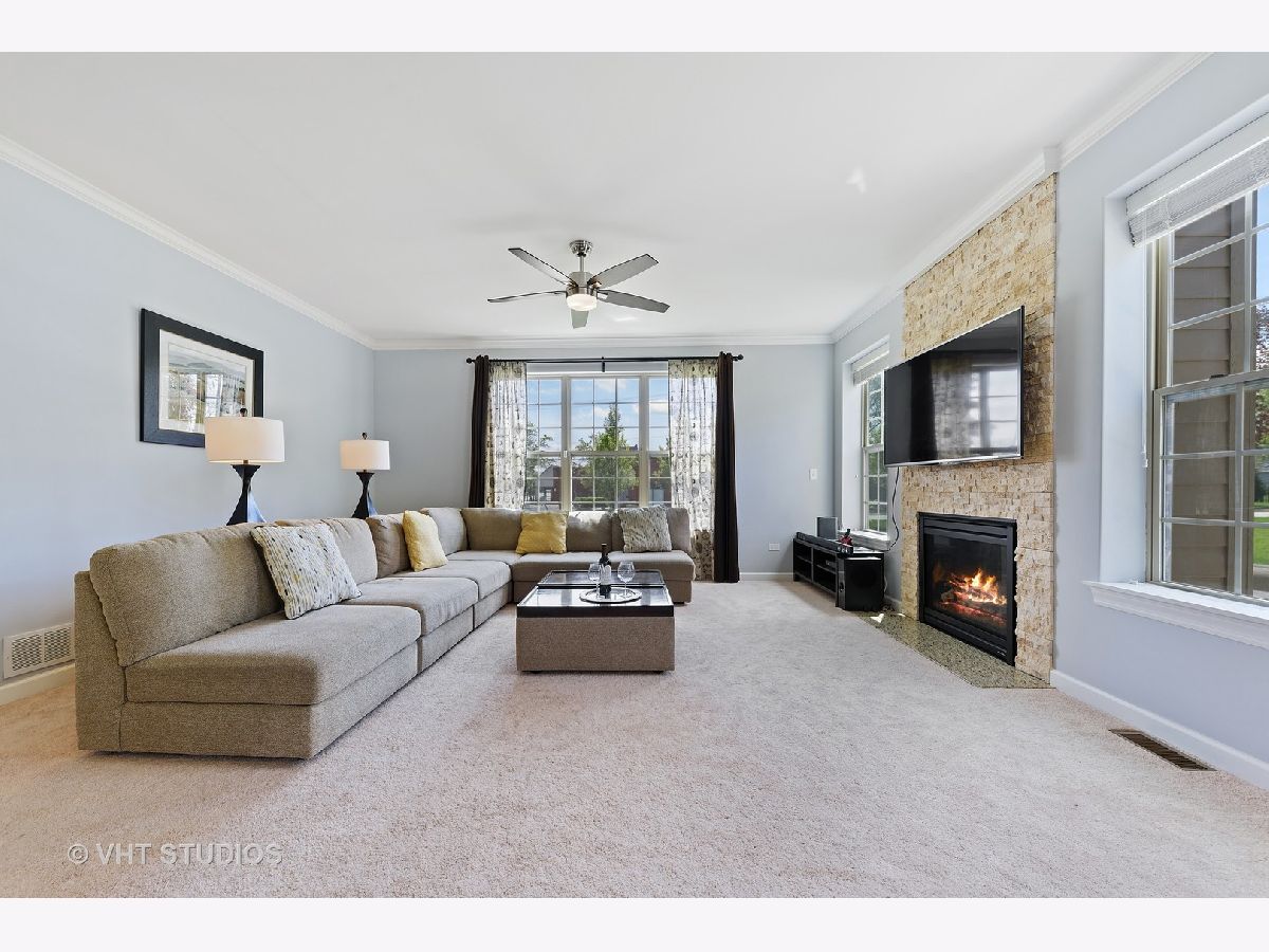 Custom built brick home on corner lot with side load 3 car garage. Stunning hardwood and lots of nature light welcomes you into a Living Room/Dining Room. Gourmet kitchen with quartzite countertops, island and pantry is perfect for cooking. Open Concept kitchen/family room into a bright sun room with vaulted ceiling and sky lights to enjoy your morning coffee. First floor office, mud room and powder room. Beautiful all wood staircase with wrought iron spindles go up to an open loft area, 4 bedrooms plus a flexible bonus room upstairs. Second floor laundry available. Large master suite with WIC and private luxury bath. Finished basement is perfect for family entertainment and additional living space featuring a wet bar and full bath in the basement. Located in a desirable location close to 53 access, and award winning schools with bus service. In-person showings allowed by appointment with notice.