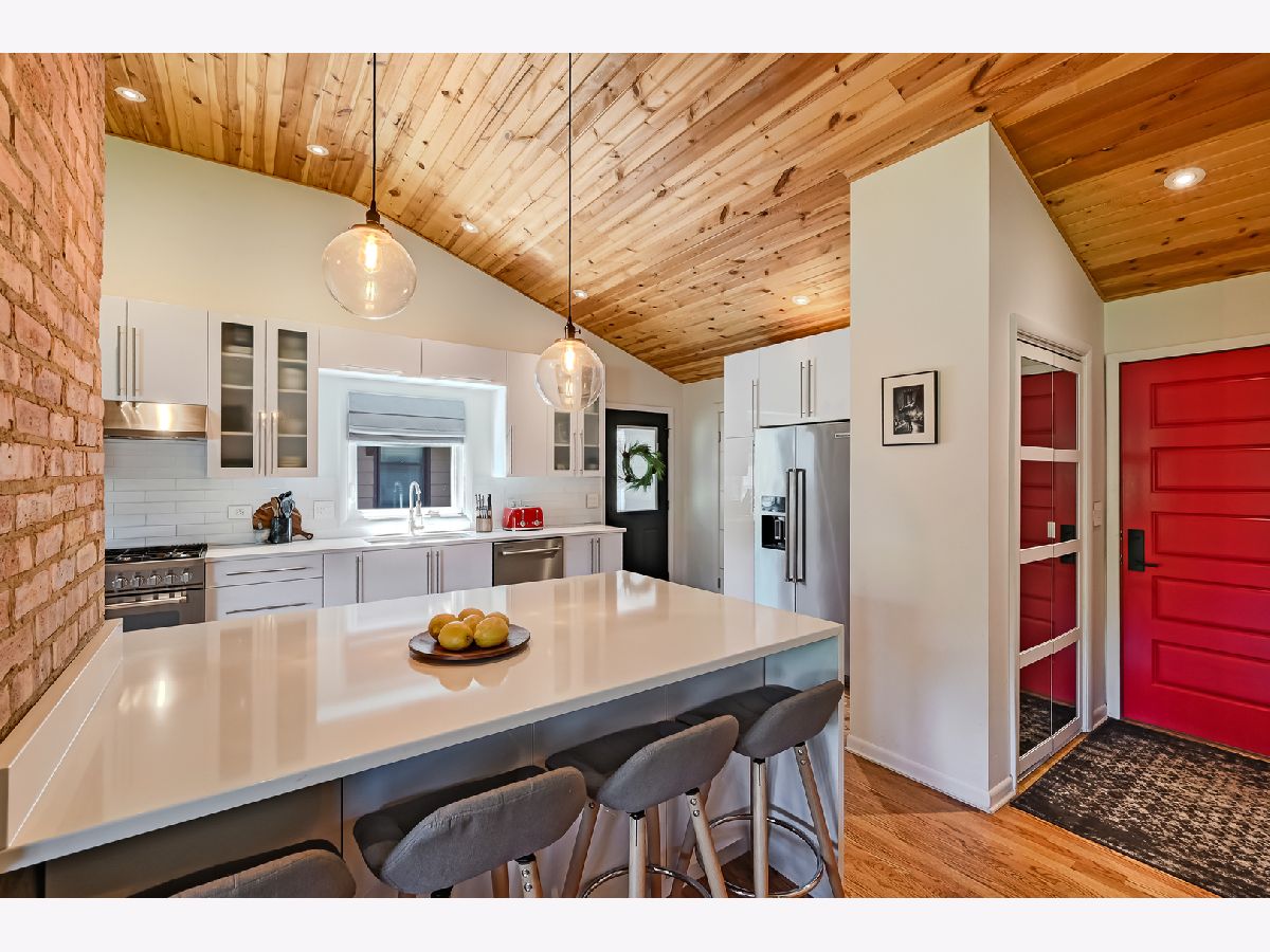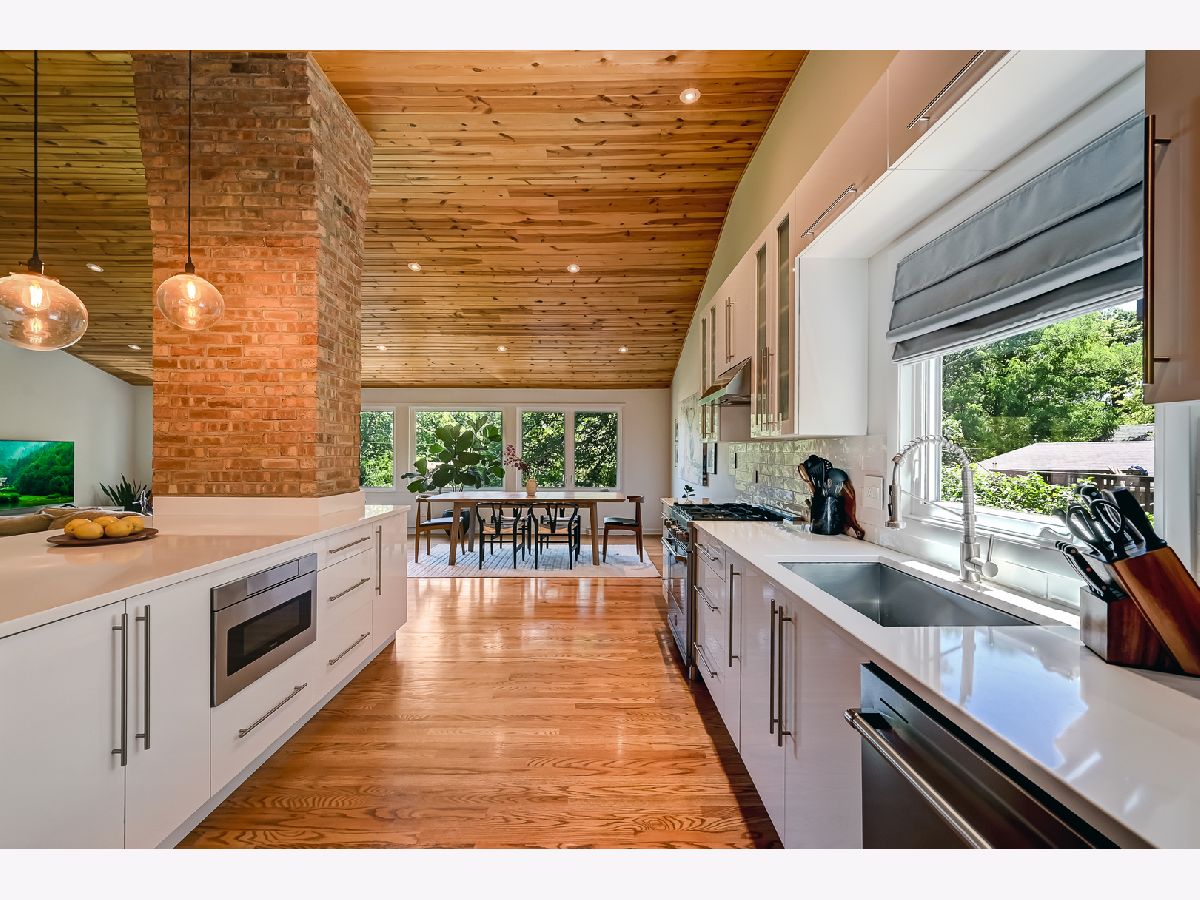 Timeless, classic, and absolutely beautiful 4-Bed, 2-Bath Ranch! Completely redone in 2017, this stunning home is located in the heart of one of the most sought-after neighborhoods in Downtown Downers Grove. Just blocks away from the Main Street BNSF Express Train Station, dining, shopping, and within walking distance to all three top-rated public schools: Pierce Downer Elementary, Herrick Middle, and Downers North High School. The first floor features a desirable layout showcasing a soaring wood-vaulted ceiling, hardwood floors throughout, abundant windows, and designer lighting. The gourmet kitchen boasts custom cabinets with plenty of prep and entertaining space, professional-grade appliances, and a breakfast bar, opening to a sun-filled living room. The expansive primary bedroom is complemented by three additional spacious and finely appointed bedrooms & baths. The lower walk-out level offers a spacious family room with a wood-burning fireplace with a glass door leading to a patio. This overlooks a fenced-in, glorious backyard with mature trees, planned for the ultimate outdoor enjoyment. Experience timeless charm and modern elegance in this beautifully redone home in prime location!