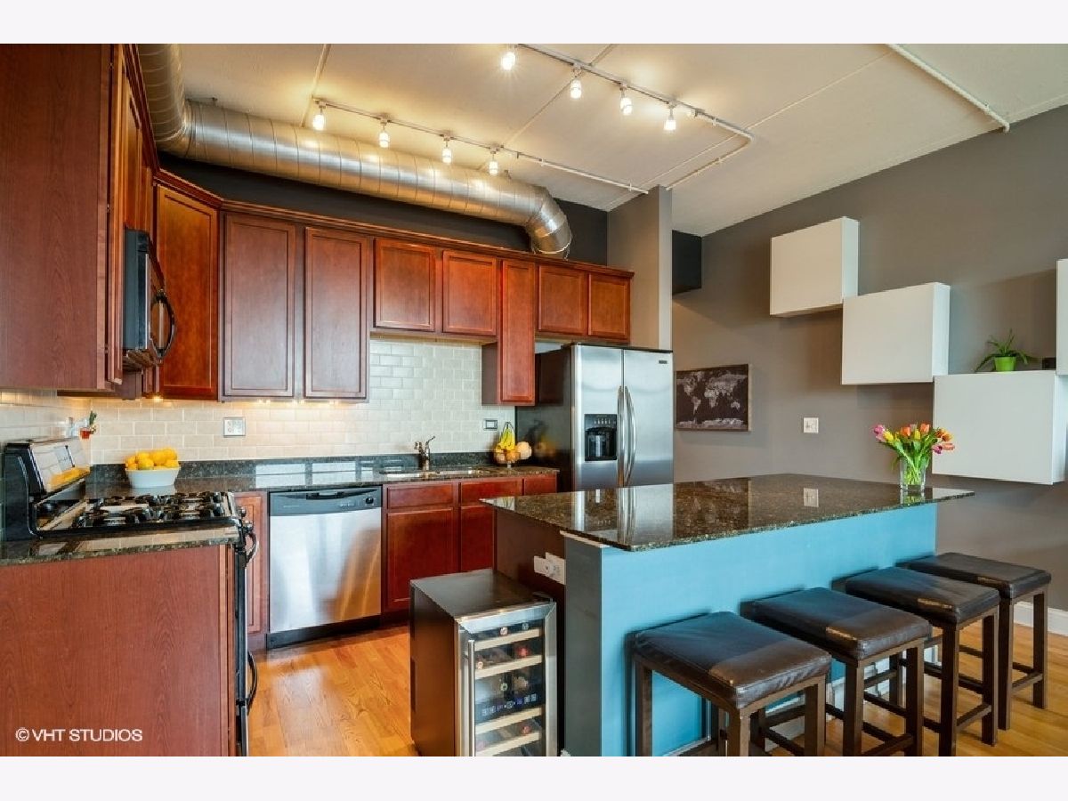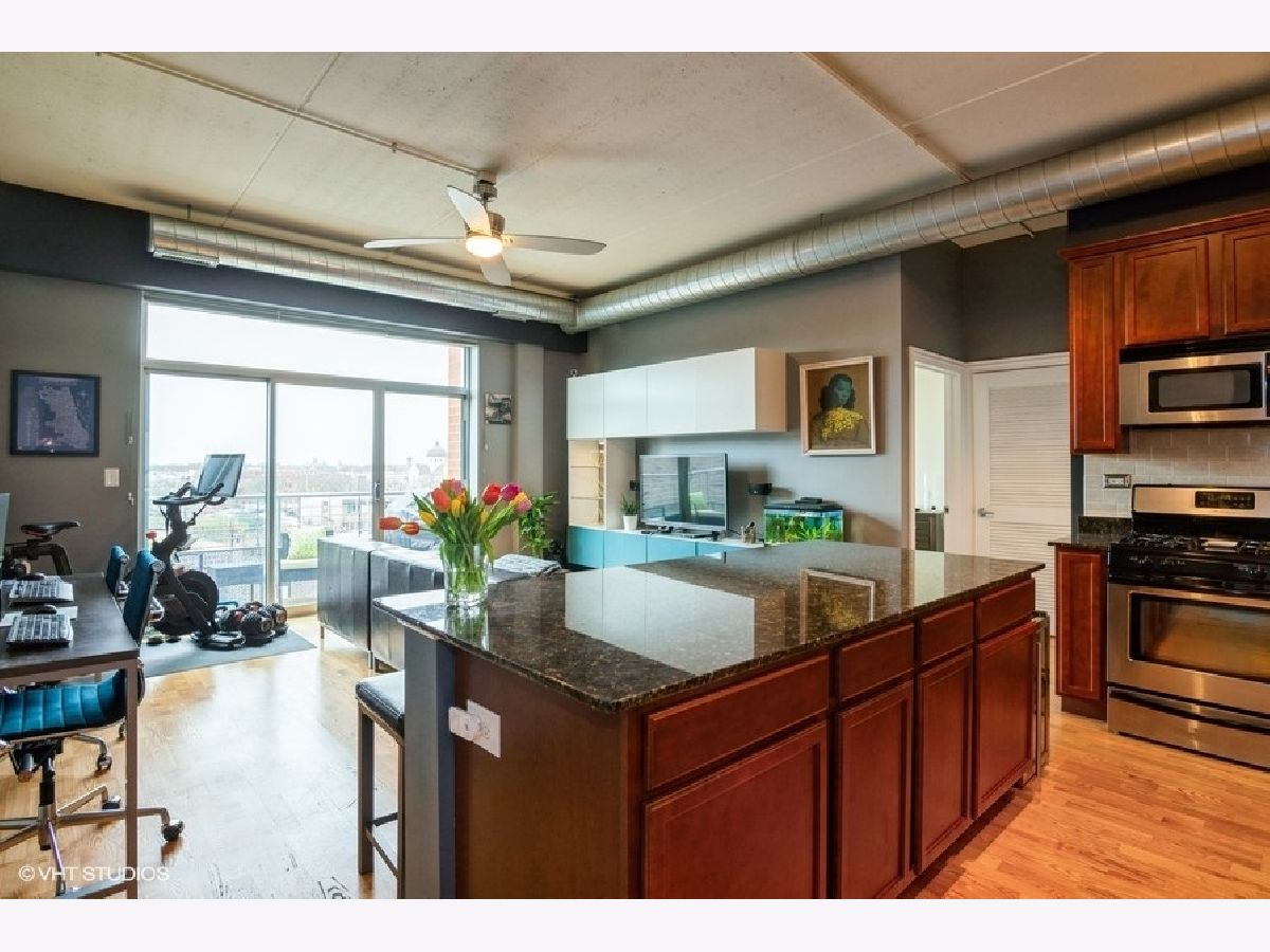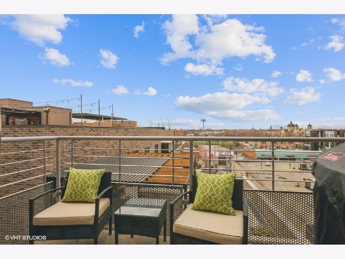 Top floor, spacious bright and airy loft style home in secure, elevator building. Floor to ceiling windows bring in tons of natural light and skyline views from the living area and bedroom. Open concept kitchen/living area with wood floors and 10 foot ceilings, is anchored by a large kitchen island with tons storage space. Kitchen features stainless steel appliances, granite counters and 42 inch cherry cabinets. Living area has built in storage features and leads directly to a private balcony where you can grill, dine al fresco and enjoy views of Chase Park. Graciously sized bedroom with two closets and custom Elfa shelving.Bath has a whirlpool tub and neutral finishes with generous storage. An in unit washer dryer and prime indoor, heated parking space complete the picture. Building is pet friendly and features its own dog run. Heated indoor parking and extra storage, Bose surround sound system and TV all INCLUDED in the list price. Incredible location only few steps from the heart of Andersonville's shops, dining, fitness studios and nightlife. Easy access to public transportation, multiple bus lines, the Red Line and Ravenswood Metra station. This one is not to be missed.