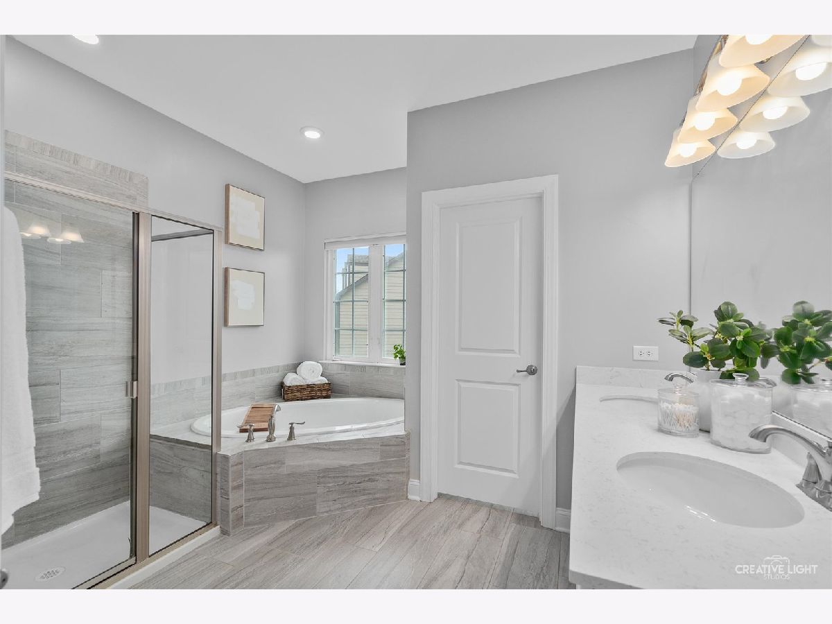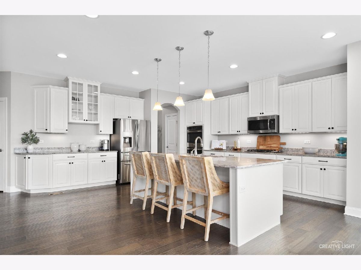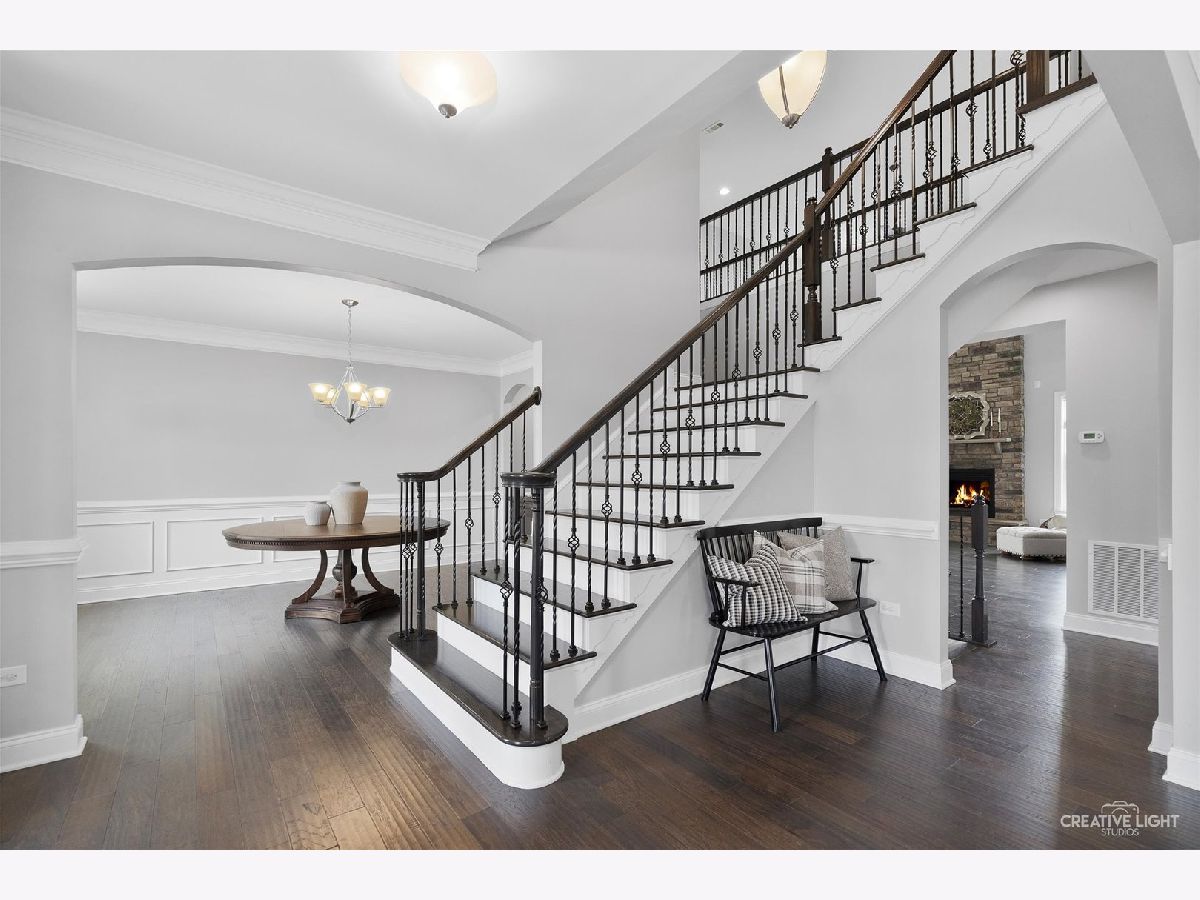 Welcome to luxury living at its finest! This stunning, North East facing Custom Executive home, built in 2016, is nestled in the prestigious Ashwood Park Clubhouse Community of Naperville. Imagine living in a contemporary masterpiece with a full, finished basement, a three-car garage, and picturesque views of a serene pond right from your backyard! Step into a grand open foyer that sets the tone for the rest of this magnificent home. To your left, you'll find an elegant formal dining room, and to your right, a sophisticated formal living room. The heart of the home is the breathtaking two-story family room, complete with a floor-to-ceiling stone fireplace that exudes warmth and charm. The main level boasts a spacious office and a gorgeous sunroom offering tranquil views of the pond-perfect for your morning coffee or evening relaxation. The gourmet kitchen is a chef's dream, featuring stainless steel appliances, a massive 12-foot island, and a walk-in pantry. Ascend to the second level, where you'll discover four ensuite bedrooms, each with its own walk-in closet and attached bathroom. The primary suite is a private oasis, featuring a spa-like bathroom with his and her sinks, quatrz countertops, and a luxurious walk-in shower. The full finished basement adds an additional 1,300 square feet of living space, ideal for entertainment, fitness, or relaxation. Step outside to a large paver patio, perfect for enjoying the private, professionally landscaped backyard. Living in Ashwood Park means you have access to a multi-million dollar, two-level clubhouse, complete with an indoor basketball court, fitness center, two swimming pools, and tennis courts. Plus, this home is located within the highly regarded District 204 Schools. Master Bedroom & Family Room Tvs Stay, Both are Samsung Smart TVs! This is more than just a home; it's a lifestyle. Don't miss out on this extraordinary opportunity!