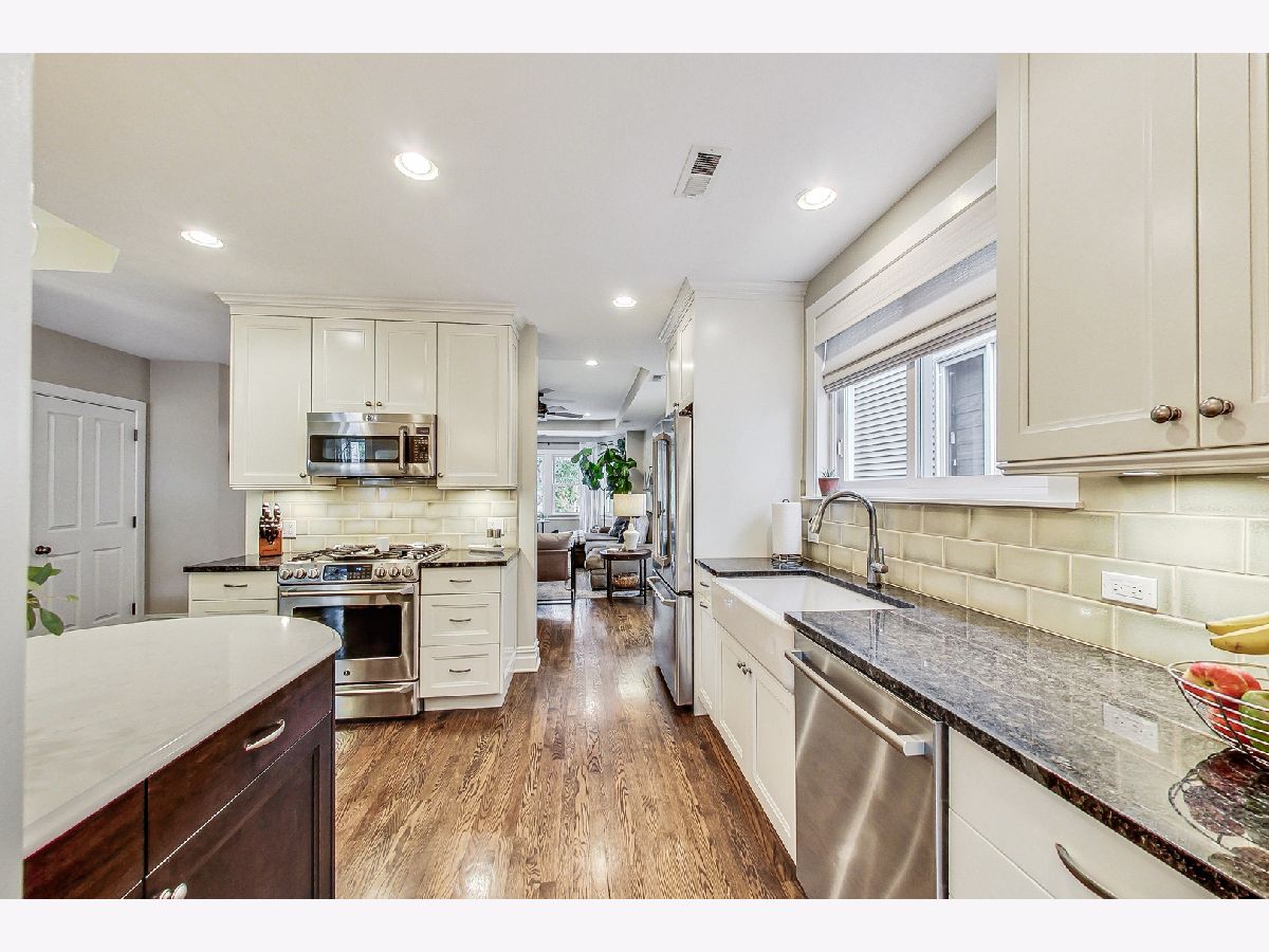 Nestled in the heart of the Lincoln Square/Ravenswood neighborhood, this enchanting 5-bedroom, 3.5-bathroom home exudes charm and sophistication. The open concept first floor effortlessly blends daily living and entertaining, adorned with sunlit hardwood floors that create a warm and inviting ambiance. The kitchen seamlessly connects to the dining area, boasting stainless-steel appliances, a breakfast bar, and custom cabinets. The main floor is thoughtfully appointed with a mudroom, laundry room, a sun-drenched office, and a new powder room adorned with modern finishes. Underwent a comprehensive gut renovation in 2015, this residence boasts upgraded plumbing, electrical systems, a dual HVAC setup, a new roof, and other carefully considered enhancements. Ascend to the upper level, where a retreat-like primary bedroom awaits, featuring an expansive walk-in closet, an office area, and an en-suite bath. Two additional bedrooms on this level are adorned with tasteful details, complemented by a bathroom showcasing a luxurious combination of a subway tile shower and a relaxing tub. The lower level unfolds as a hidden gem-a fully equipped Airbnb in-law suite with a private entrance, a full kitchen, two bedrooms, a bathroom, and a complete laundry setup. The spacious and comfortable living area in the lower level creates a thoughtfully crafted home that seamlessly blends modern luxury with community charm. On the exterior, enjoy the convenience of a recently constructed two-car garage with elegant French doors leading to a patio, offering abundant storage options, including a loft for additional storage space. Step onto the charming paver patio, which leads to a private landscaped backyard, while a deck connects to the mudroom for seamless indoor and outdoor living. Contributing to energy efficiency, solar panels grace the roof. Situated on a tranquil, tree-lined street, this residence offers a peaceful oasis within close proximity to parks, schools, Mariano's, Ravenswood Farmer's Market, restaurants, and shops. With easy access to CTA Brown Line and Ravenswood Metra Stop, commuting becomes a breeze. This home stands as the perfect combination of aesthetics, functionality, and comfort, offering a truly exceptional living experience. See attached for age of mechanicals and Airbnb information.