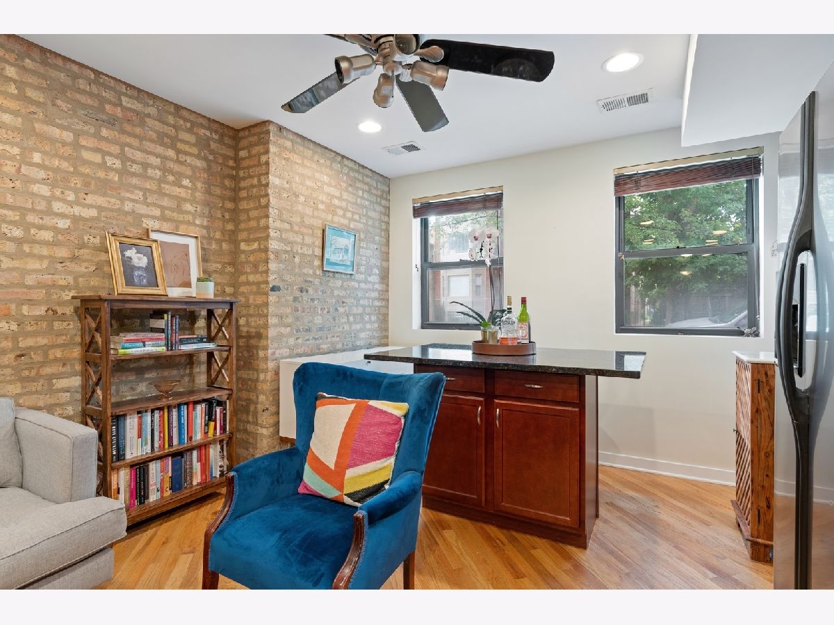 Charming 1 bed with beautiful outdoor space in the heart of Ravenswood! Vintage character & contemporary finishes: classic exposed brick, hardwood floors, central air, ample storage & in-unit laundry. With its gracious floor plan, the granite & stainless kitchen opens to a built-in island that doubles as a dining table/breakfast bar. Spacious bedroom with great closets. Views of the quiet tree-lined Hoyne from the front living spaces & peaceful gated gardens from the bedroom. Ideal for summer grilling & entertaining, the private patio opens to securely fenced gardens & grass lawns perfect for dogs. Enjoy the best of the neighborhood year round! Steps from lively Ravenswood, Andersonville & Lincoln Square shops, restaurants, nightlife, Winnemac Park, as well as the new Mariano's & LA Fitness. Effortless commuting - walk to EL (Brown Line), Metra & easy street parking. Investor friendly: consistently rented for $1475/mo. Welcome HOME!